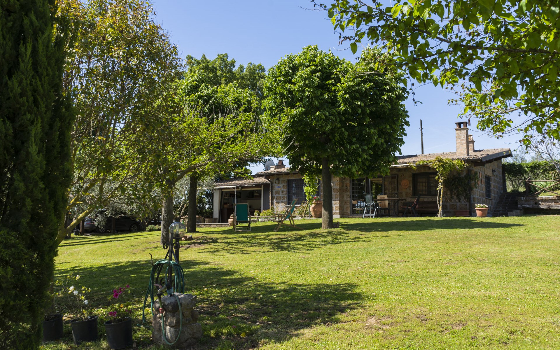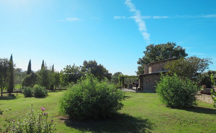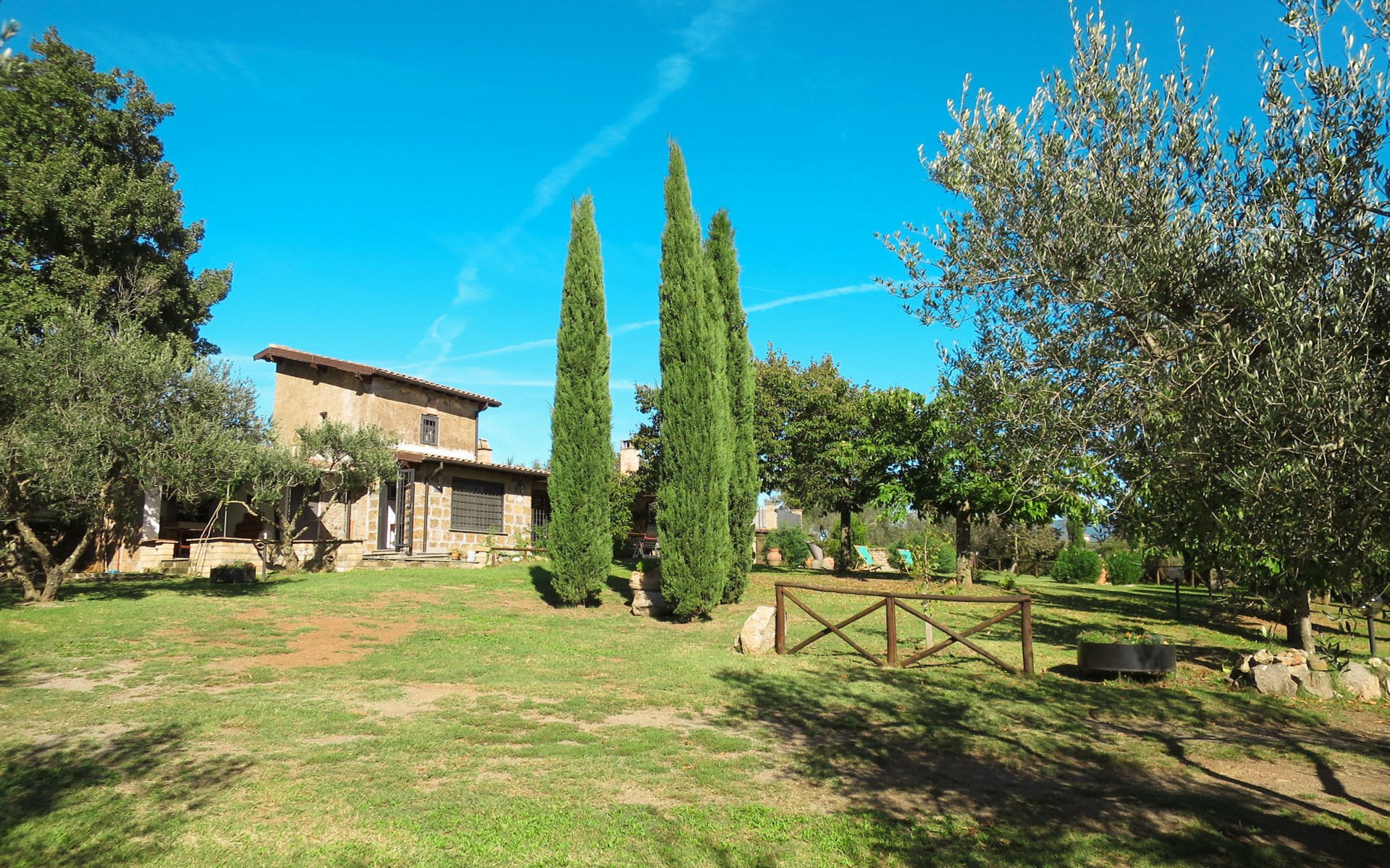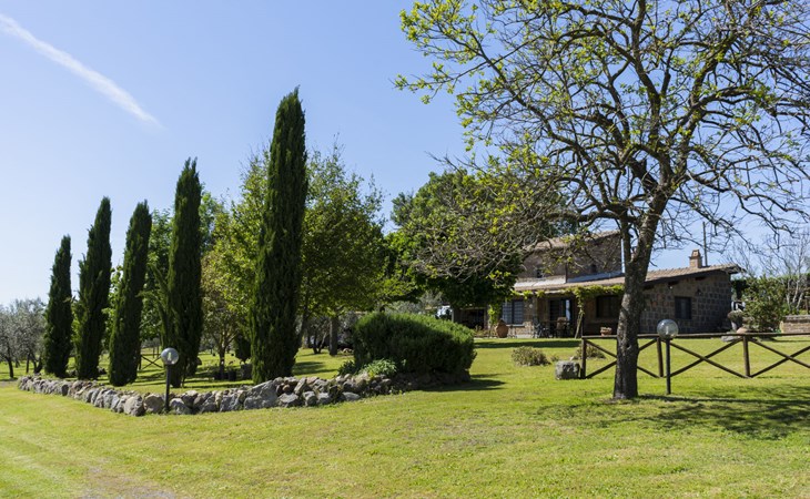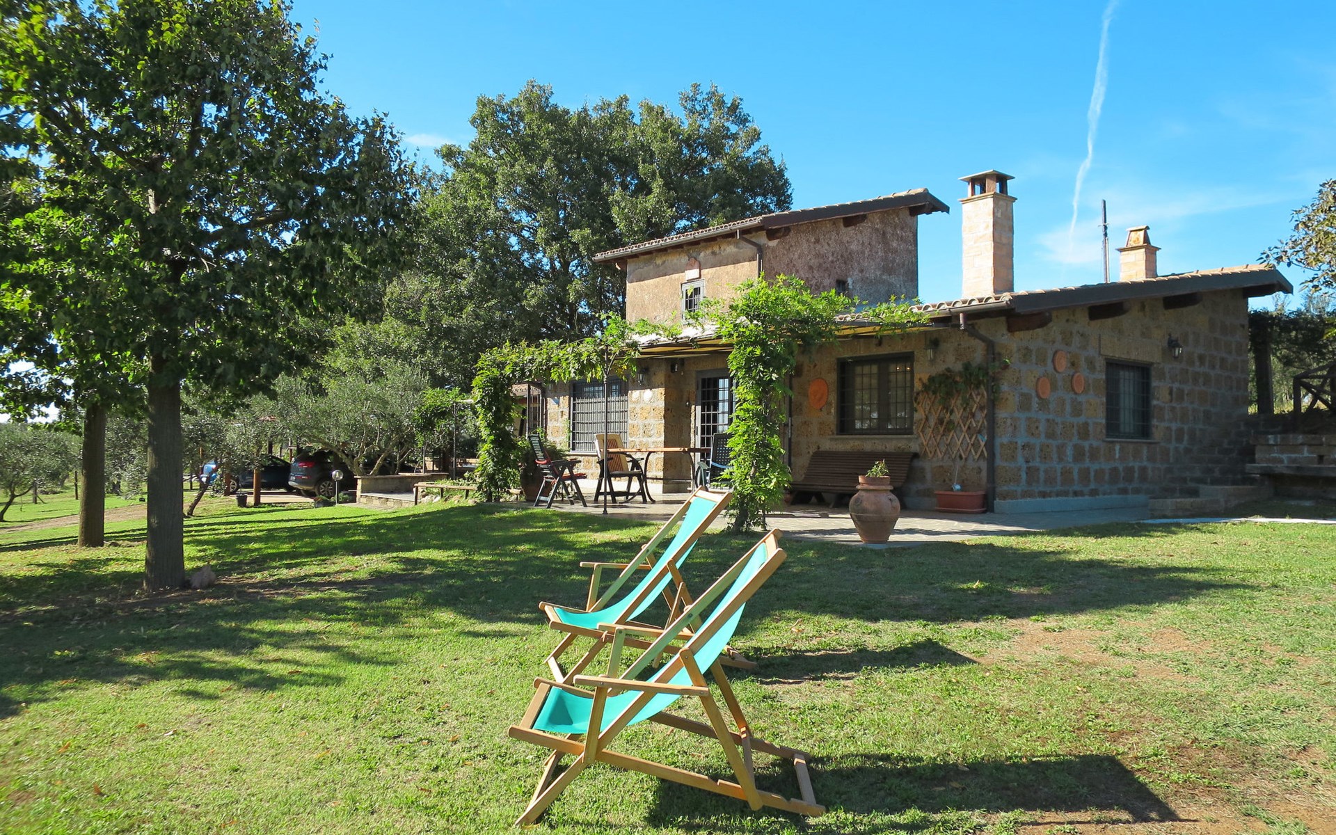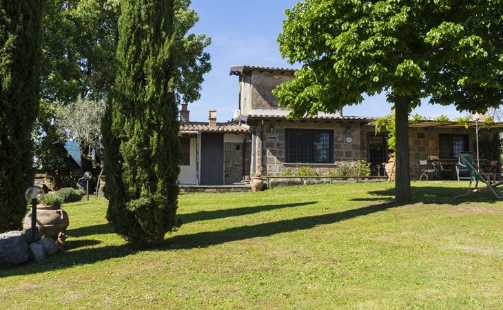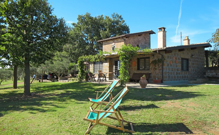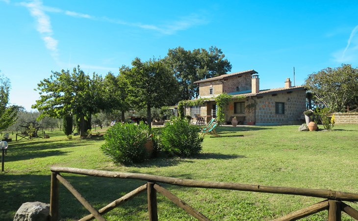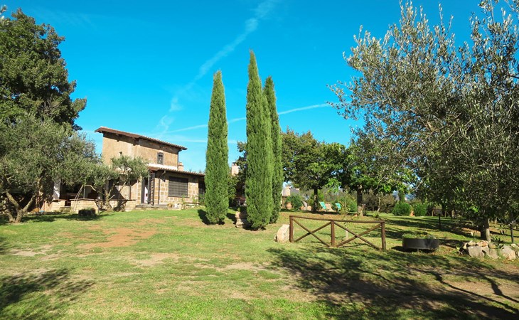 Single-family house "Il Casaletto", renovated in 2010, surrounded by trees, meadows and fields. 5 km from the centre of Vetralla, 19 km from the centre of Viterbo, 70 km from the centre of Roma, 37 km from the sea, 15 km from the lake. Private: property 5'000 m2 (fenced), well-kept garden with lawn and trees, swimming pool (above ground) (2 x 2 m, depth 140 cm, seasonal availability: 15.May. - 15.Sep.). Outdoor shower, barbecue house, pool maintenance by the owner/gardener. In the house: massage (extra). Roofed, parking (for 2 cars) on the premises. Bus stop 2 km, thermal baths "Le Masse di San Sisto" 9 km, bathing lake "Vico" 15 km. Nearby attractions: Sutri 23 km, Tarquinia 29 km, Civita Di Bagnoregio 43 km. Well-known lakes can easily be reached: Bolsena 35 km. Please note: car recommended. Groups of teenagers on request only. The owner does not accept any youth groups.