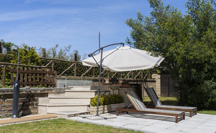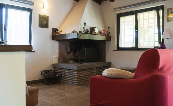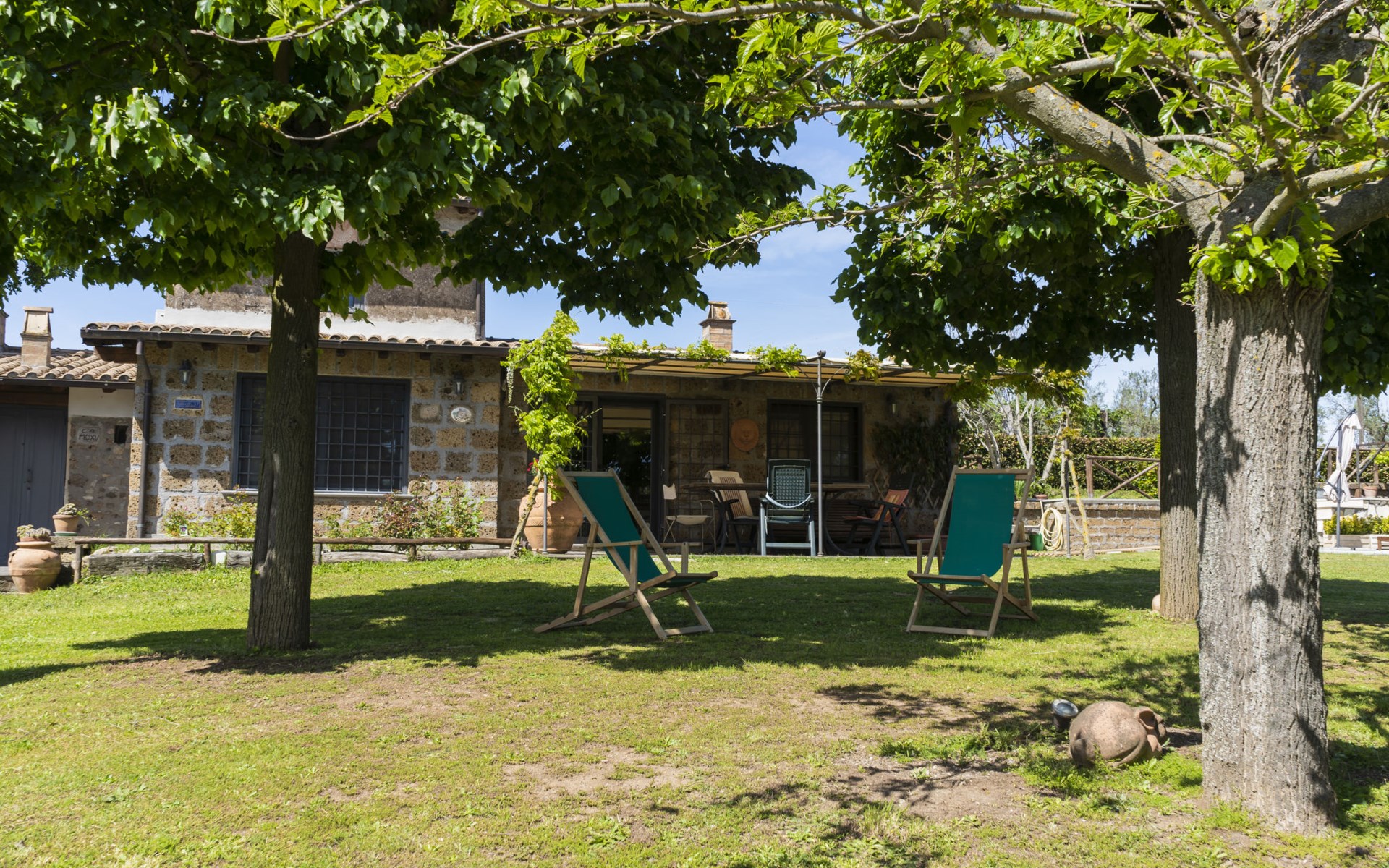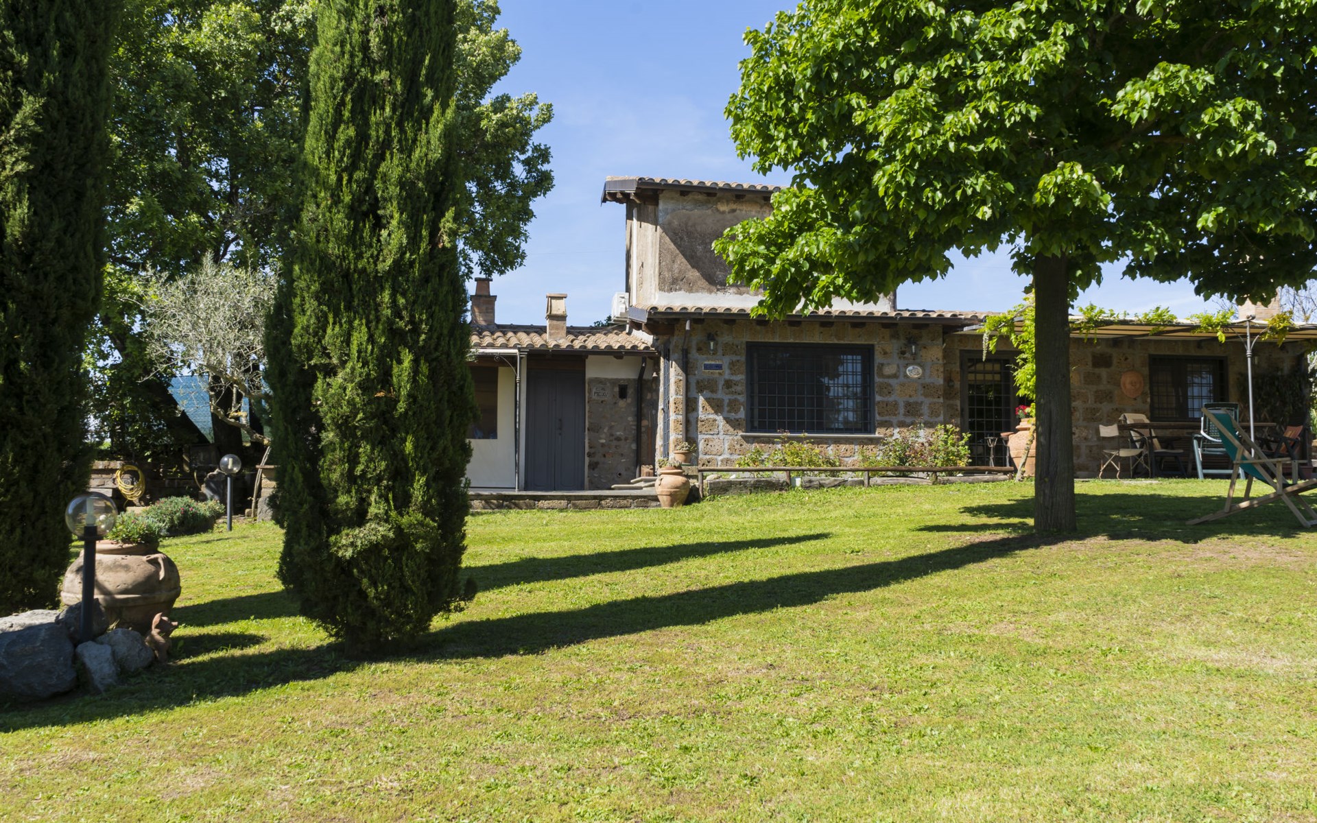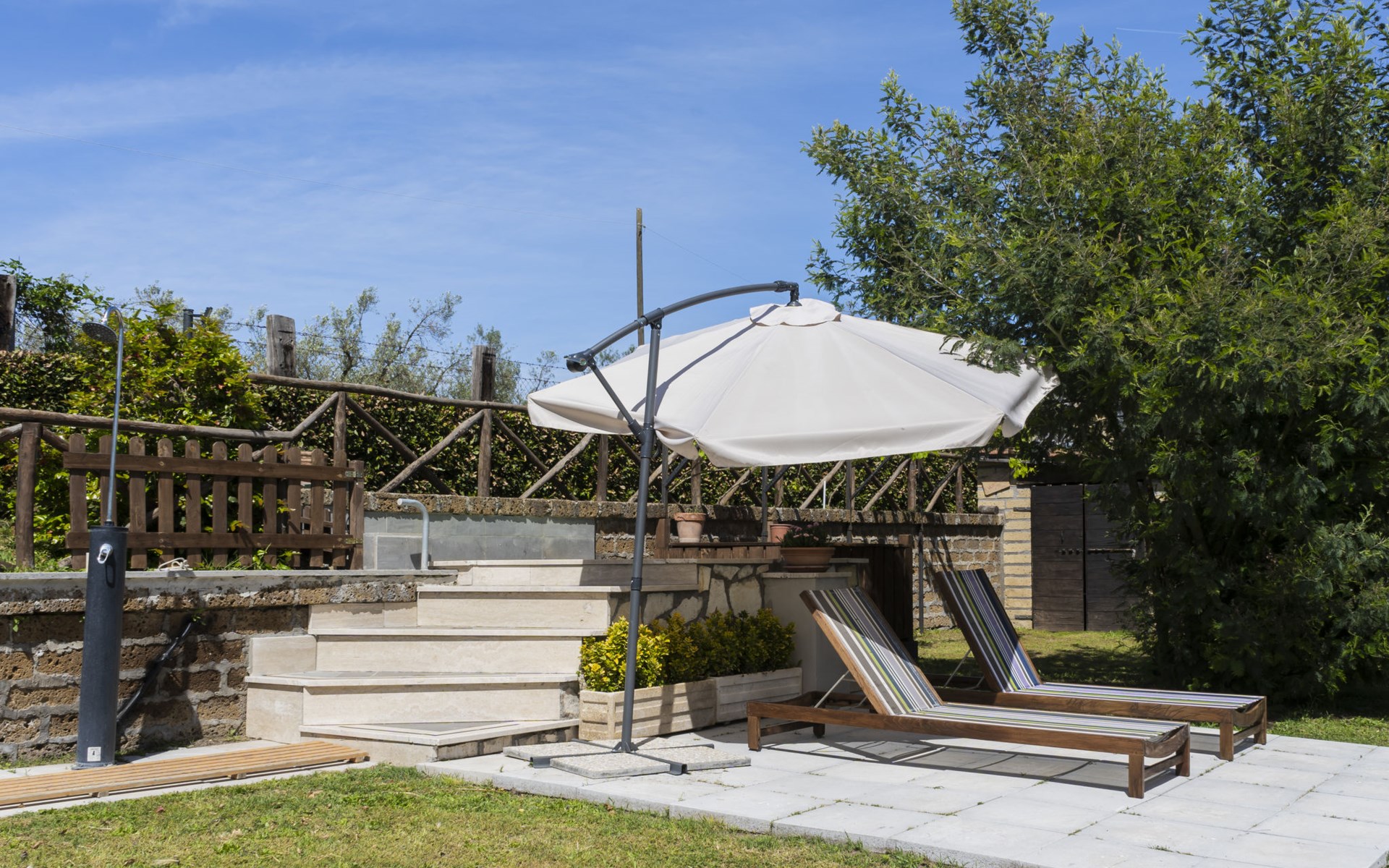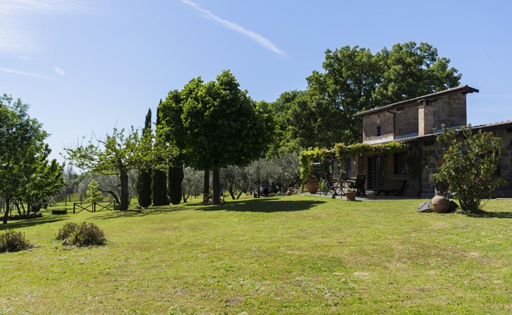 Single-family house "Il Casaletto", renovated in 2010, surrounded by trees, meadows and fields. 5 km from the centre of Vetralla, 19 km from the centre of Viterbo, 70 km from the centre of Roma, 37 km from the sea, 15 km from the lake. Private: property 5'000 m2 (fenced), well-kept garden with lawn and trees, swimming pool (above ground) (2 x 2 m, depth 140 cm, seasonal availability: 15.May. - 15.Sep.). Outdoor shower, barbecue house, pool maintenance by the owner/gardener. In the house: massage (extra). Roofed, parking (for 2 cars) on the premises. Bus stop 2 km, thermal baths "Le Masse di San Sisto" 9 km, bathing lake "Vico" 15 km. Nearby attractions: Sutri 23 km, Tarquinia 29 km, Civita Di Bagnoregio 43 km. Well-known lakes can easily be reached: Bolsena 35 km. Please note: car recommended. Groups of teenagers on request only. The owner does not accept any youth groups.