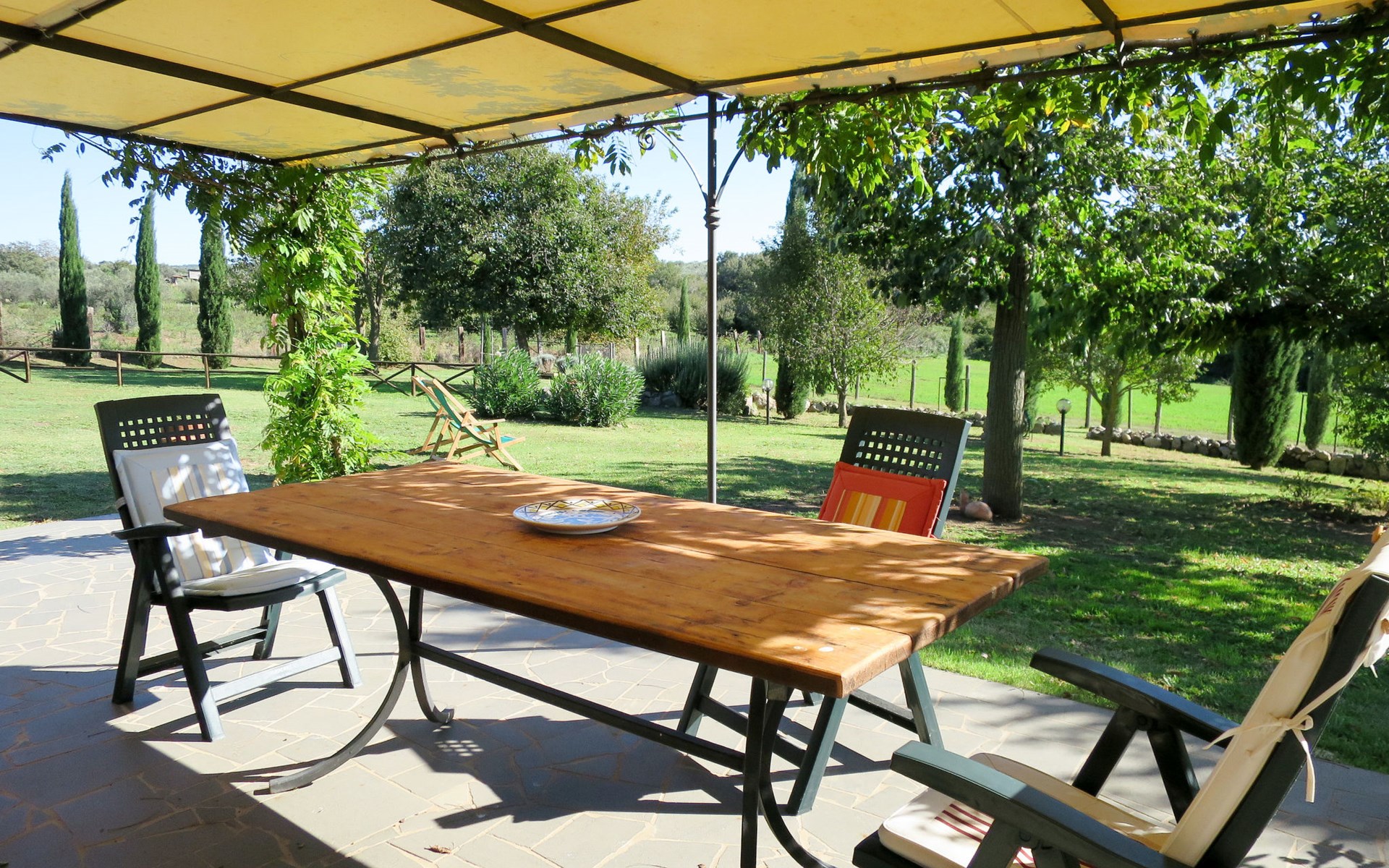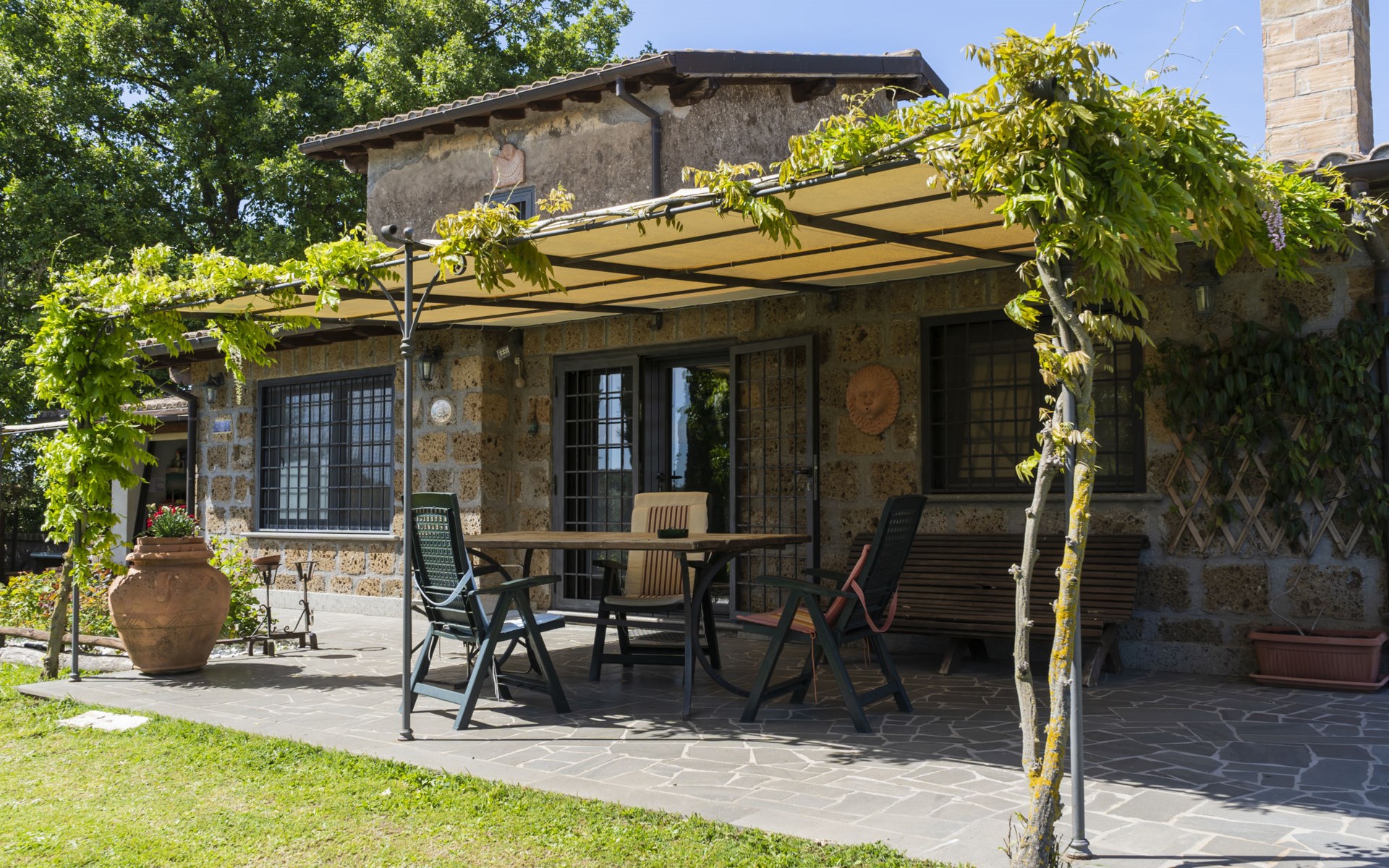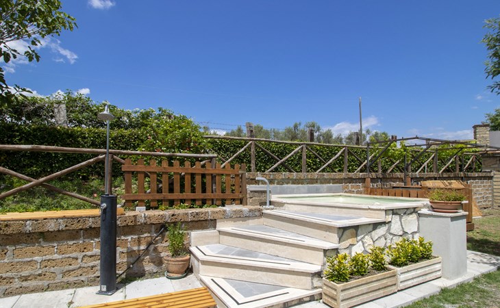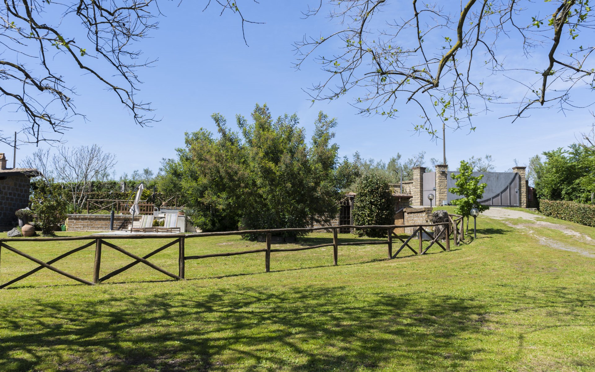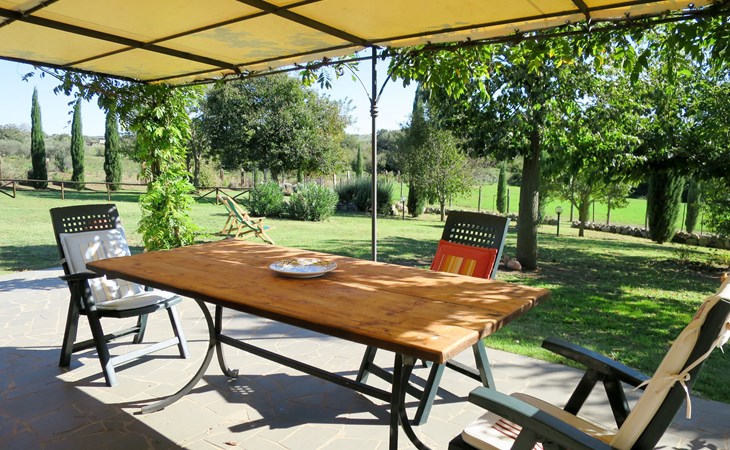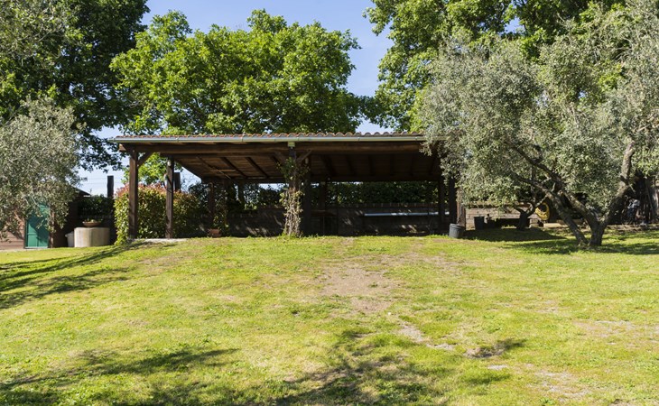 Single-family house "Il Casaletto", renovated in 2010, surrounded by trees, meadows and fields. 5 km from the centre of Vetralla, 19 km from the centre of Viterbo, 70 km from the centre of Roma, 37 km from the sea, 15 km from the lake. Private: property 5'000 m2 (fenced), well-kept garden with lawn and trees, swimming pool (above ground) (2 x 2 m, depth 140 cm, seasonal availability: 15.May. - 15.Sep.). Outdoor shower, barbecue house, pool maintenance by the owner/gardener. In the house: massage (extra). Roofed, parking (for 2 cars) on the premises. Bus stop 2 km, thermal baths "Le Masse di San Sisto" 9 km, bathing lake "Vico" 15 km. Nearby attractions: Sutri 23 km, Tarquinia 29 km, Civita Di Bagnoregio 43 km. Well-known lakes can easily be reached: Bolsena 35 km. Please note: car recommended. Groups of teenagers on request only. The owner does not accept any youth groups.