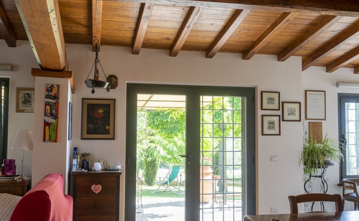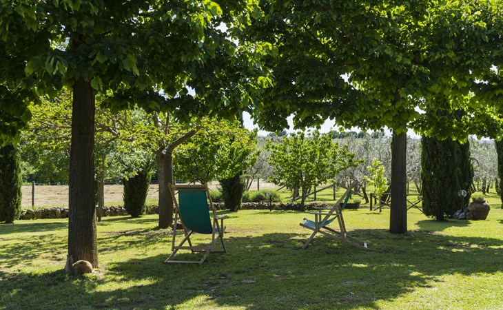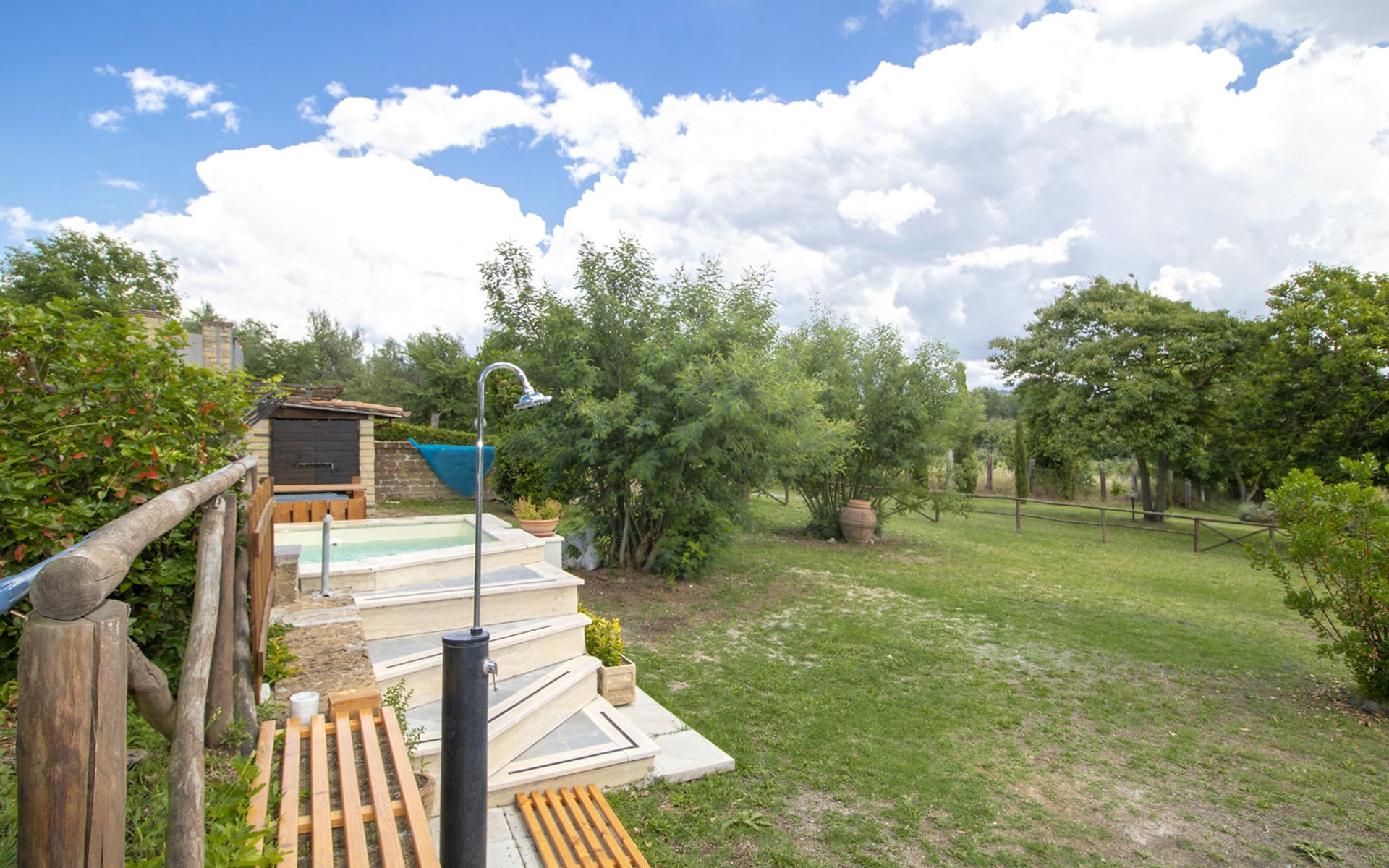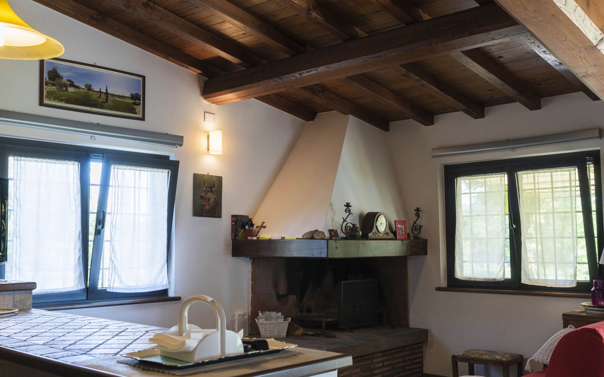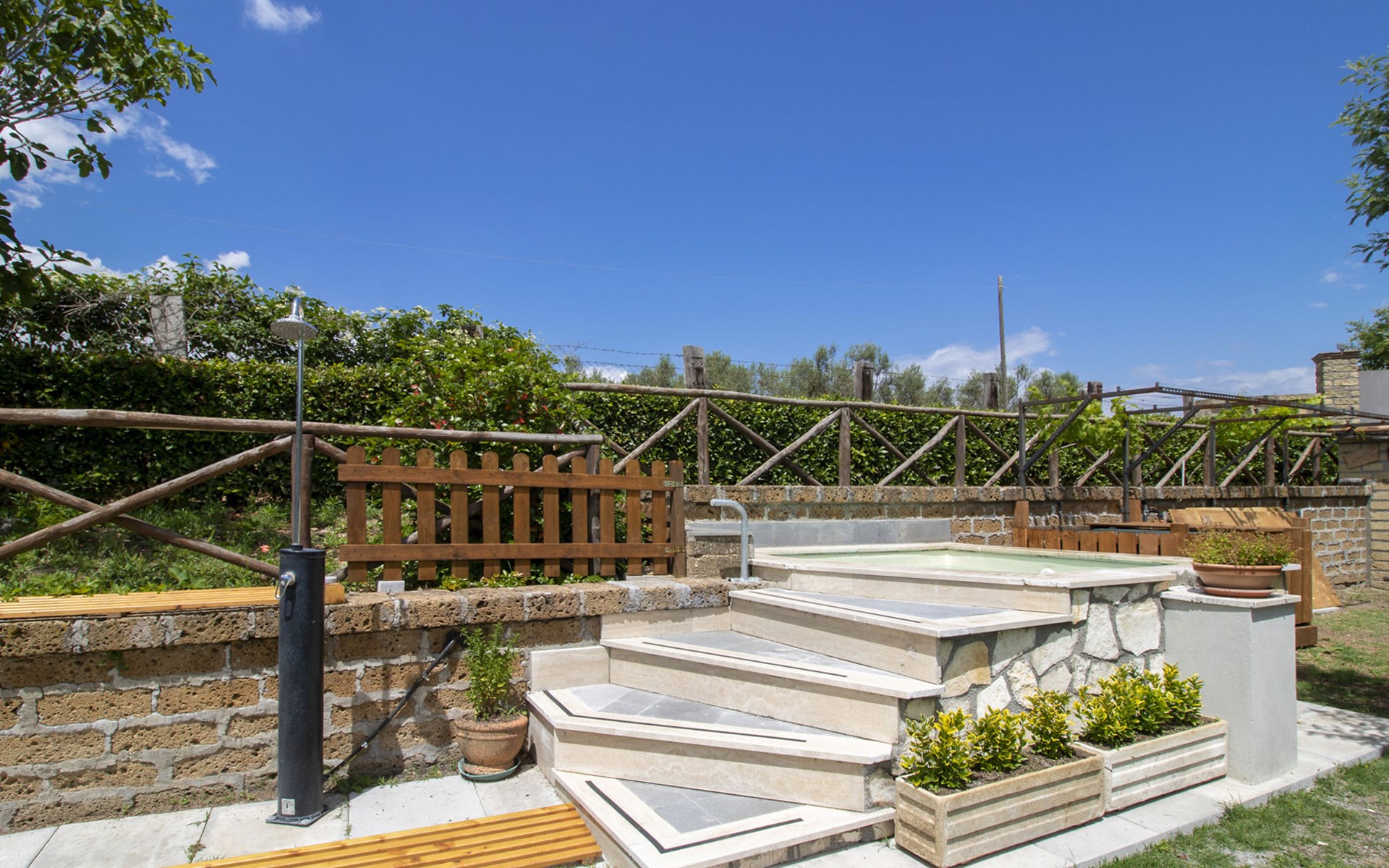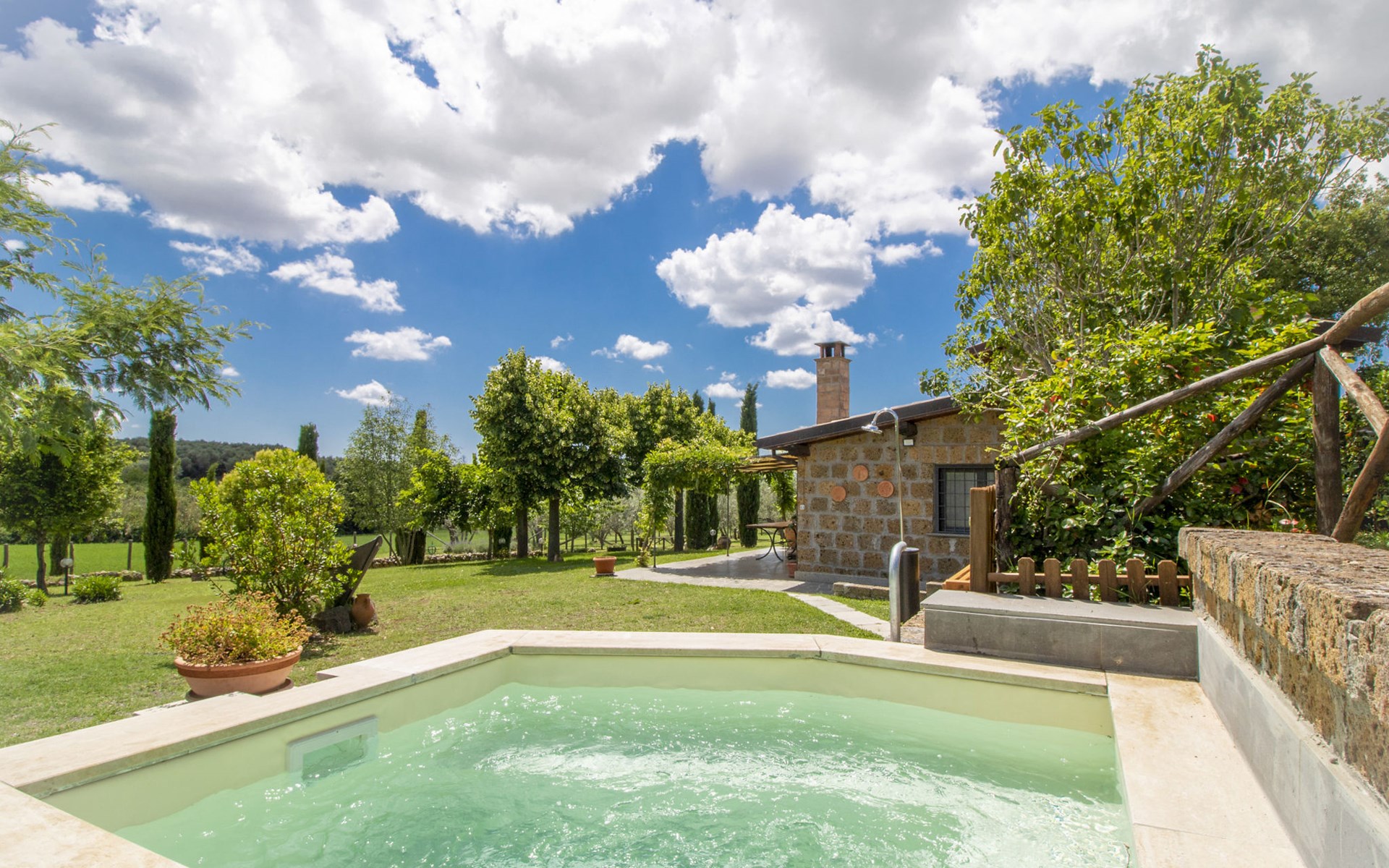 Single-family house "Il Casaletto", renovated in 2010, surrounded by trees, meadows and fields. 5 km from the centre of Vetralla, 19 km from the centre of Viterbo, 70 km from the centre of Roma, 37 km from the sea, 15 km from the lake. Private: property 5'000 m2 (fenced), well-kept garden with lawn and trees, swimming pool (above ground) (2 x 2 m, depth 140 cm, seasonal availability: 15.May. - 15.Sep.). Outdoor shower, barbecue house, pool maintenance by the owner/gardener. In the house: massage (extra). Roofed, parking (for 2 cars) on the premises. Bus stop 2 km, thermal baths "Le Masse di San Sisto" 9 km, bathing lake "Vico" 15 km. Nearby attractions: Sutri 23 km, Tarquinia 29 km, Civita Di Bagnoregio 43 km. Well-known lakes can easily be reached: Bolsena 35 km. Please note: car recommended. Groups of teenagers on request only. The owner does not accept any youth groups.