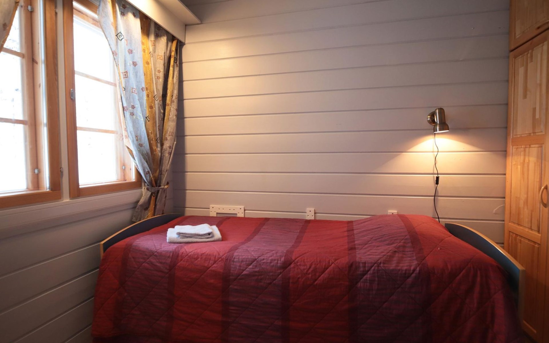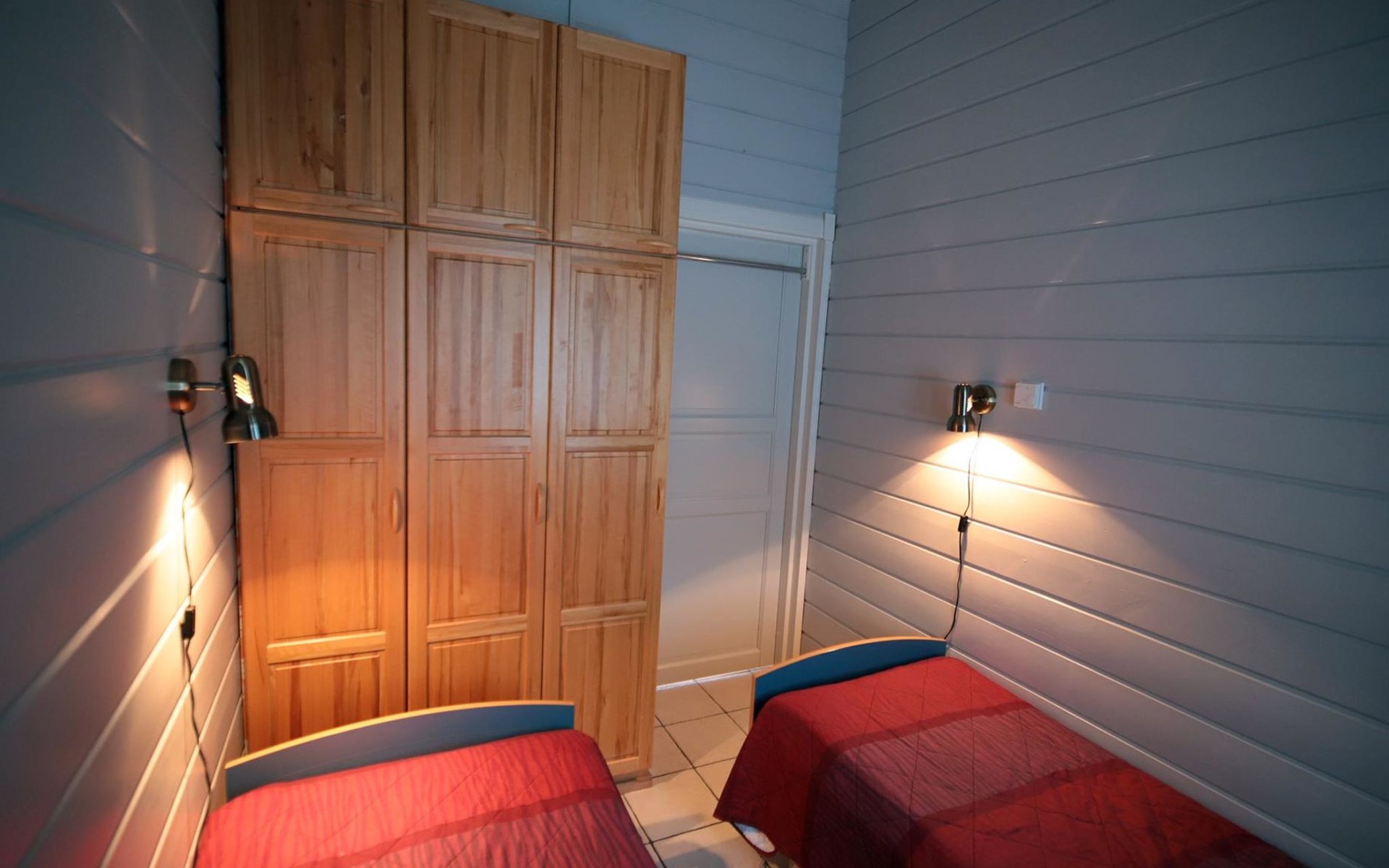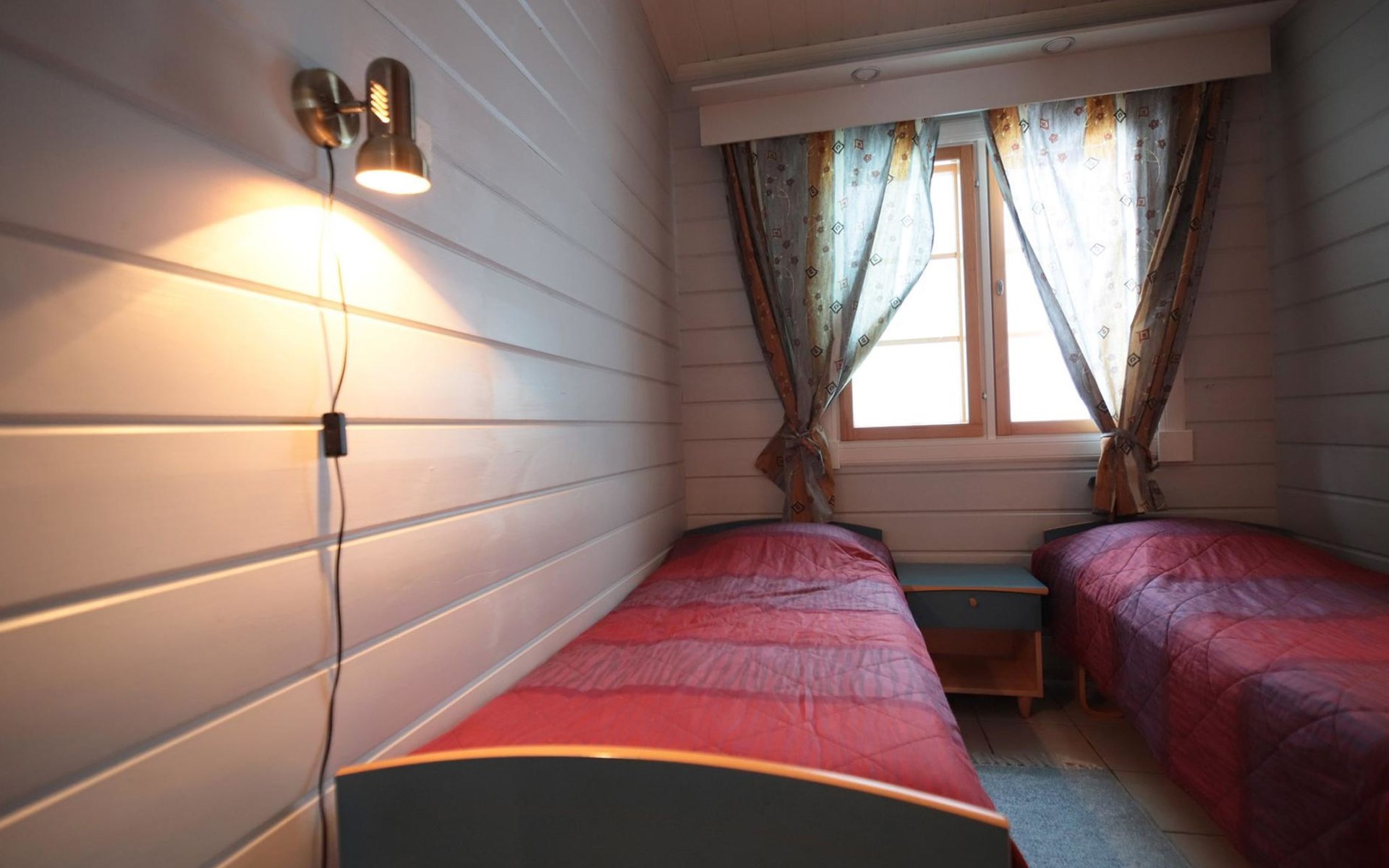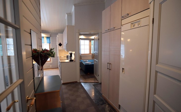 Sleeping accommodation consists of three bedrooms. Two of the bedrooms have two 80 cm wide beds per room. One bedroom has an 80 cm wide bed, under which you can pull out another bed.