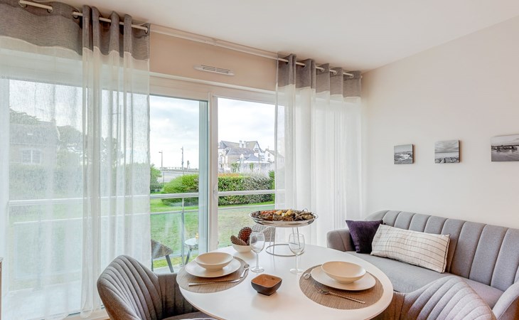 Residence "La Cormorane", 2 storeys. In the resort, 50 m from the sea, from the beach. In the complex: storage room for bicycles. Parking. Shop 50 m, grocery, supermarket 800 m, restaurant 50 m, bar, sandy beach "La Grande Plage". Sports harbour 20 m, sailing school 50 m. Nearby attractions: Thalassothérapie 50 m, La Trinité sur Mer 4 km, Presqu'Ile de Quiberon 18 km, Vannes 30 km, Lorient 50 km.