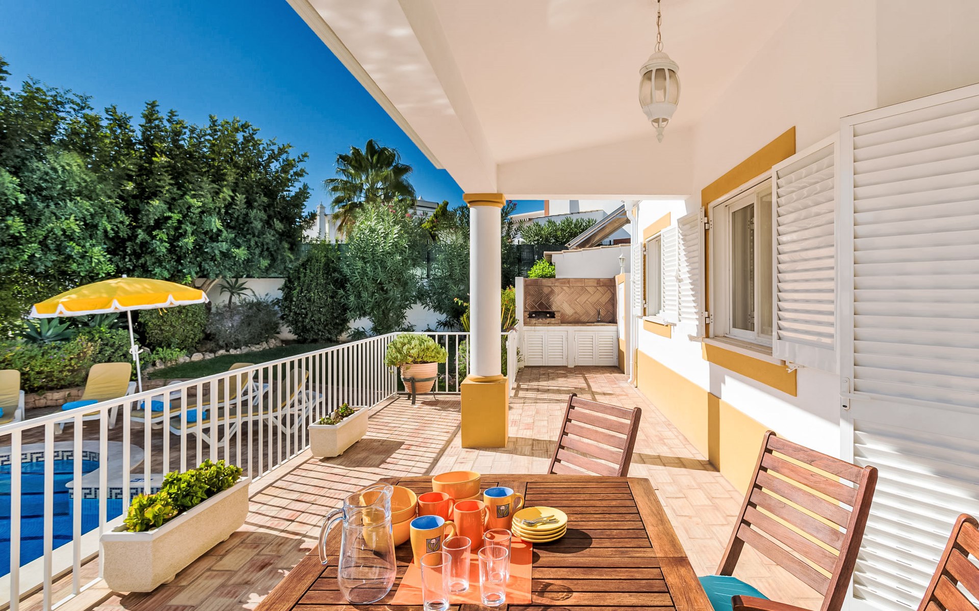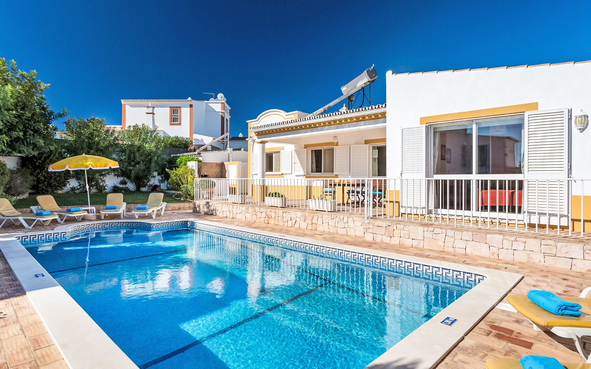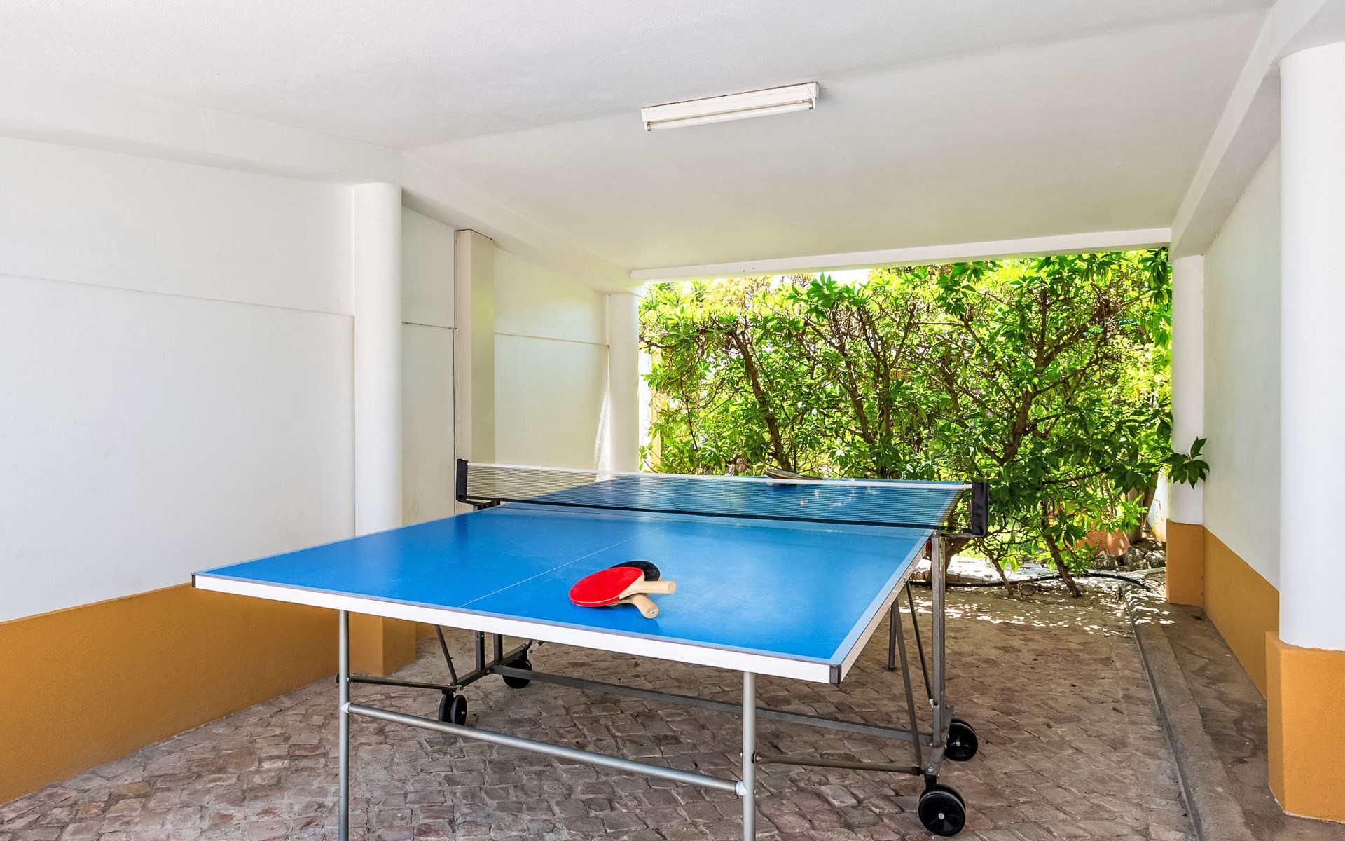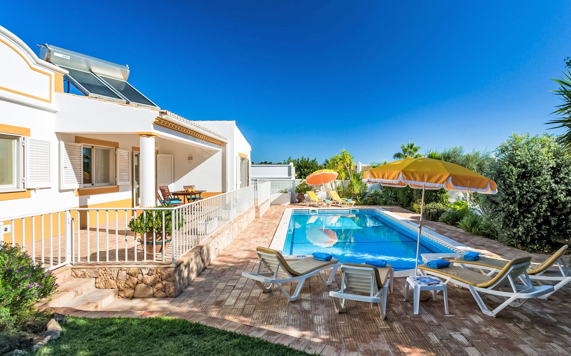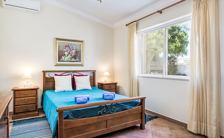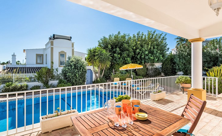 Cosy, comfortable villa "Natura", detached. Outside the resort Guia, residential area (villas), 7.1 km from the sea. Private: natural state property 646 m2 (fenced), wildlife garden, swimming pool angular, fenced (4 x 9 m, depth 115 - 190 cm, seasonal availability: 01.Jan. - 31.Dec.). Outdoor shower, table tennis, barbecue, parking at the house. Supermarket 2.7 km, shopping centre 2.7 km, restaurant 1.3 km, bakery 2.7 km, pub garden 6.8 km, bus stop 750 m, sandy beach "Praia da Galé" 7.1 km. Marina 7.7 km, golf course (18 hole) 6.3 km, surf school 6.8 km. Nearby attractions: Zoomarine 7.6 km, Fiesa 6 km, Aqualand 8.6 km, Krazy World 9.5 km, Slide & Splash 27.8 km, Albufeira 8.2 km. Hiking paths: Monchique 46.1 km. Please note: car recommended. Suitable for families. Object suitable for 6 adults groups of teenagers on request only. Loading and unloading of baggage is possible at the holiday house.