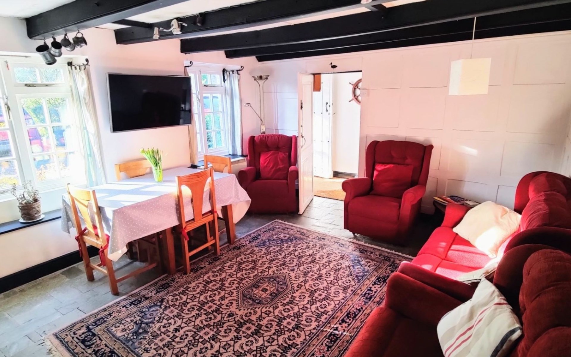 Pentewan: Cosy, historical cottage "The Old Inn". In the centre of Pentewan, 450 m from the edge of the forest, 500 m from the sea, 500 m from the beach, 450 m from the river. Private: terraced garden. In the house: washing machine. Parking. Shop 100 m, grocery 650 m, supermarket 6 km, shopping centre 6 km, restaurant, bar, café, bicycle rental, pub garden 300 m, bus stop "Pentewan" 620 m, railway station "St Austell" 6 km, sandy beach "Pentewan" 500 m. Golf course (18 hole) 6 km, tennis 1 km, sports centre 1 km, walking paths from the house 350 m, fishing possibilities 1 km. Nearby attractions: Lost Gardens of Heligan 4 km, Mevagissey Harbour 4 km, Eden Project 13 km, Charlestown Historic Harbour 7 km. Hiking paths: South West Coast Path 100 m, Kingswood Pentewan 300 m. Please note: suitable for families.