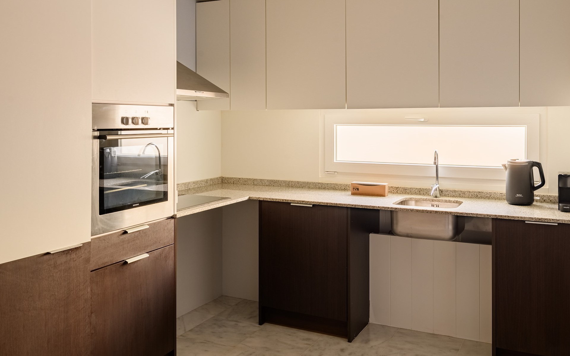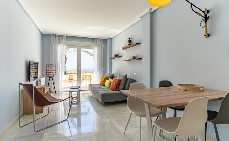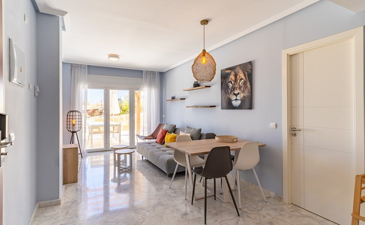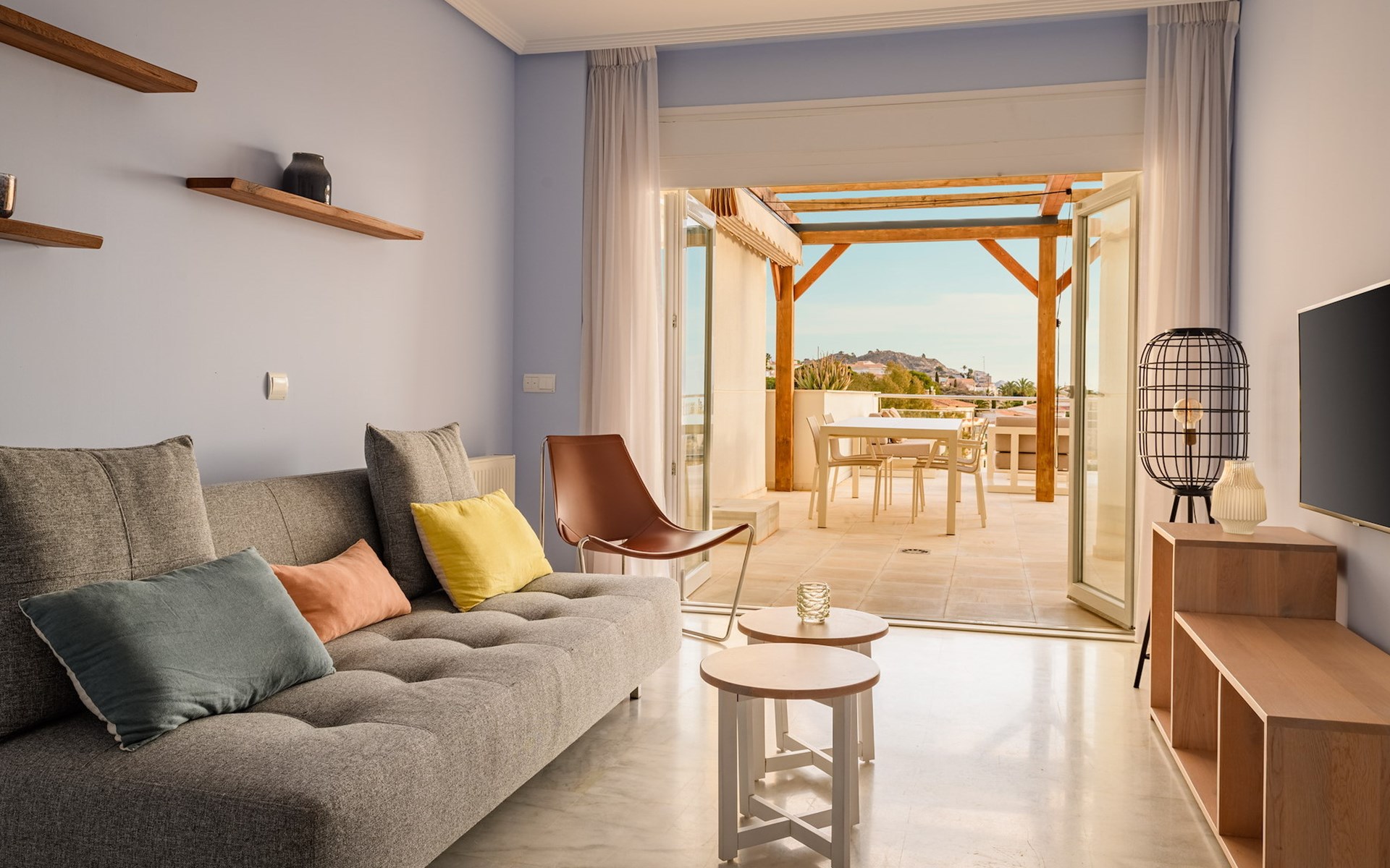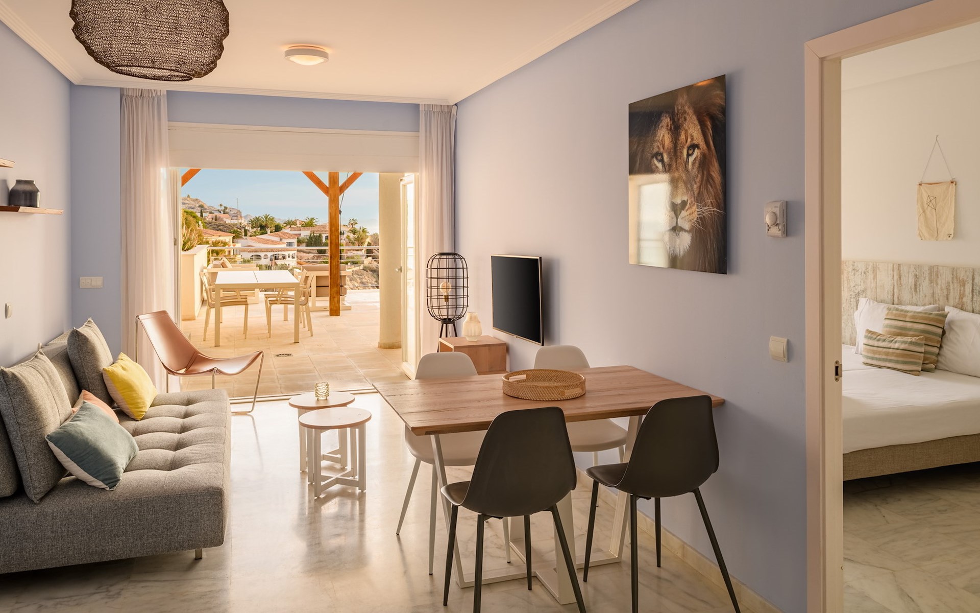 Apartment Almadraba Superior is a highly luxurious apartment at Dormio Resort Costa Blanca and can accommodate up to 4 people. The apartment provides guests with a usable area of approximately 50m2. The apartment features a modernly furnished lounge with a seating area and a sofa bed (140 x 200 cm) and a dining area. The modern open-plan kitchen has luxury appliances, including a washing machine and a dining area.