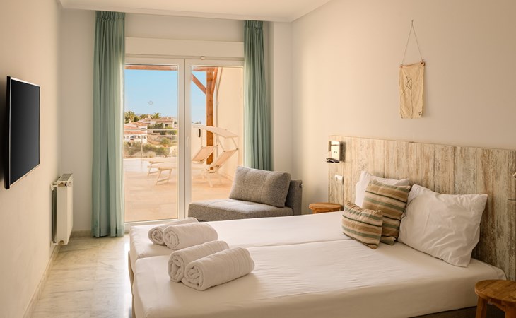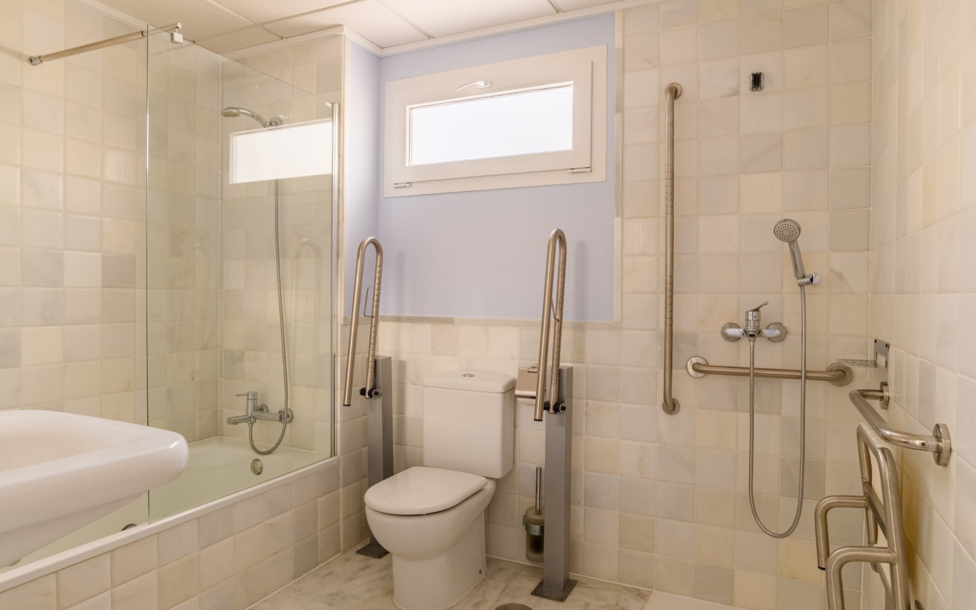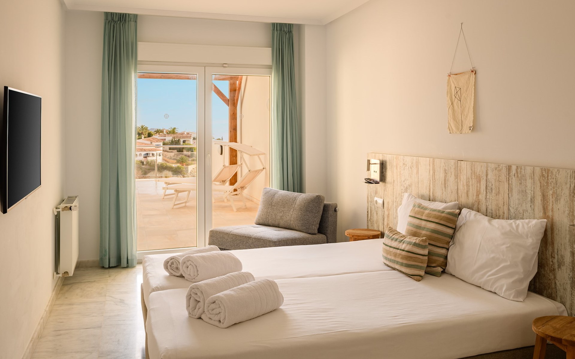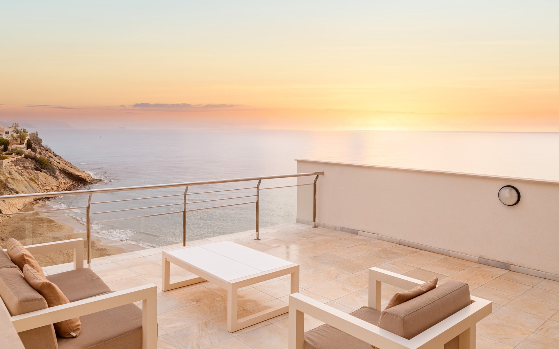 The bedroom has two single beds and has an ensuite bathroom with shower, toilet, bidet and washbasin. The luxury apartment has a terrace or balcony, equipped with outdoor furniture. From here, you can enjoy views of the Mediterranean Sea.