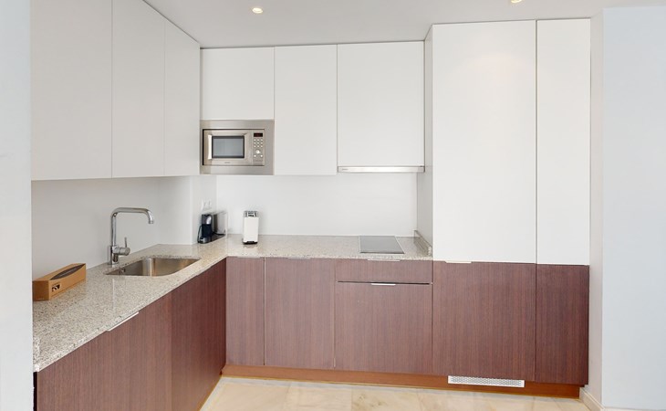 Apartment Capitán Panorama is a spaciously designed and luxurious panorama apartment at Dormio Resort Costa Blanca. This apartment with 2 bedrooms and 2 bathroom can accommodate up to 6 people, providing guests with a usable area of approximately 70m2. The lounge also has a dining area and a seating area. The seating area has a sofa bed (140 x 200 cm) and a television. The apartment also features a luxury open-plan kitchen with high-spec built-in appliances, such as a dishwasher and washing machine.