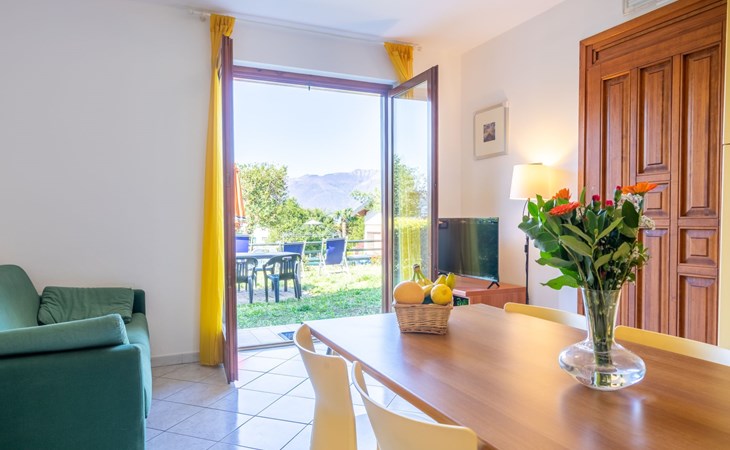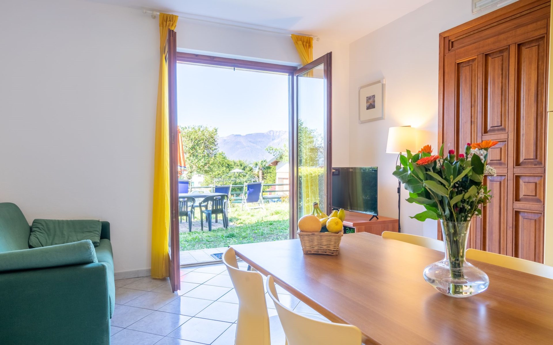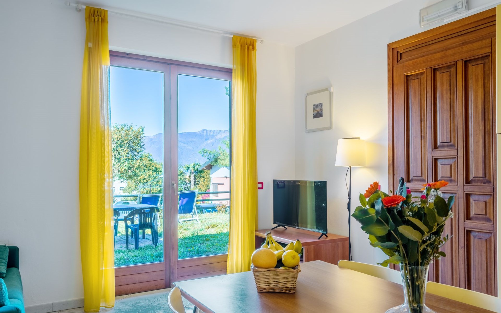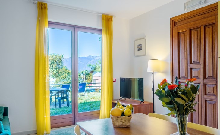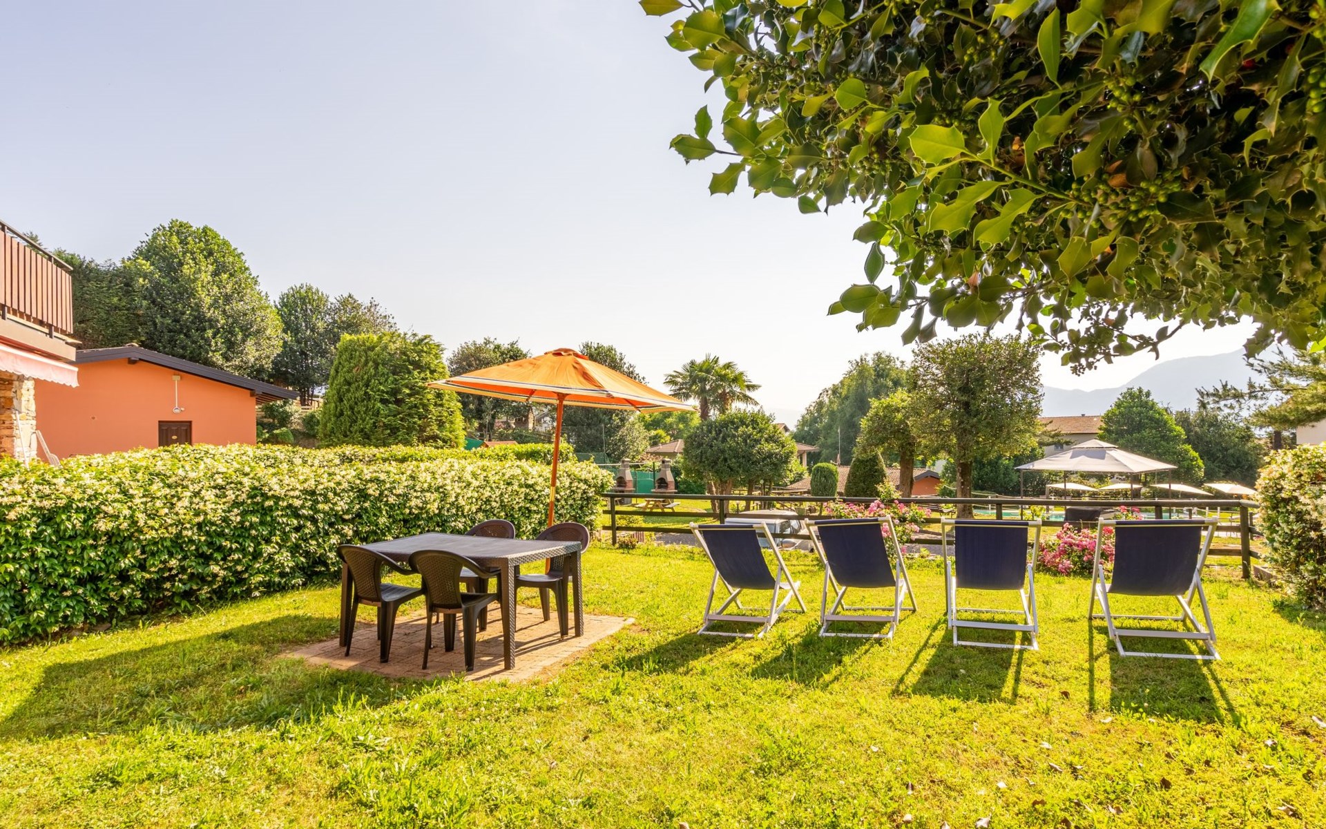 Holiday development "Residenza Agrifoglio". 17 apartments in the property. 2 km from the centre of Luino, in a sunny, elevated position, 3 km from the lake, in a cul-de-sac. For shared use: property (fenced) with lawn and trees, swimming pool (12 x 5 m, depth 140 cm, seasonal availability: 01.May. - 30.Sep. pool opening hours: 09:00-20:00). Outdoor shower, table tennis, volleyball court, barbecue, children's playground. In the house: washing machine (for shared use, extra), heating available only from 05.Oct. - 25.Apr.. 50 m long steep motor access to the house. Parking on the premises. E-charging station. Shop 2 km, supermarket 2 km, restaurant 1.5 km, bar 1.5 km, bus stop 400 m, railway station "Luino" 3 km, shingle beach "Le Serenelle" 3 km, indoor swimming pool 400 m. Tennis 400 m. Nearby attractions: Maccagno 12 km, Laveno 20 km. Please note: car recommended, no lift. Residence with electric gates. Animals in the neighbourhood. Residence consisting of apartments distributed in small buildings with a small garden and / or private balcony. One parking space for each apartment (2 for 6-person apartments). Unattended swimming pool. 2 charging stations available (the activation card must be booked in advance).