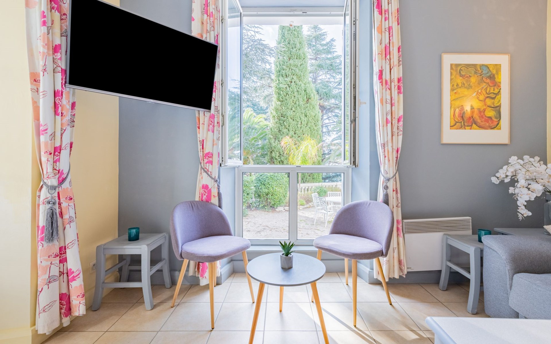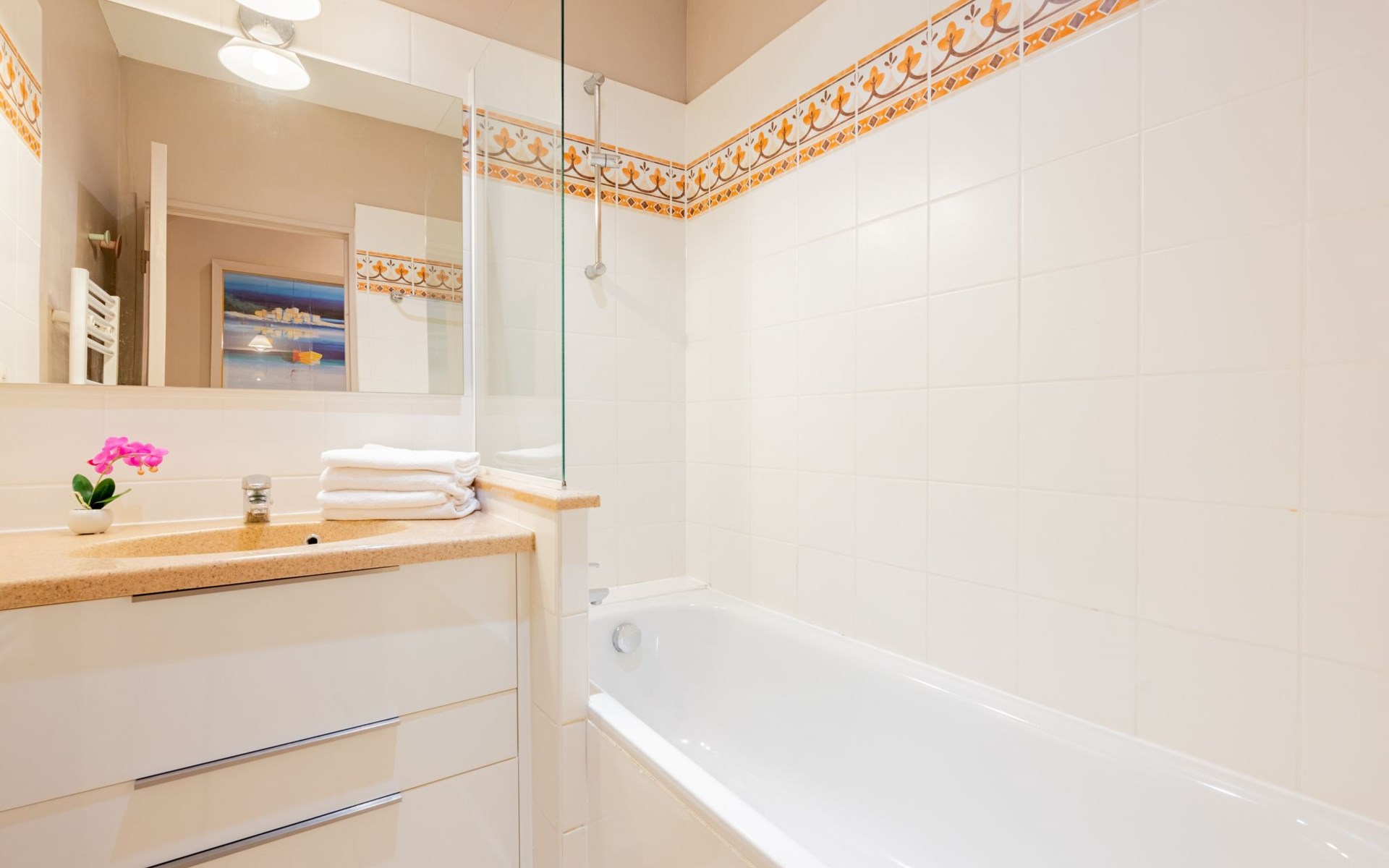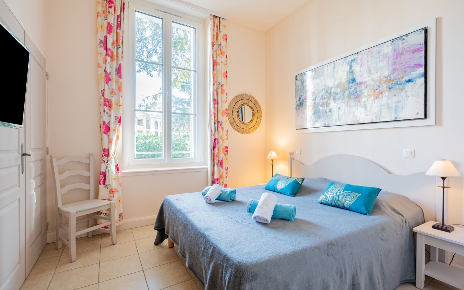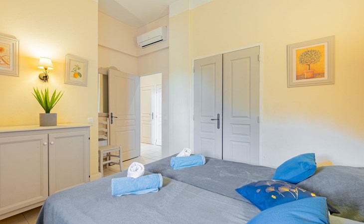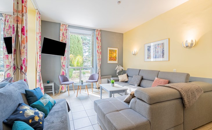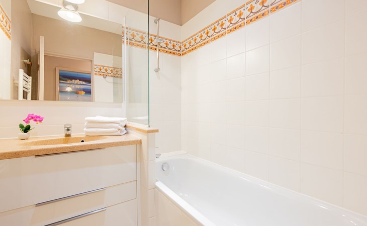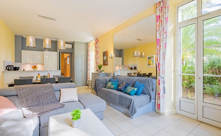 Resort "Villa Francia". 8 apartments in the property. On the outskirts, 1.5 km from the centre, 800 m from the sea, 800 m from the beach, in the countryside. For shared use: well-kept terraced garden (fenced), swimming pool secured, fenced (40 x 30 m, depth 60 - 300 cm, seasonal availability: 01.Jun. - 30.Sep.) with internal staircase. Children's pool, outdoor shower, tennis (01.May. - 30.Oct.) (extra), table tennis. Shop 2 km, supermarket 2 km, restaurant 800 m, bakery 2 km, bus stop 300 m, sandy beach "Plage des Sports" 700 m. Sports harbour 2 km, golf course (18 hole) 6 km. Nearby attractions: Le Suquet 1.9 km, Palais des Festivals 2.5 km, Antibes 14 km, Nice 33 km, Monaco 60 km. Hiking paths: Massif de l'Estérel 20 km. Please note: no lift. The keys‘ handover takes place by the agency Interhome in Cannes, 6 km. Please note that the swimming pool and infrastructure of the residence are shared with the 400 apartments of the Villa Francia residence. There is a charge for deck chairs in the pool.