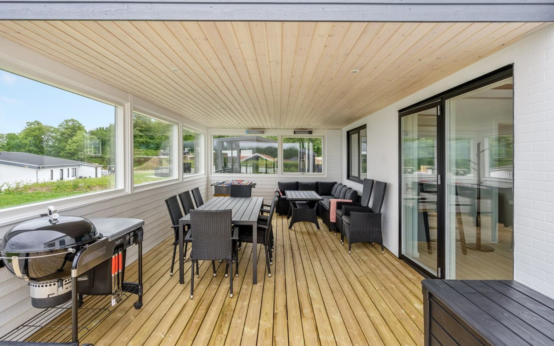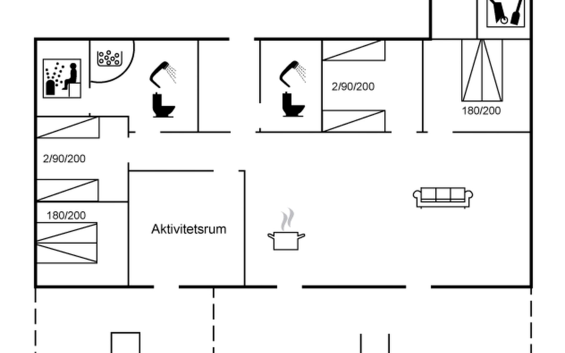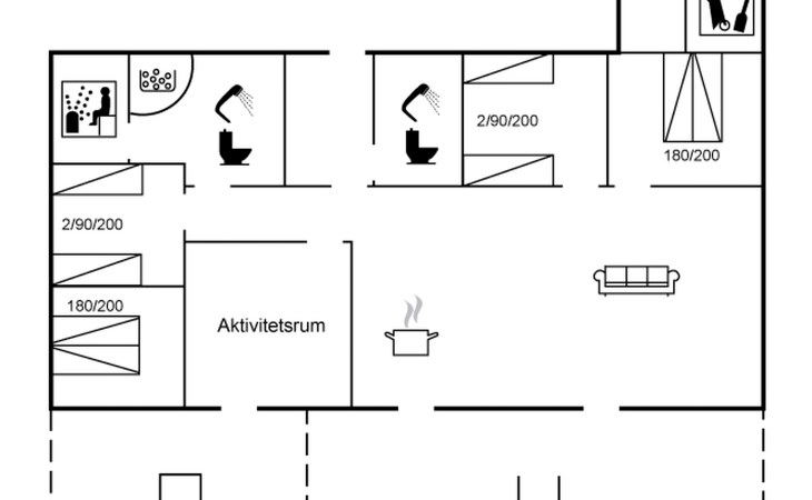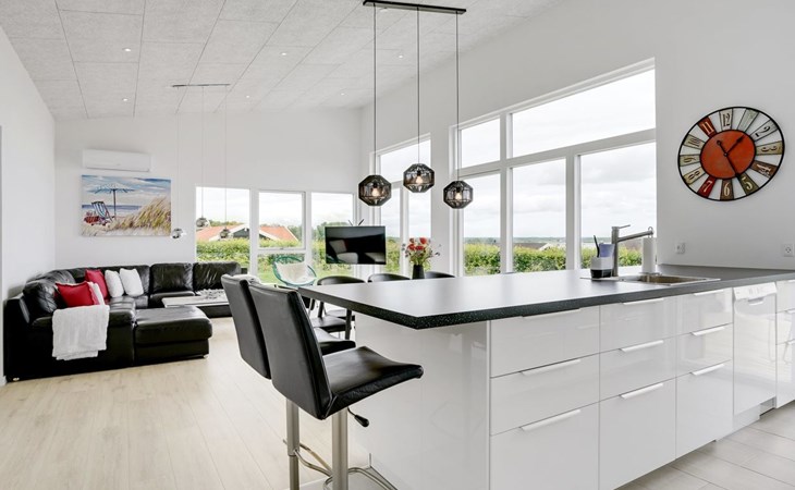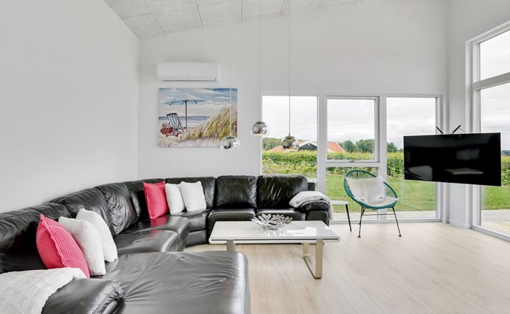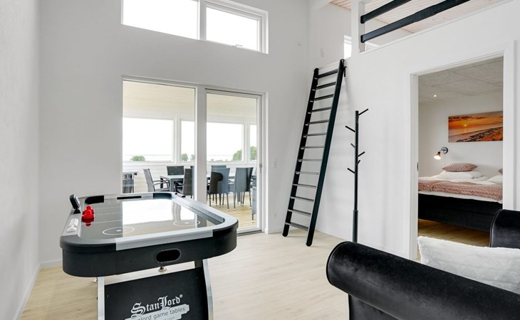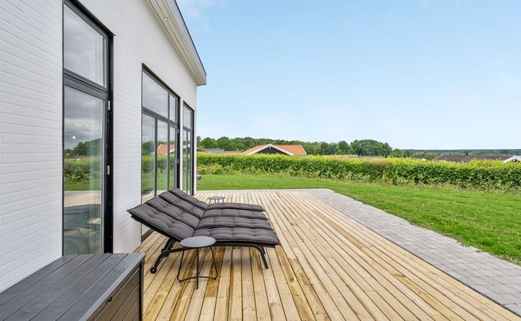 Single-family house, built in 2022. 500 m from the sea. Private: property 900 m2, well-kept garden. Barbecue. In the house: sauna, table football, trampoline, washing machine, tumble dryer. Parking at the house. Grocery 4 km. Golf course 16 km. The owner does not accept any youth groups.