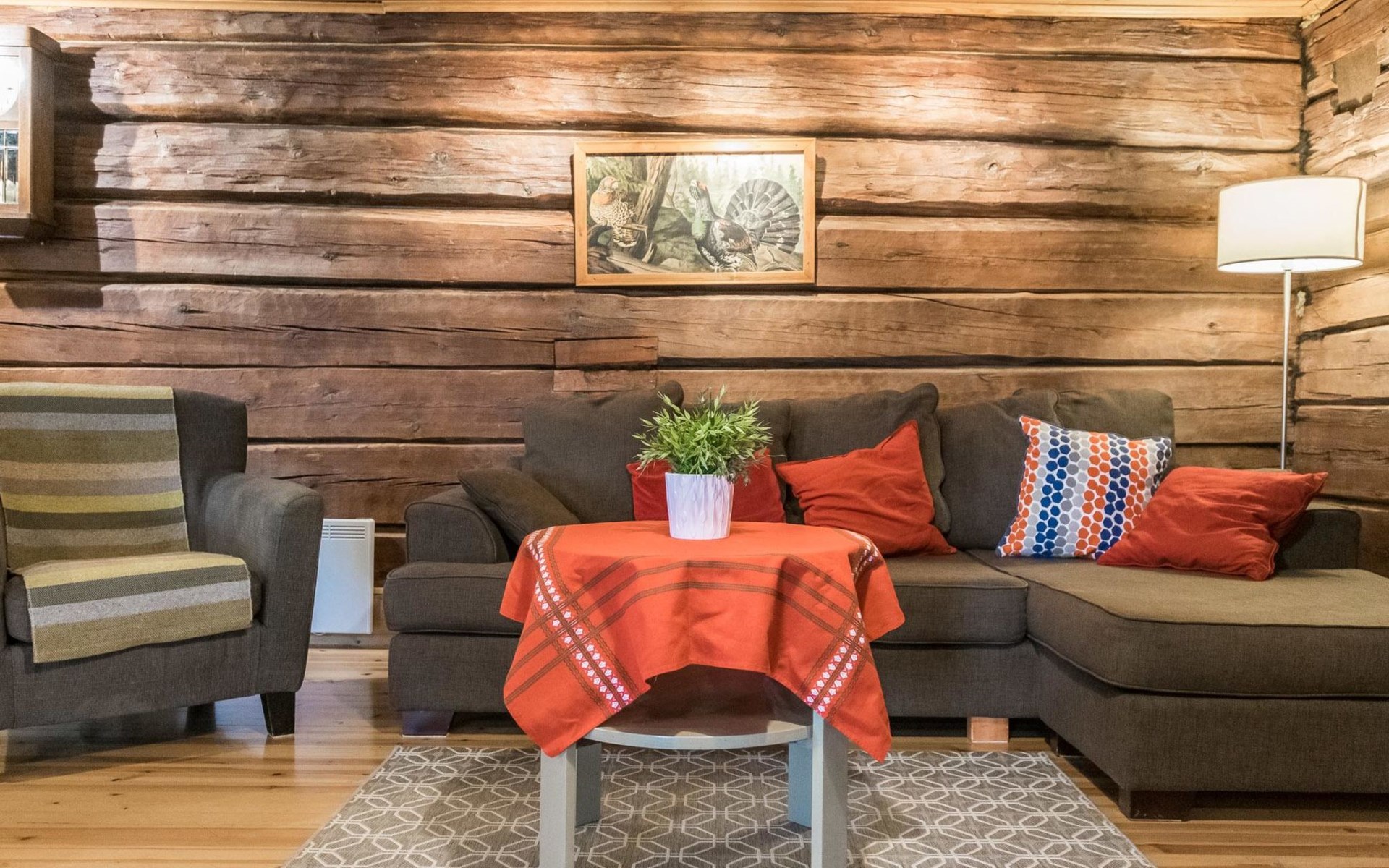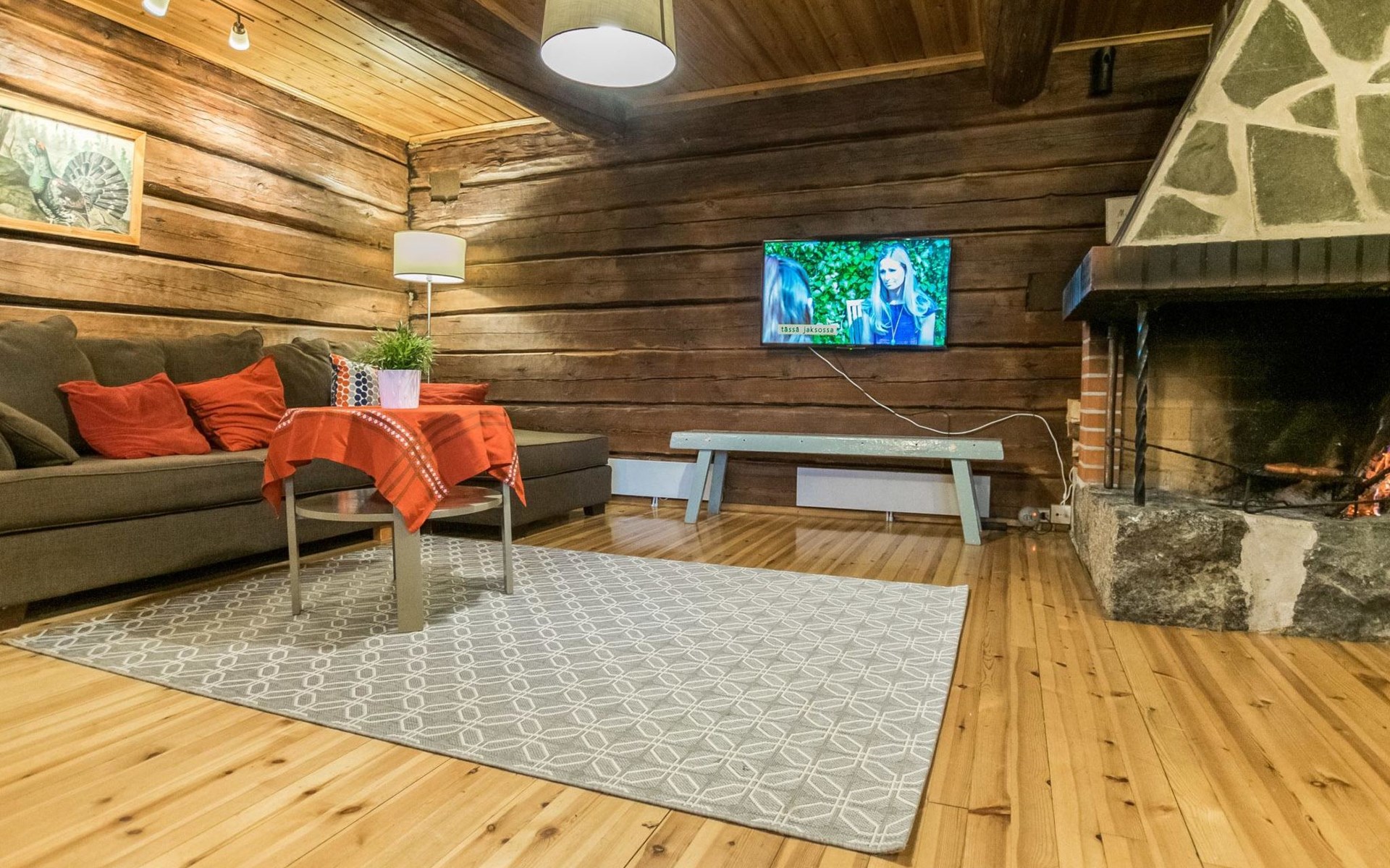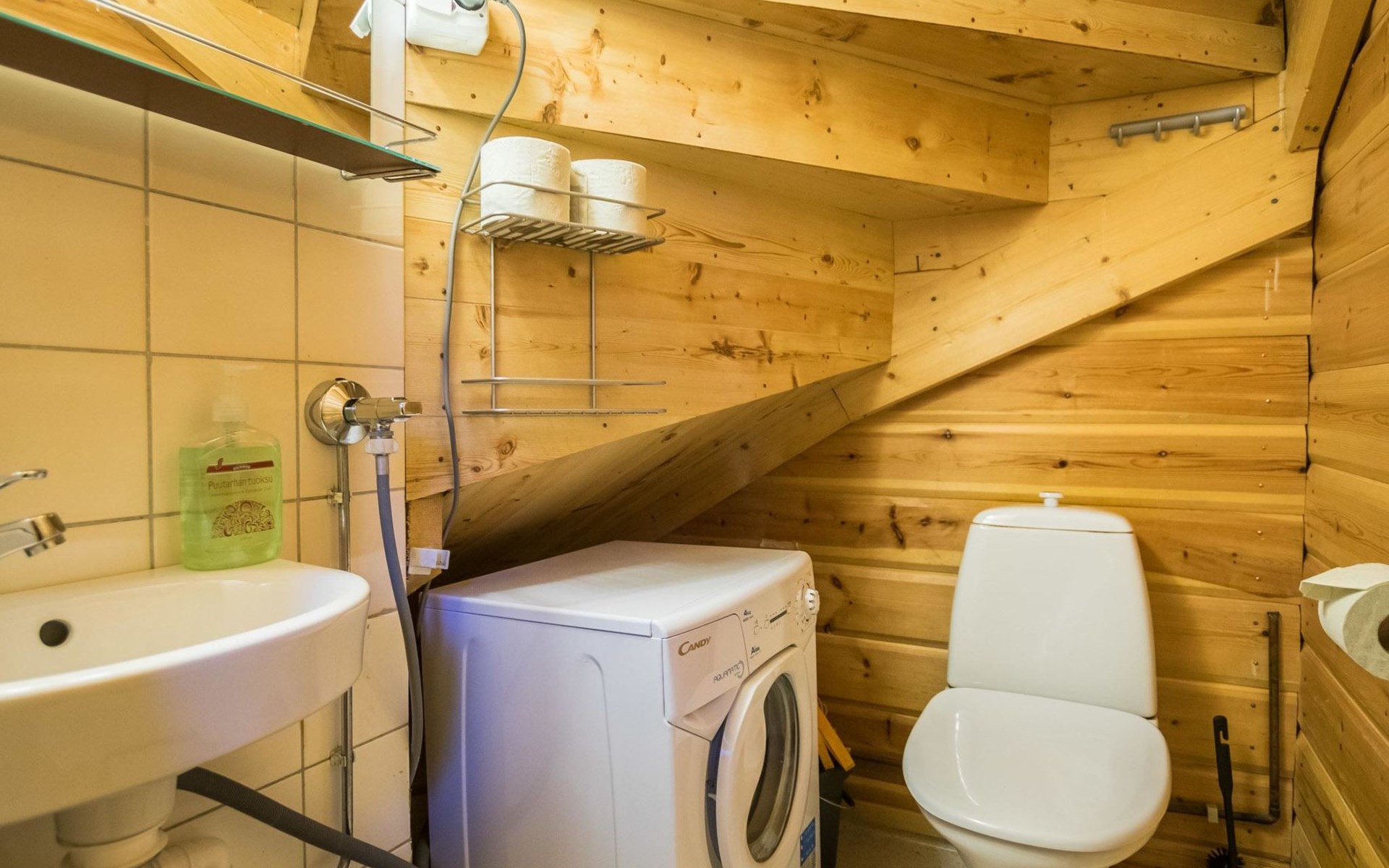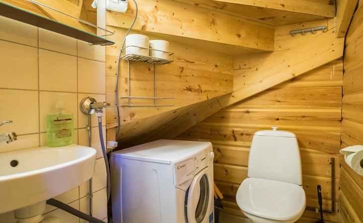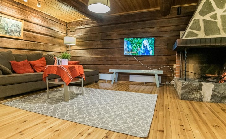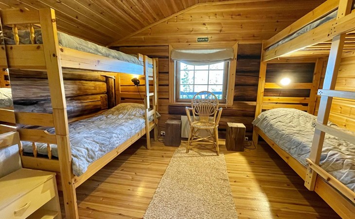 Log-built cabin on two floors, built in 1991, spacious living room, WC, another WC upstairs with shower, three bedrooms. Bedroom 1: three beds, bedroom 2: two beds and one extra bed (upper bed of bunk bed), bedroom 3: two beds. The cabin has more beds, however, the maximum number of guests is eight people. Other beds are for alternative use.