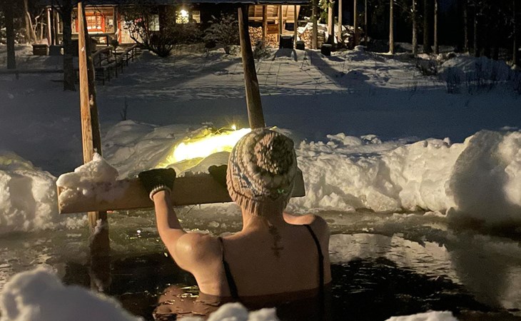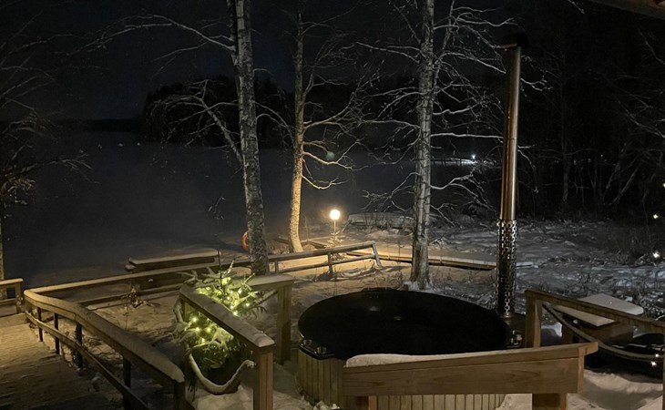 There is no own sauna in the cabin, but there is a lakeside on the beach (distance 100 m) with a daily sauna shift per cabin. The sauna must be heated by yourself if it has not been heated beforehand. The length of the sauna shift is 1 hour / day. The lakeside sauna can be rented separately for a longer period. Then there is also a hot tub available in the sauna. A separate smoke sauna (located in the same sauna building) can also be rented. Rentals are agreed in advance with the owner. Smoke sauna 300 e / 3 h, hot tub as pre-heated 150 e / 3 h. In winter, the owner will make a hole in the ice on request and according to the ice situation.