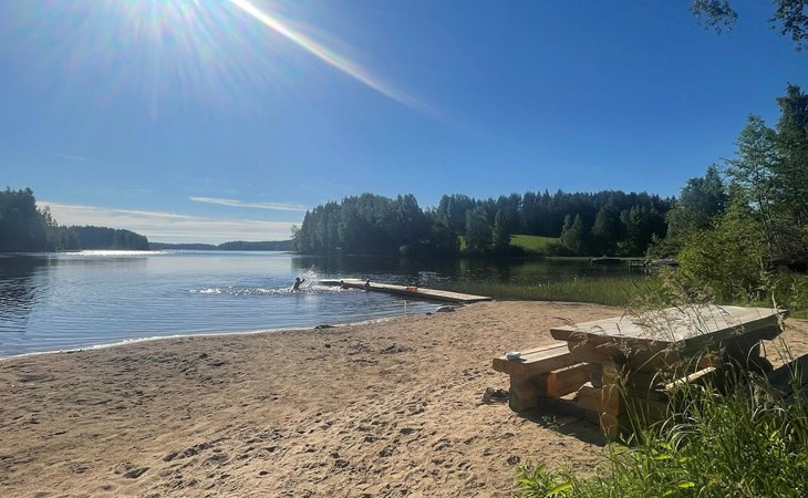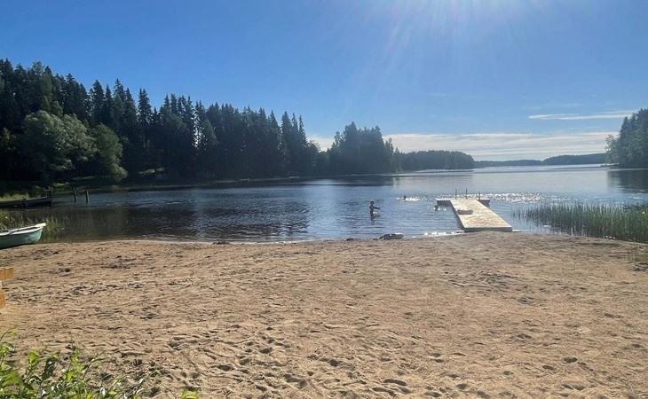 87 km to the north from Tampere (20 km to the south from Virrat), lake Näsijärvi 100 m, shared beach, shallow sanded bottom, restored in spring 2022. swimming pier, boat for shared use.