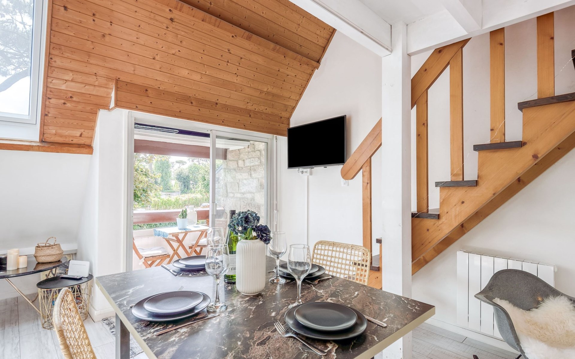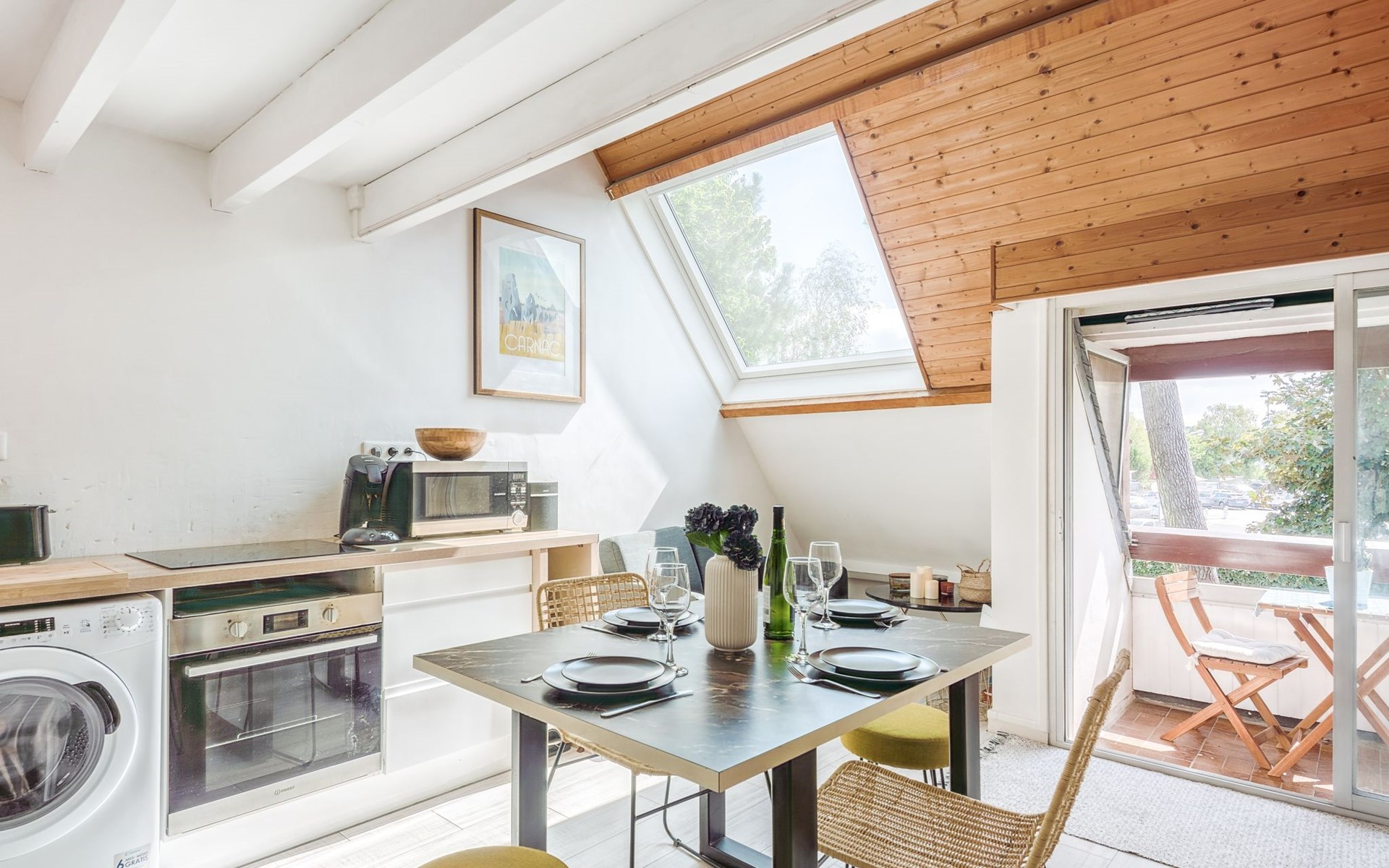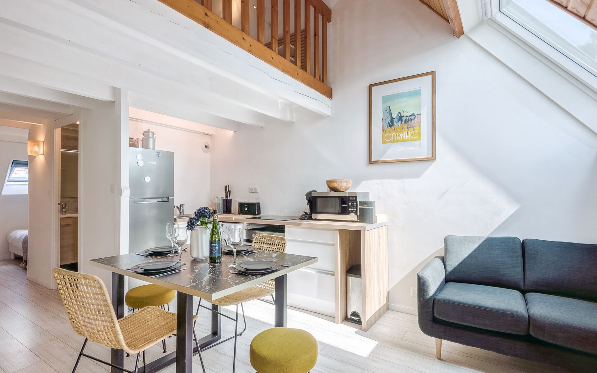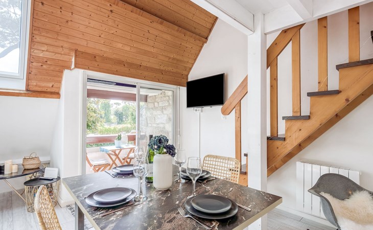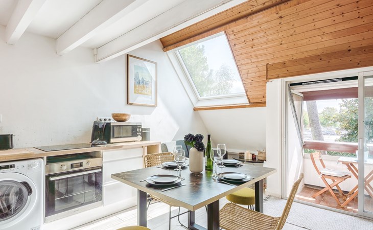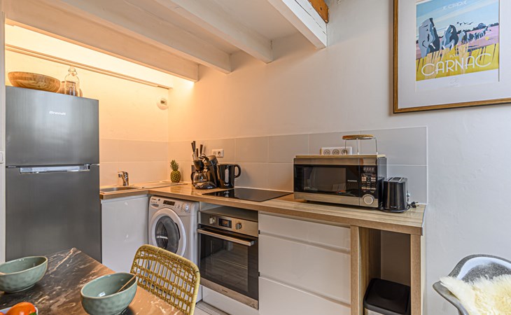 Residence "Les Druides", 2 storeys. In the resort 1.5 km from the centre of de Carnac Plage, in a quiet position, 500 m from the sea. Shop 1.5 km, supermarket 200 m, restaurant 1.5 km, sandy beach "La Grande Plage" 500 m, thermal baths "Thalassothérapie de Carnac" 2 km. Nearby attractions: Ecole de voile "Le Yacht Club" 1.5 km, Les Alignements de Carnac 3.5 km, La Trinité Sur Mer 4 km, Auray 17 km, Quiberon 20 km, Lorient 52 km.