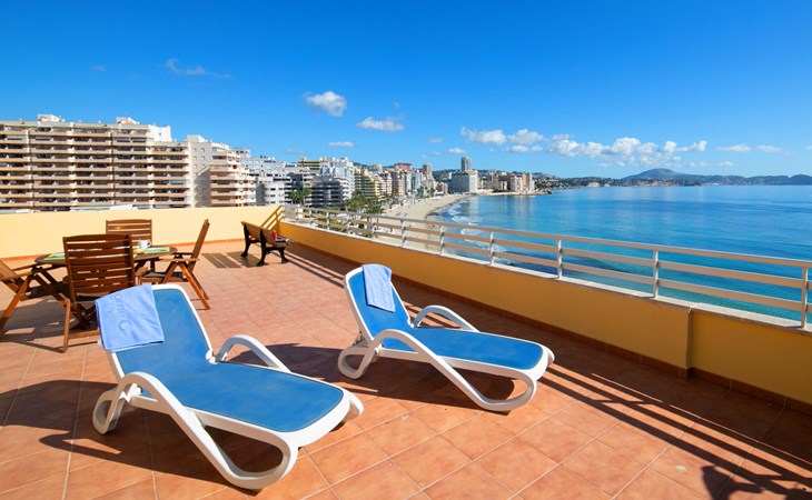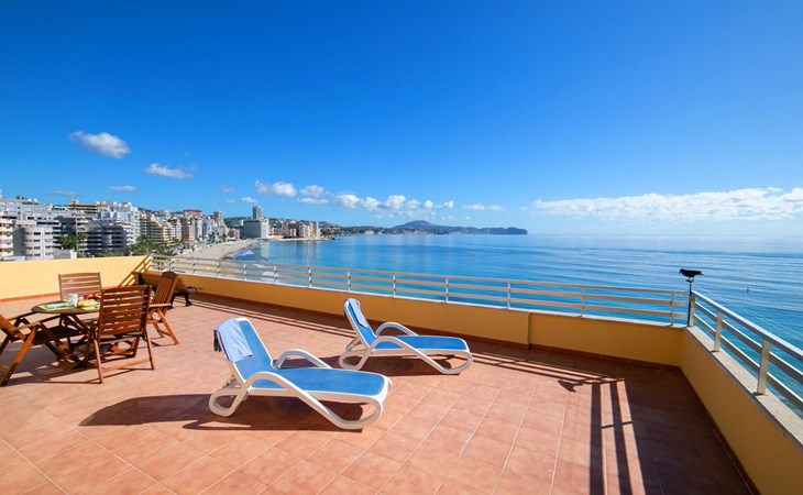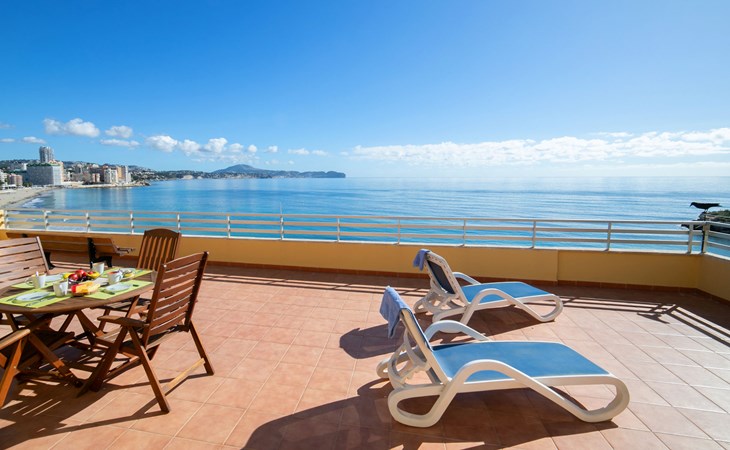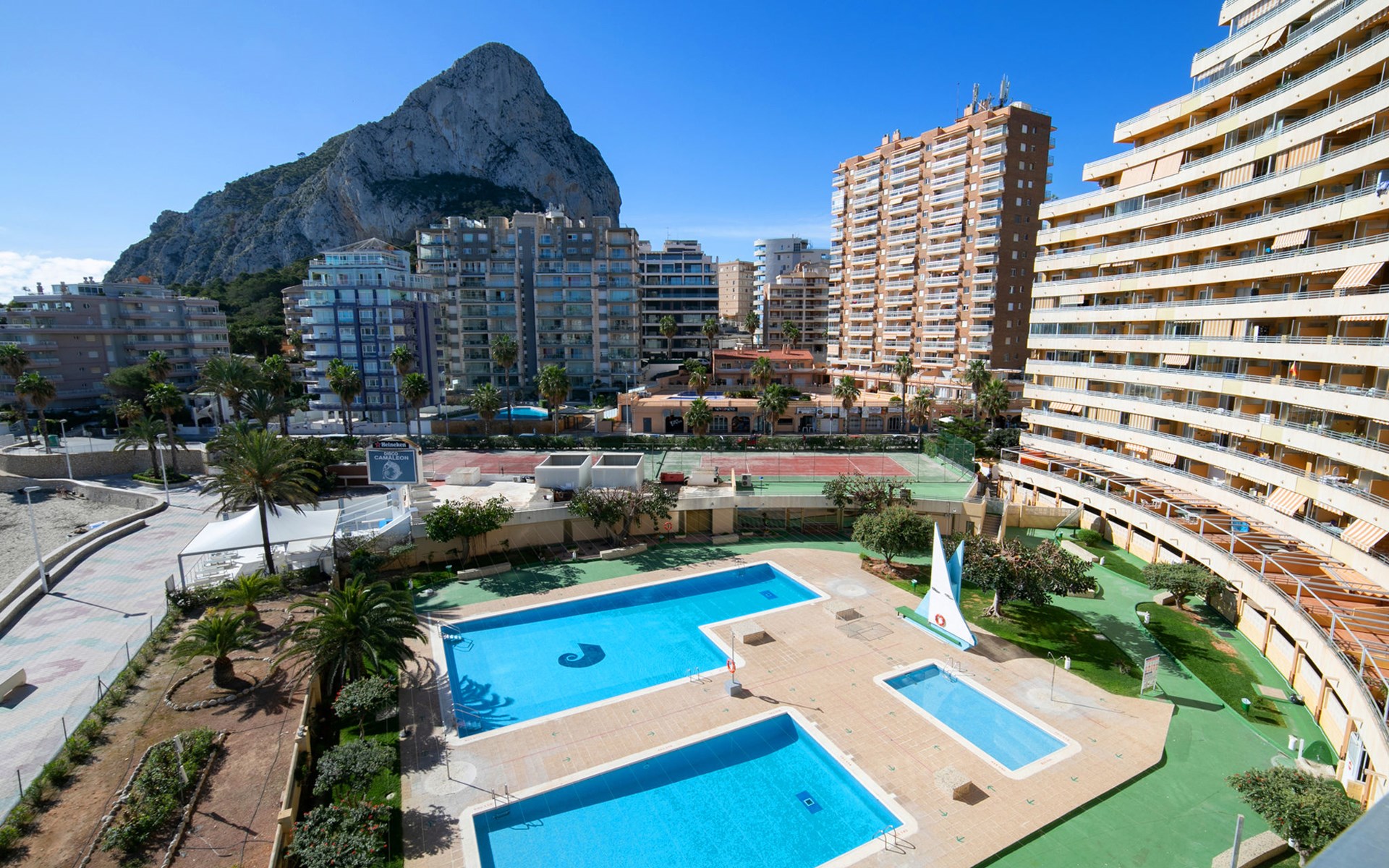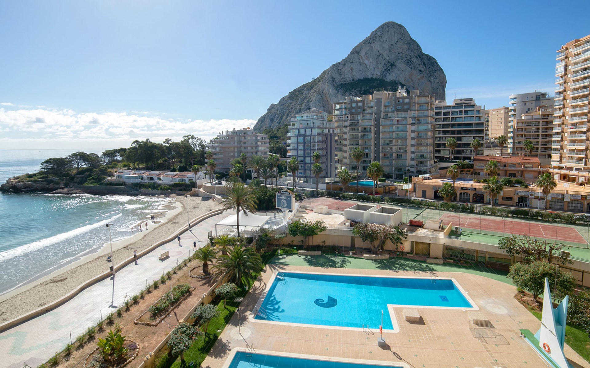 Playa de la Fossa: Apartment block "Voramar", 15 storeys. 1.8 km from the centre of Calpe, in a busy, sunny position, 10 m from the sea, from the beach, direct access to the beach. For shared use: property (fenced), garden, 3 swimming pools (seasonal availability: 01.May. - 31.Oct.). Children's pool, outdoor shower, terrace. In the house: lift. Supermarket, restaurant 50 m, bar 100 m, pub garden 10 m, bus stop, sandy beach "Playa de la Fossa" 10 m. Sports harbour, marina 350 m, golf course (9 hole) 10.5 km, surf school, sailing school. Nearby attractions: Aqualandia, Terra MÃtica, Mundomar, Terra Natura, Benidorm Palace (Benidorm). The owner does not accept any youth groups. Residence with electric gates.