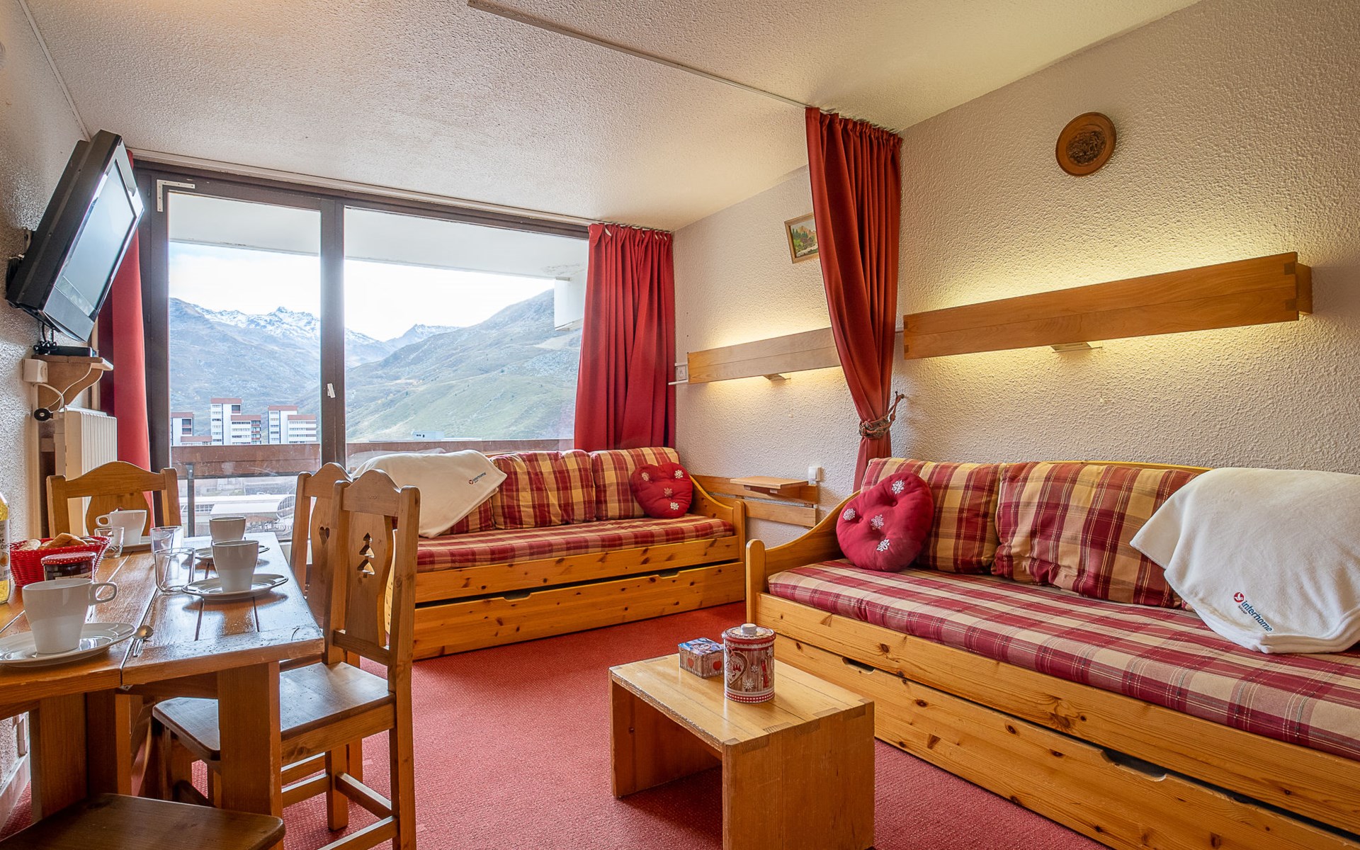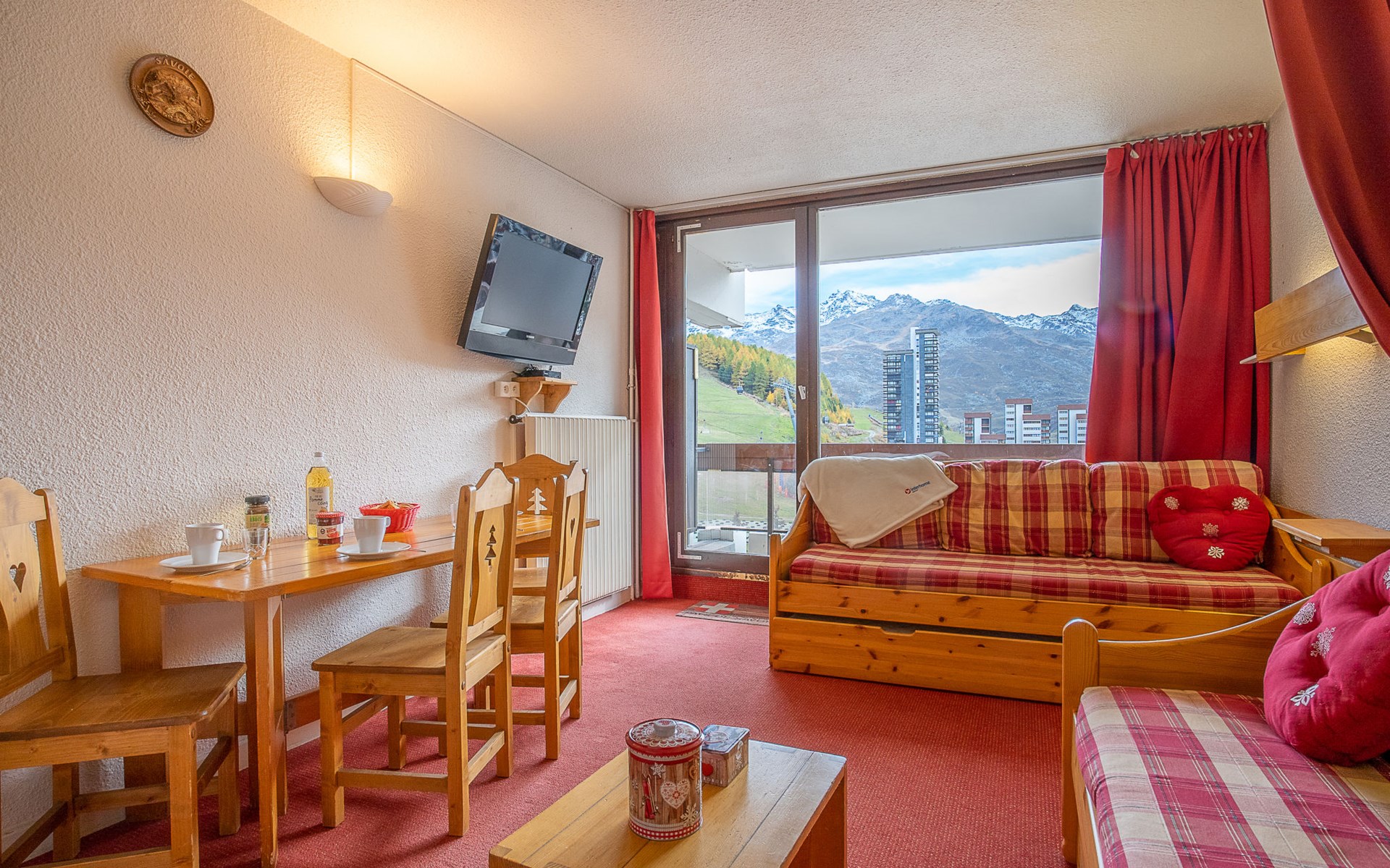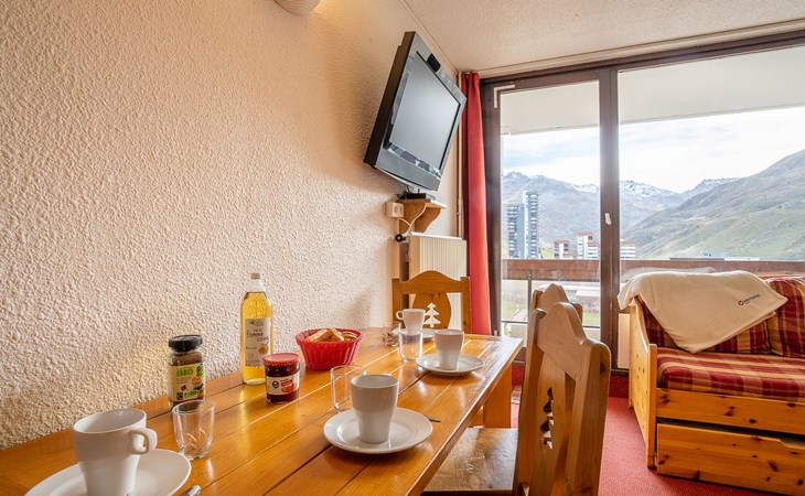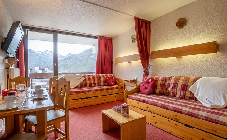 Residence "Chavière", 8 storeys. In the centre of La Croisette, directly by the skiing area. In the complex: lift, storage room for skis, central heating system. Public parking. Shop, supermarket 10 m, bus stop "Gare routière les menuires" 100 m. Sports centre 30 m, skisport facilities, slopes, ski school 20 m, ski-kindergarten 50 m. Well-known ski regions can easily be reached: 3 Vallées. Please note: the photograph shows a typical example. Additional accommodations can be booked.
