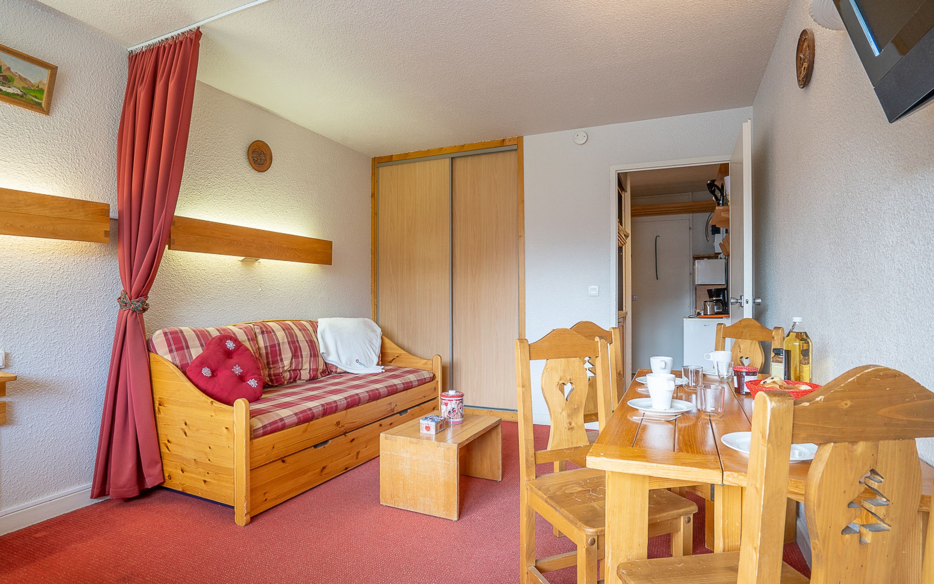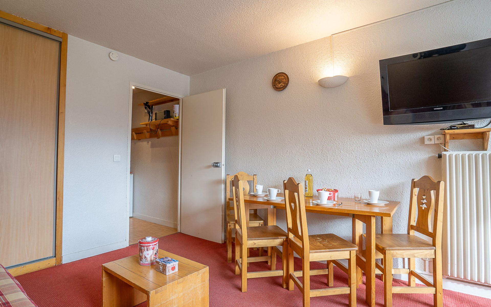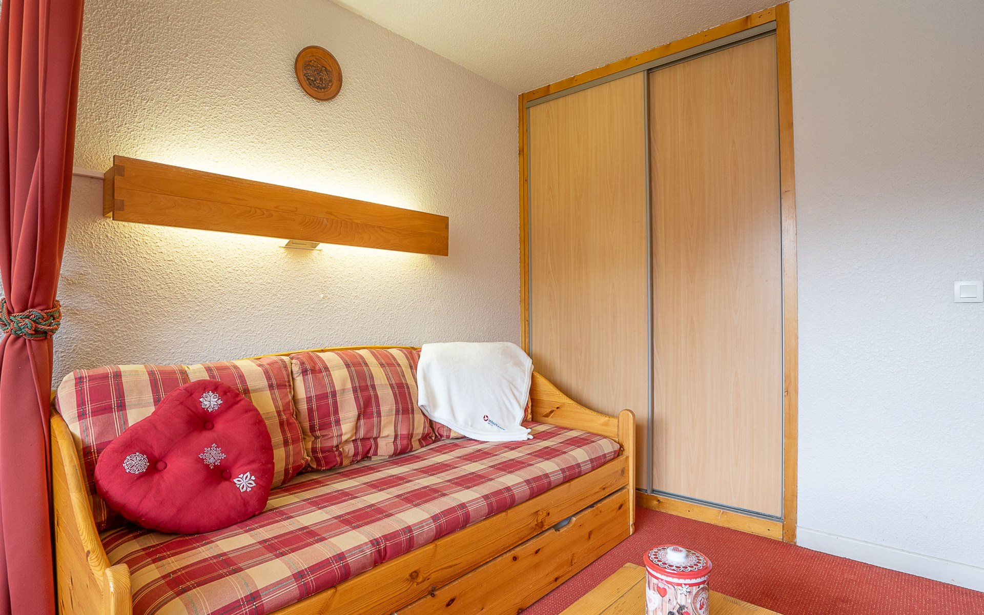 Residence "Chavière", 8 storeys. In the centre of La Croisette, directly by the skiing area. In the complex: lift, storage room for skis, central heating system. Public parking. Shop, supermarket 10 m, bus stop "Gare routière les menuires" 100 m. Sports centre 30 m, skisport facilities, slopes, ski school 20 m, ski-kindergarten 50 m. Well-known ski regions can easily be reached: 3 Vallées. Please note: the photograph shows a typical example. Additional accommodations can be booked.