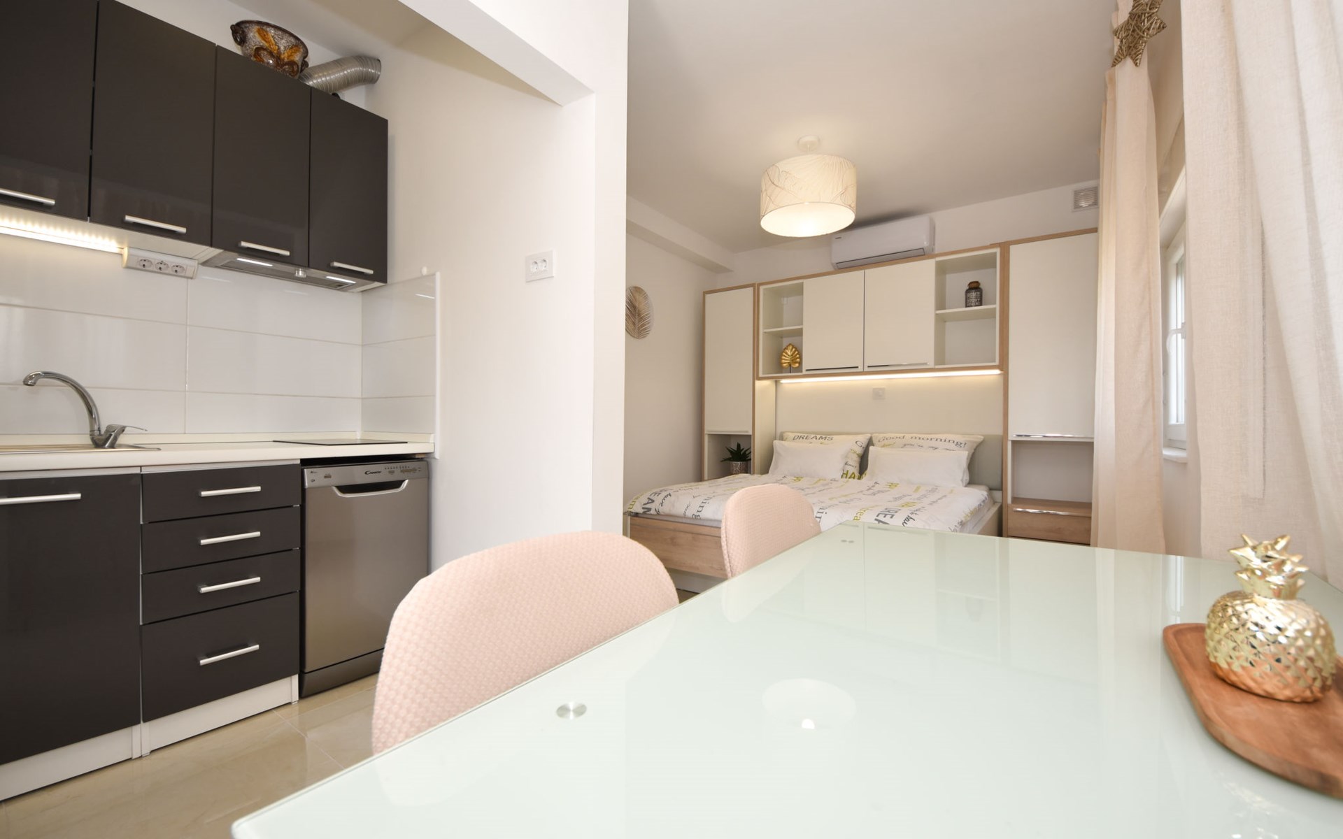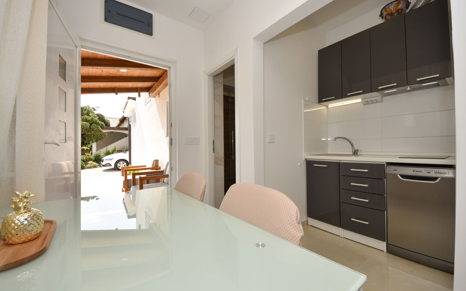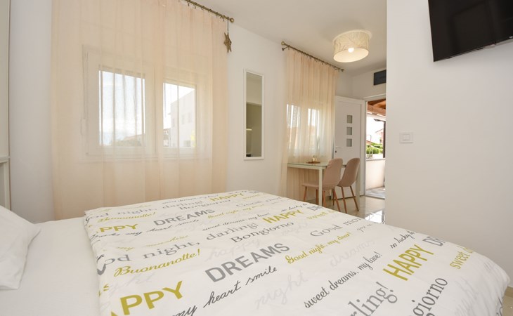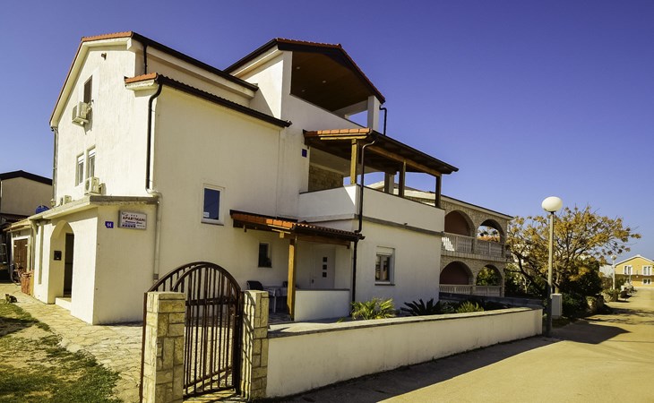 Apartment house "Matanovi Dvori". 1.5 km from the centre of Vir, in a sunny position, 300 m from the sea, 300 m from the beach. For shared use: property 250 m2 (fenced). In the house: internet access. Parking at the house on the premises. Shop, restaurant 400 m, bus stop 1.3 km, pebble beach, shingle beach 300 m. Please note: airfield 40 km from the property.