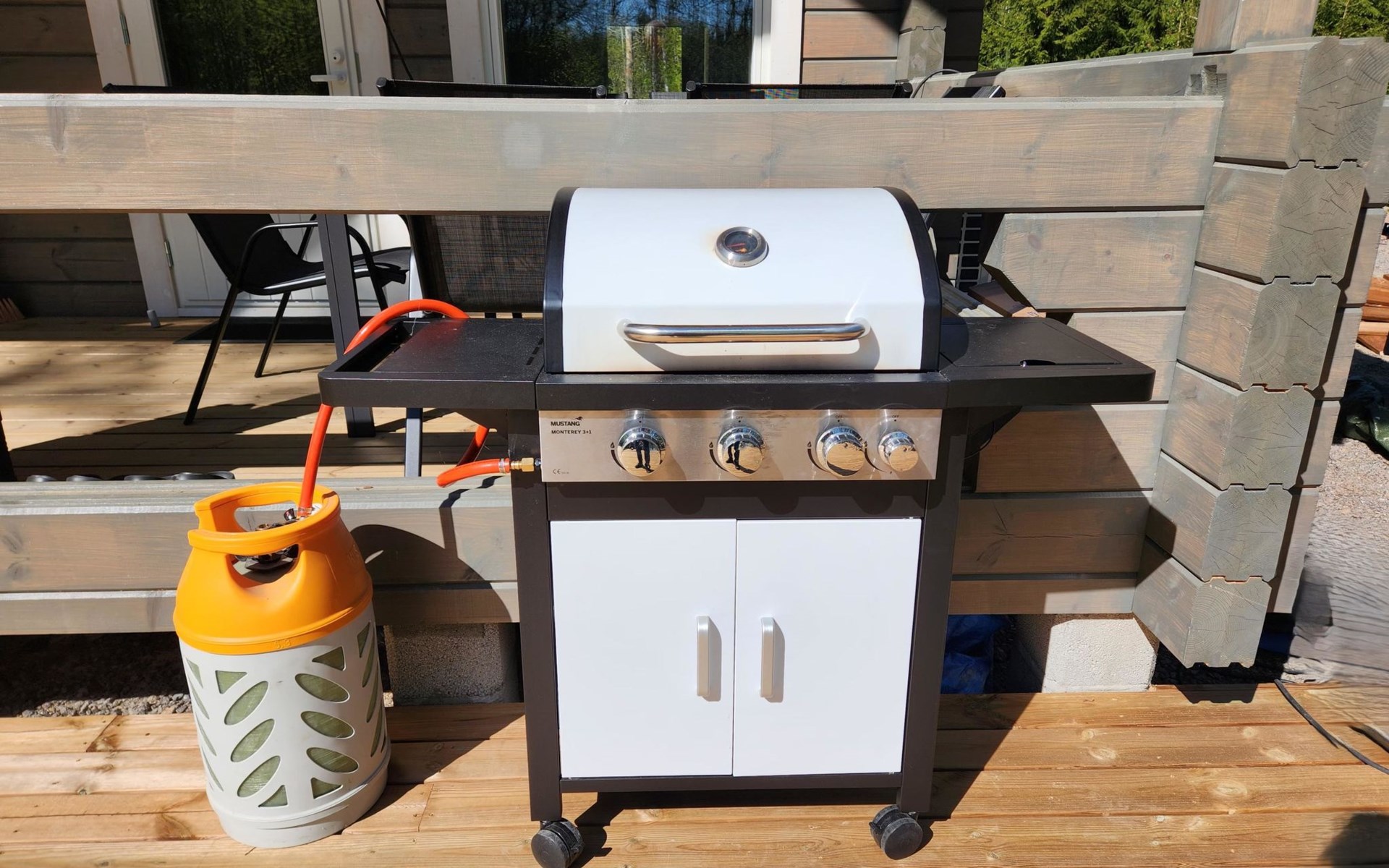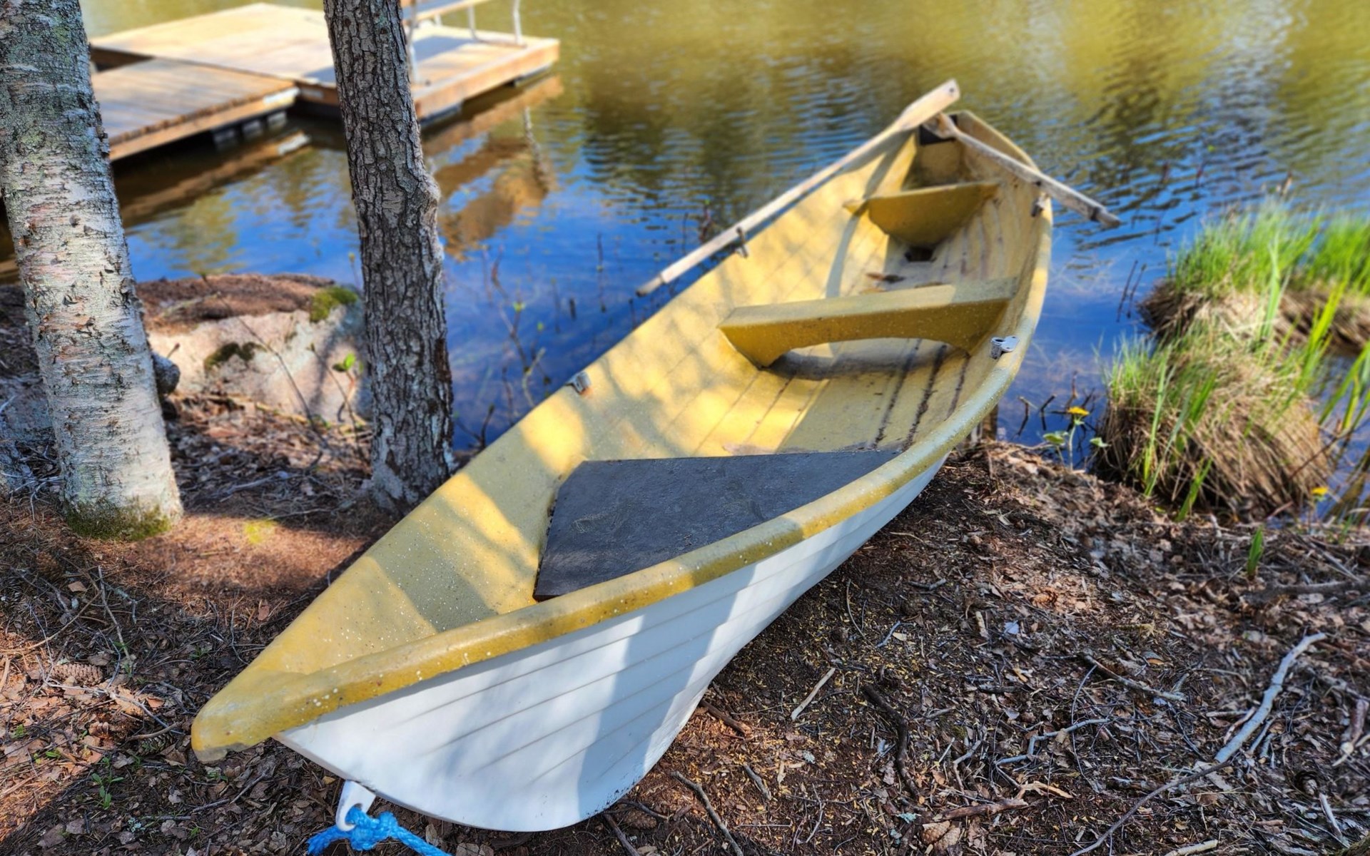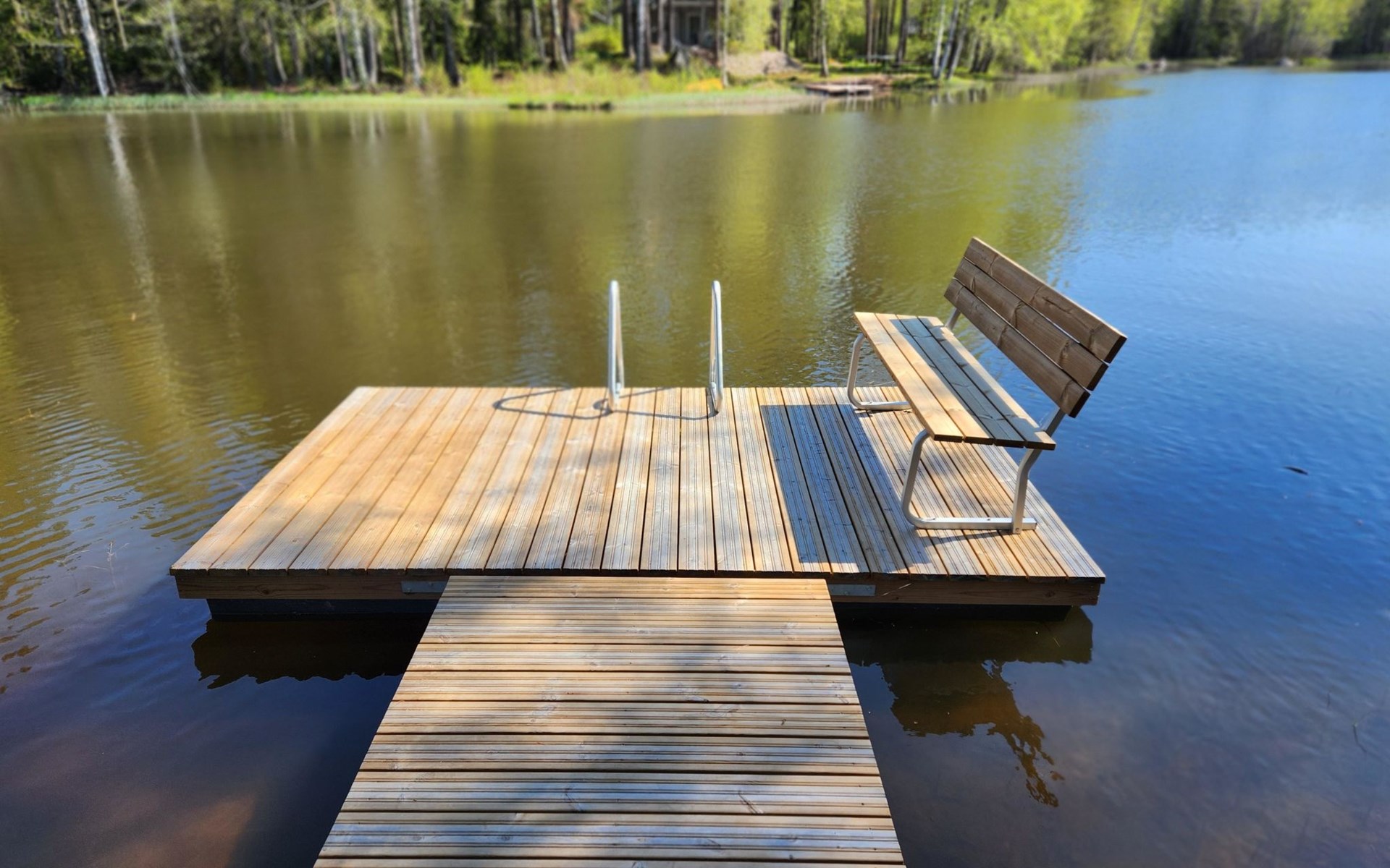 The terrace features a gas grill, perfect for preparing meals such as post-sauna snacks. You can also take a refreshing dip in the Kymi River. The swimming area has a soft, gently deepening bottom, and you can access the water from the dock. A public beach on the opposite side of the river is accessible by boat (approx. 600 m) or car (3–4 km).