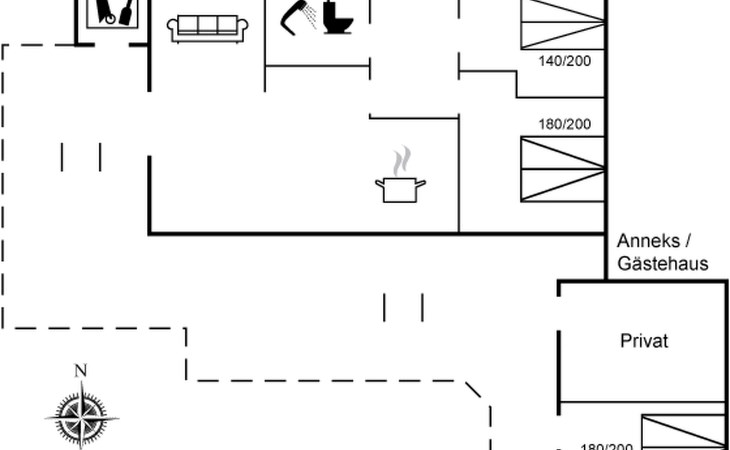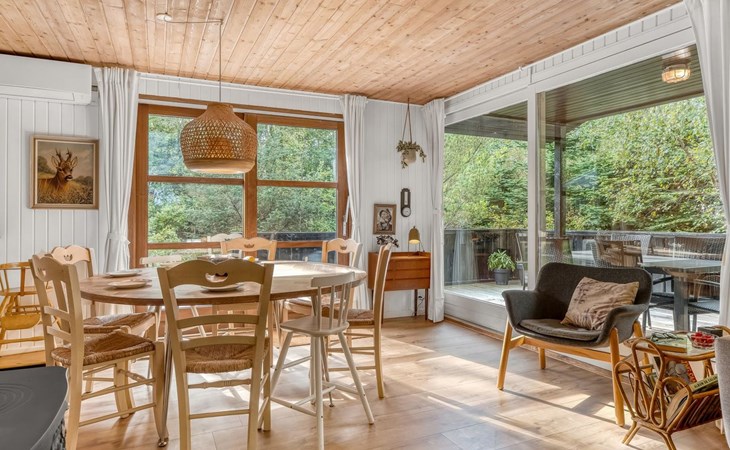 Single-family house, built in 1985. 4 km from the sea. Private: natural state property 1'301 m2. Barbecue, children's playground (swing). In the house: washing machine, tumble dryer. Parking at the house. Grocery 2.5 km. The owner does not accept any youth groups.