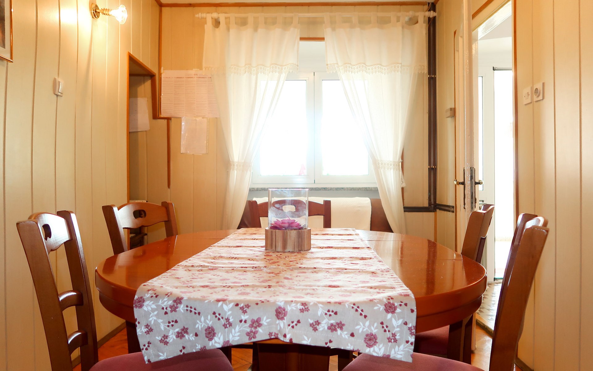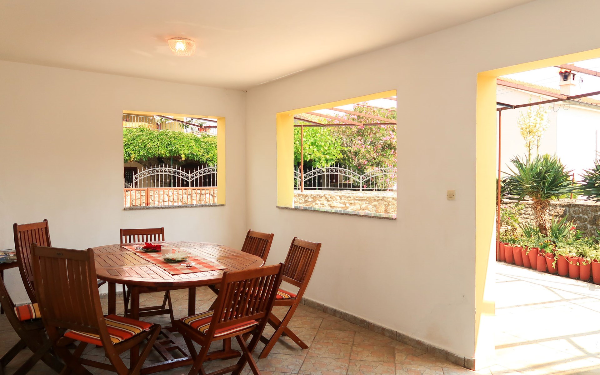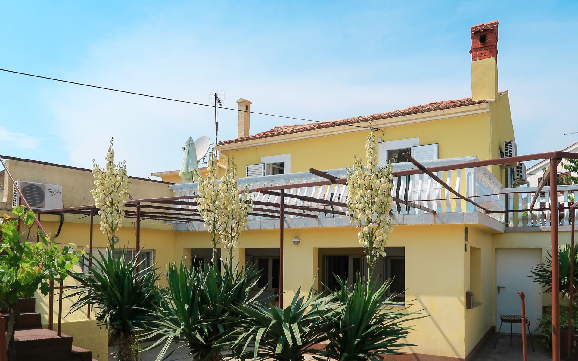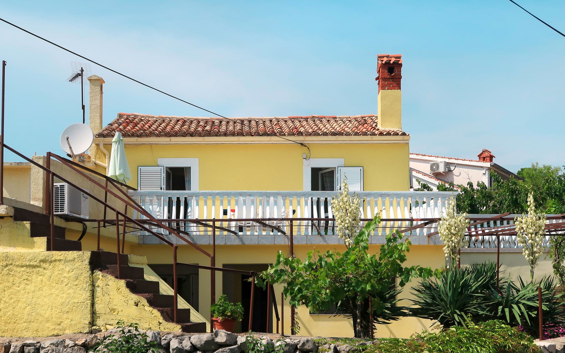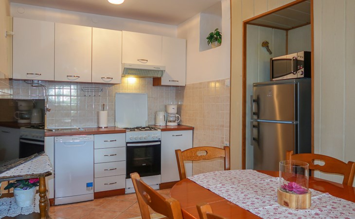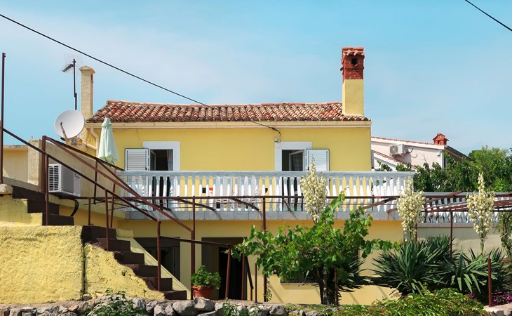 Semi-detached house "Mateja", 2 storeys. 5 km from the centre of Krk, 100 m from the centre of Kornić, 3.5 km from the centre of Punat, in the residential district, 1.2 km from the sea, 1.2 km from the beach. Private: property 300 m2 (fenced) with wildlife garden and flowers. In the house: internet access, washing machine. Parking (for 2 cars) on the premises. Shop 100 m, bus stop 1.3 km, pebble beach 1.2 km. Please note: the owner lives on the same property. Airfield 31 km from the property.