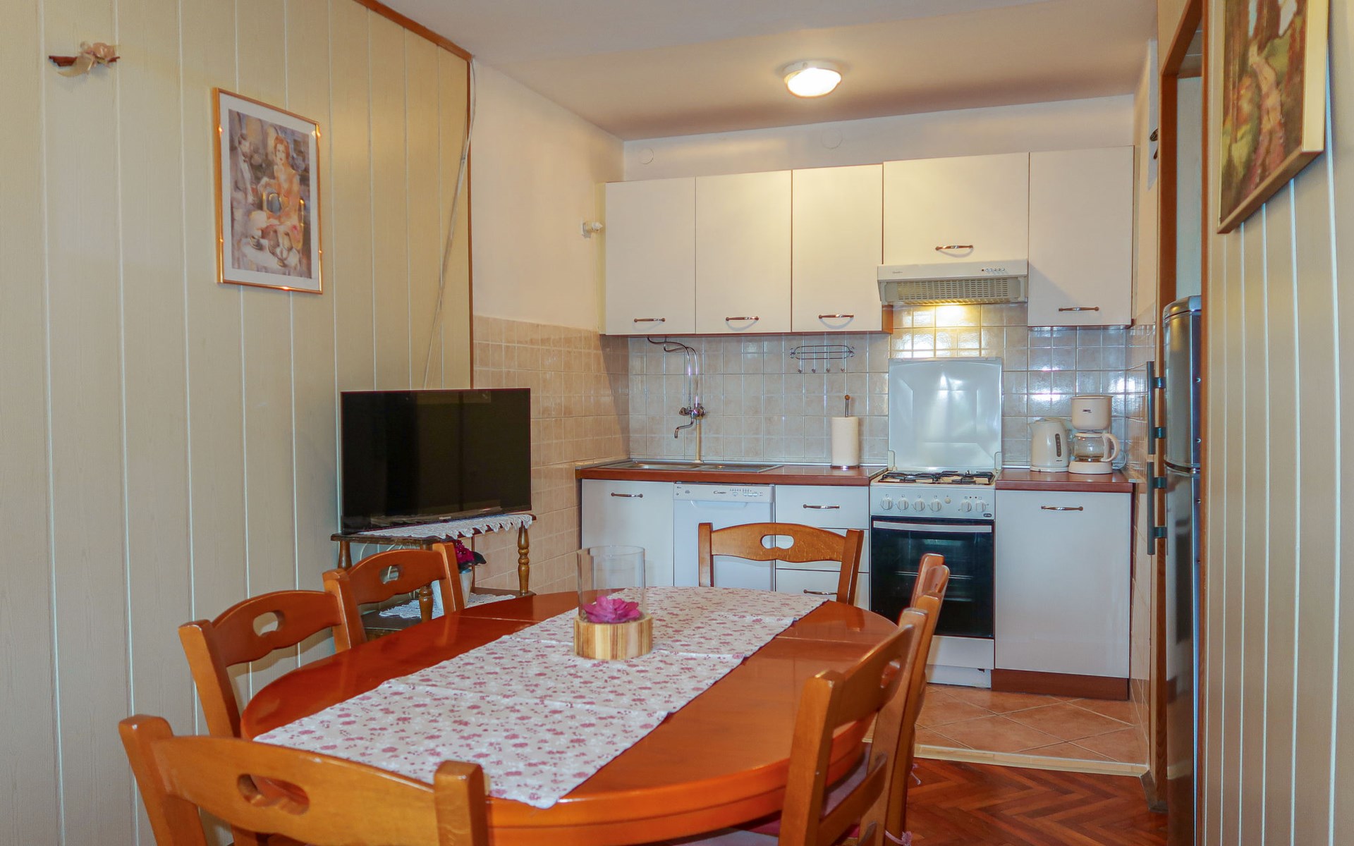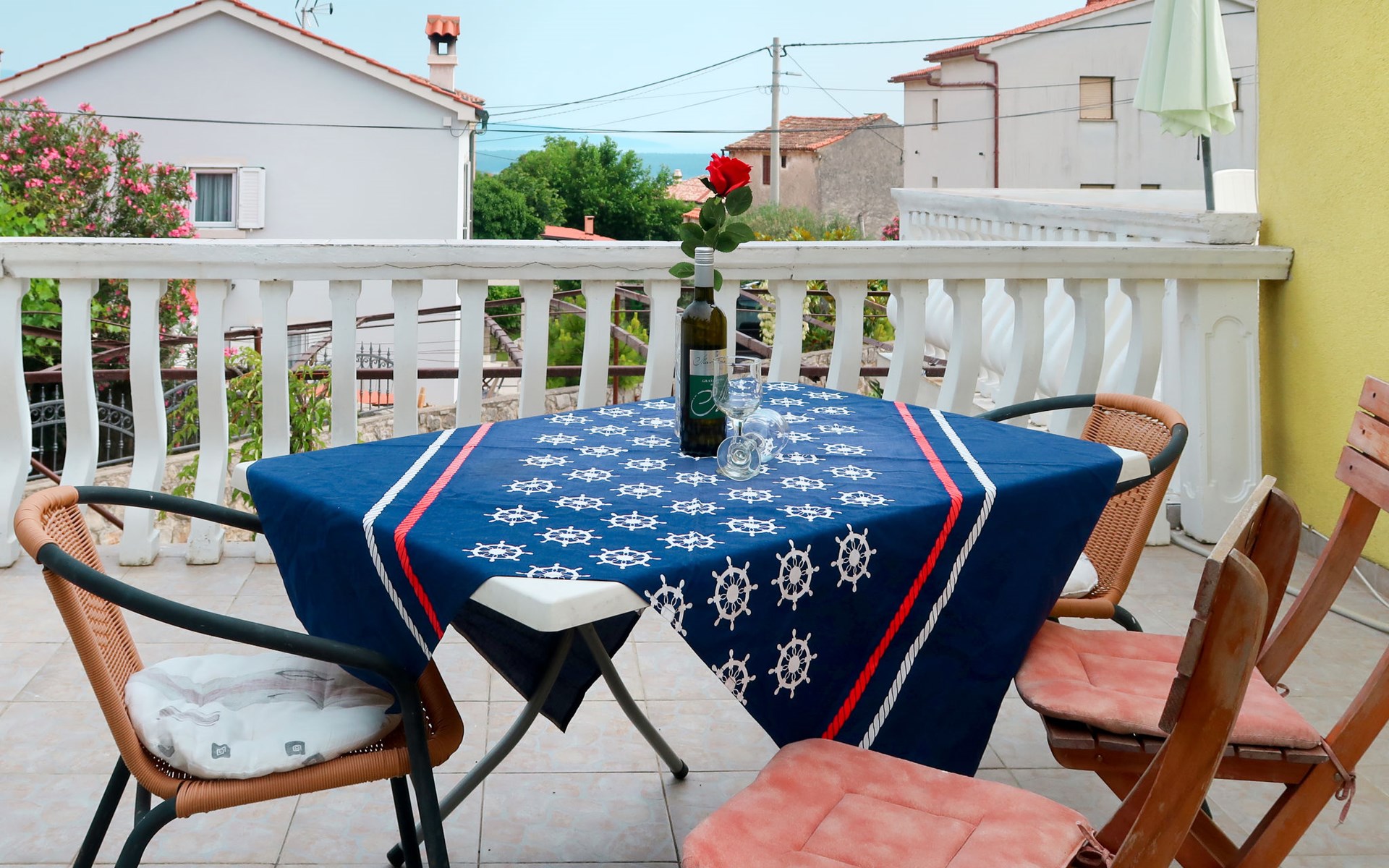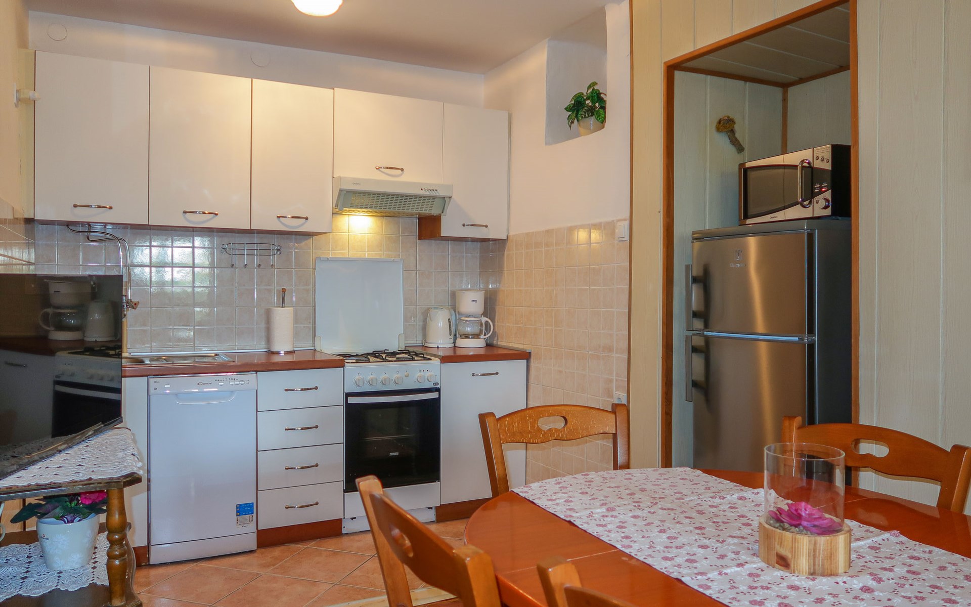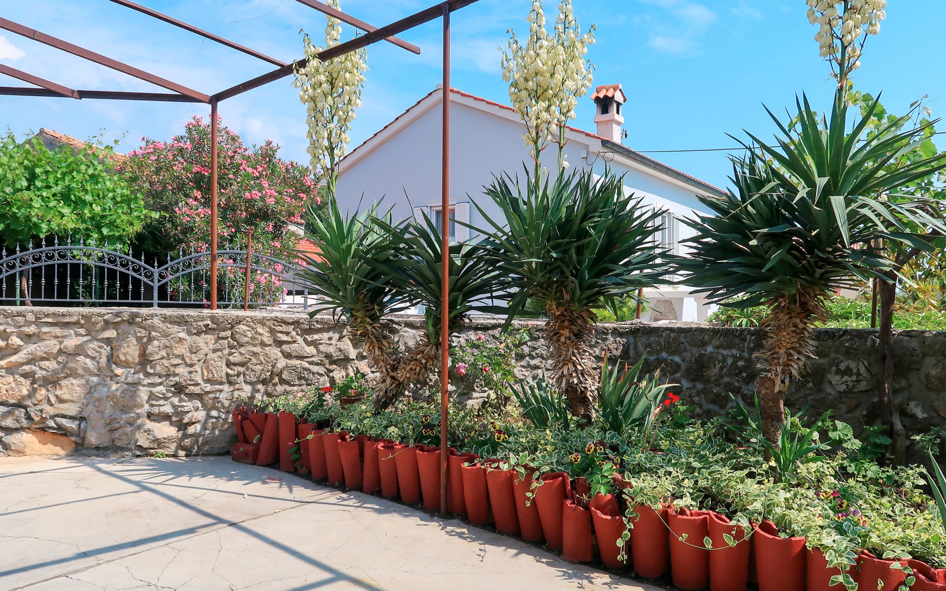 Semi-detached house "Mateja", 2 storeys. 5 km from the centre of Krk, 100 m from the centre of Kornić, 3.5 km from the centre of Punat, in the residential district, 1.2 km from the sea, 1.2 km from the beach. Private: property 300 m2 (fenced) with wildlife garden and flowers. In the house: internet access, washing machine. Parking (for 2 cars) on the premises. Shop 100 m, bus stop 1.3 km, pebble beach 1.2 km. Please note: the owner lives on the same property. Airfield 31 km from the property.
