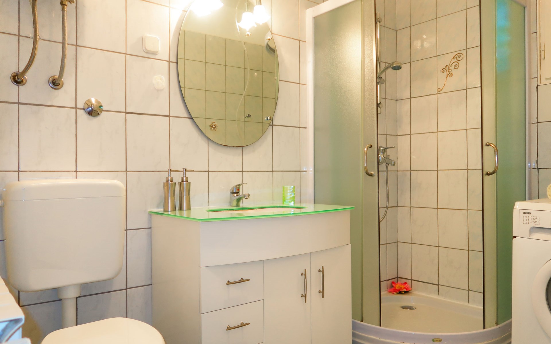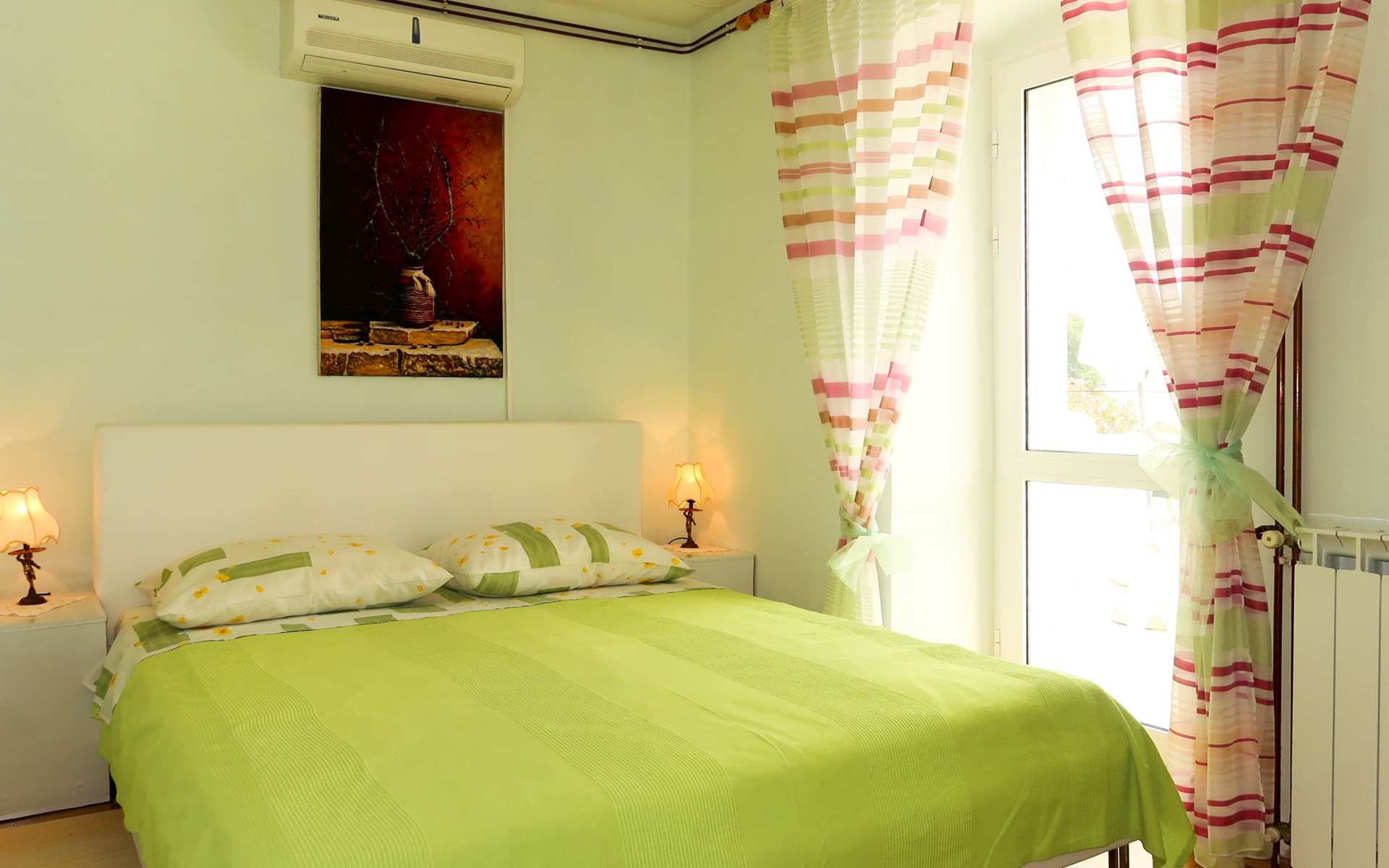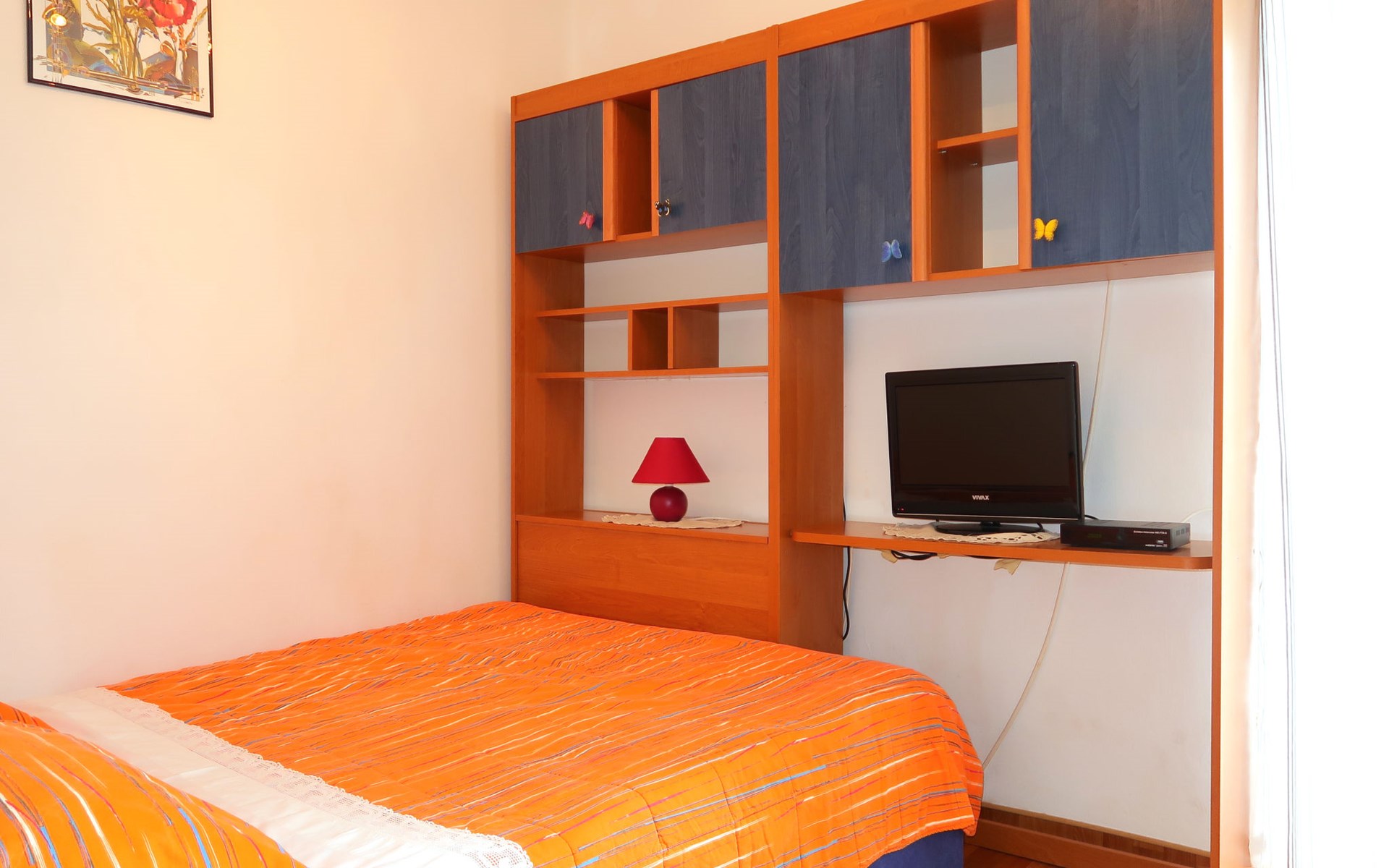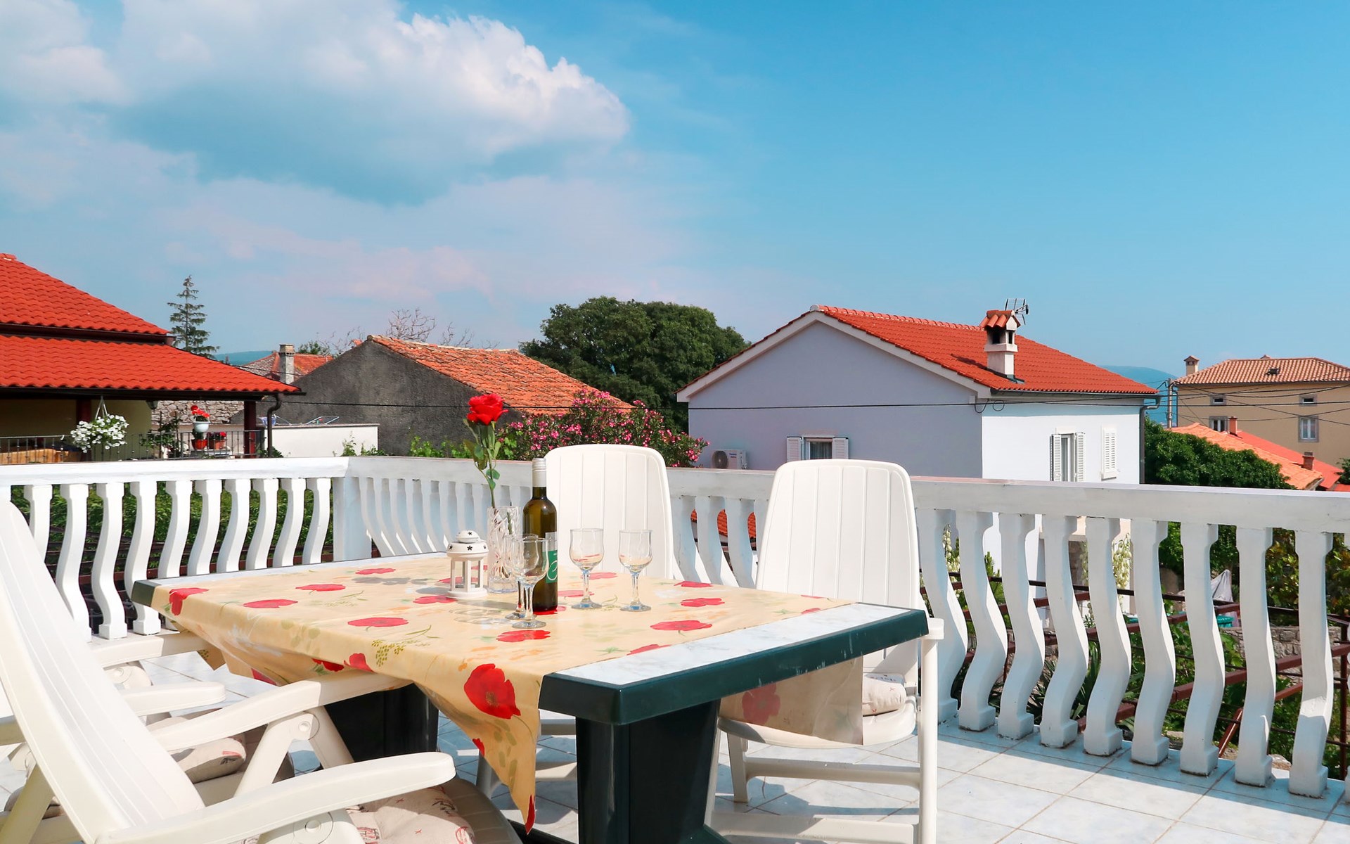 Semi-detached house "Mateja", 2 storeys. 5 km from the centre of Krk, 100 m from the centre of Kornić, 3.5 km from the centre of Punat, in the residential district, 1.2 km from the sea, 1.2 km from the beach. Private: property 300 m2 (fenced) with wildlife garden and flowers. In the house: internet access, washing machine. Parking (for 2 cars) on the premises. Shop 100 m, bus stop 1.3 km, pebble beach 1.2 km. Please note: the owner lives on the same property. Airfield 31 km from the property.