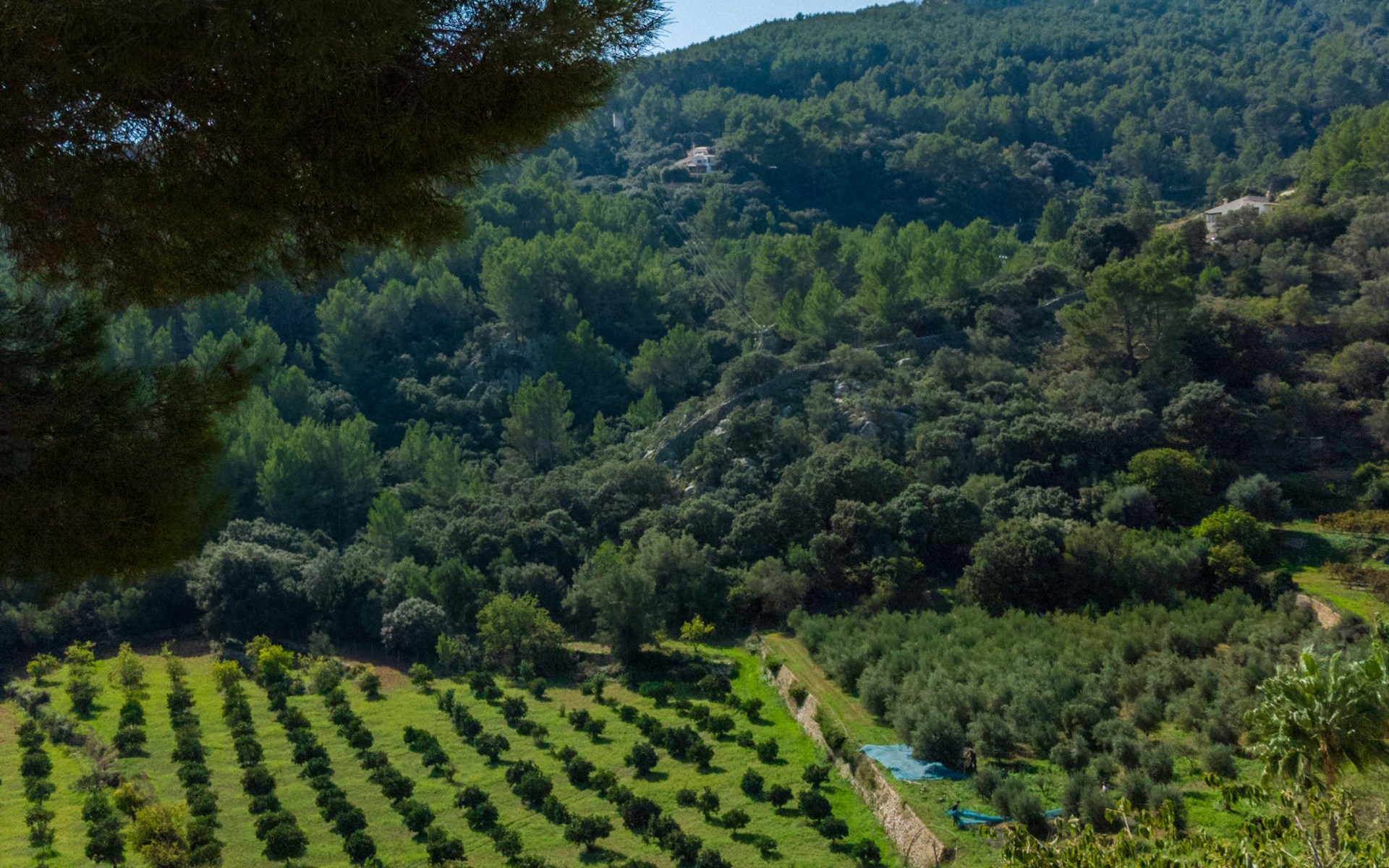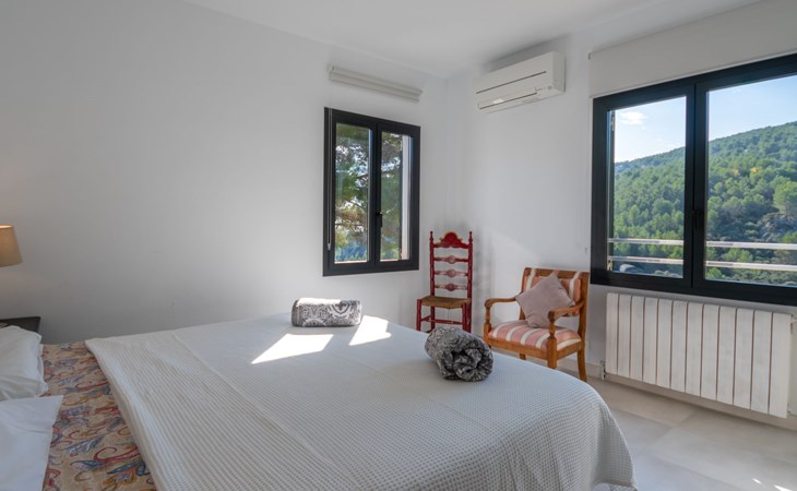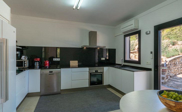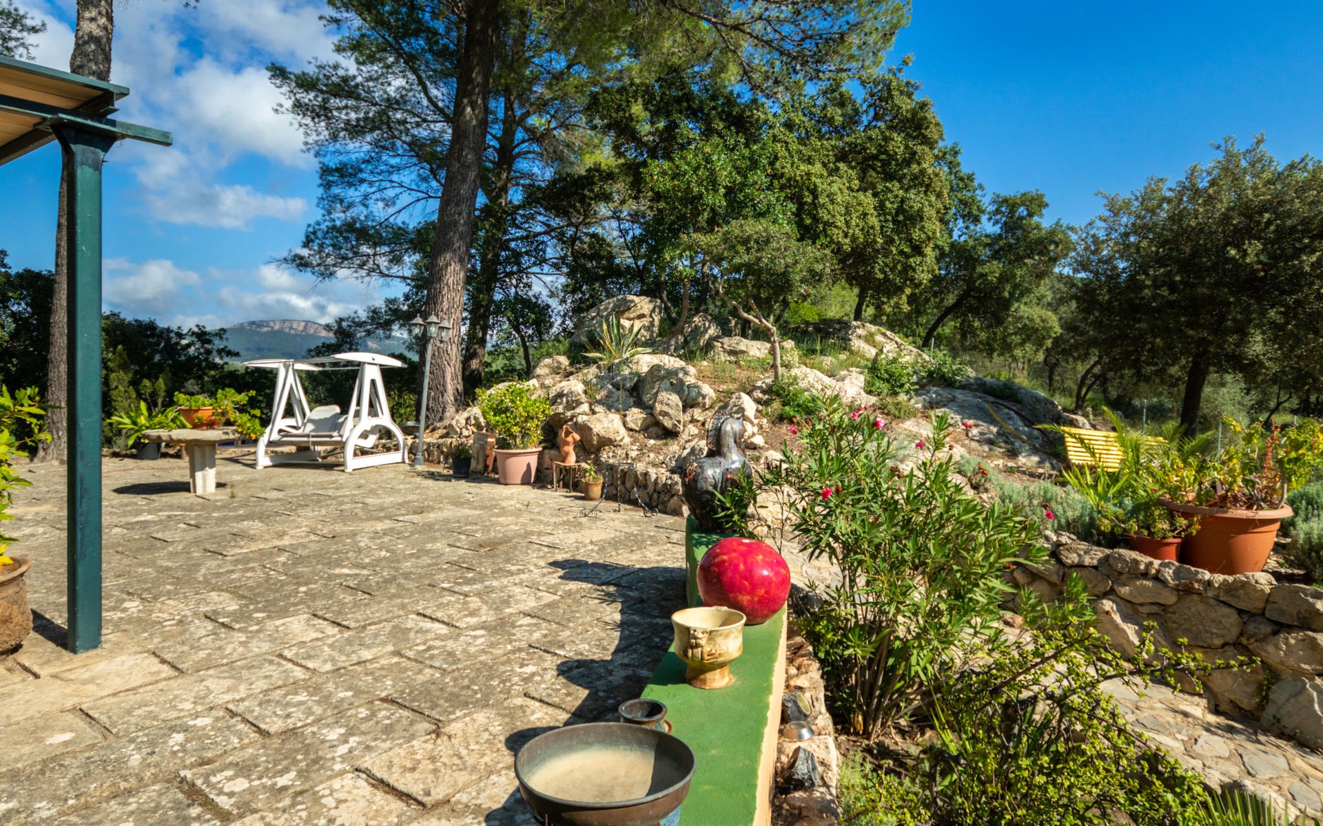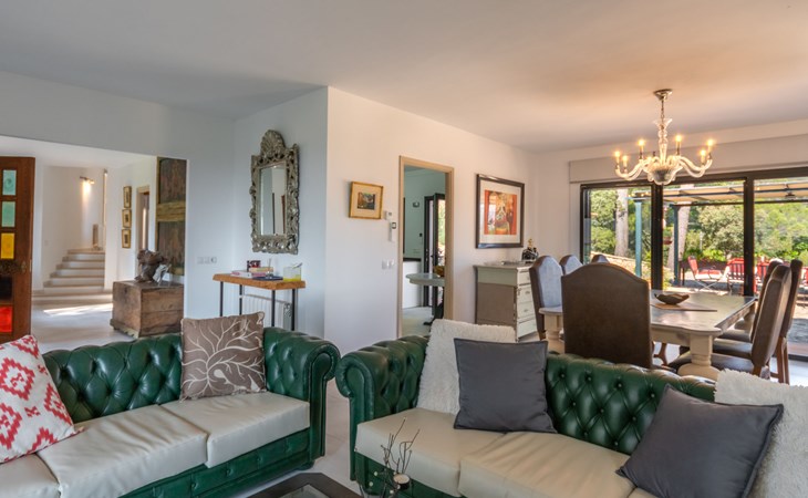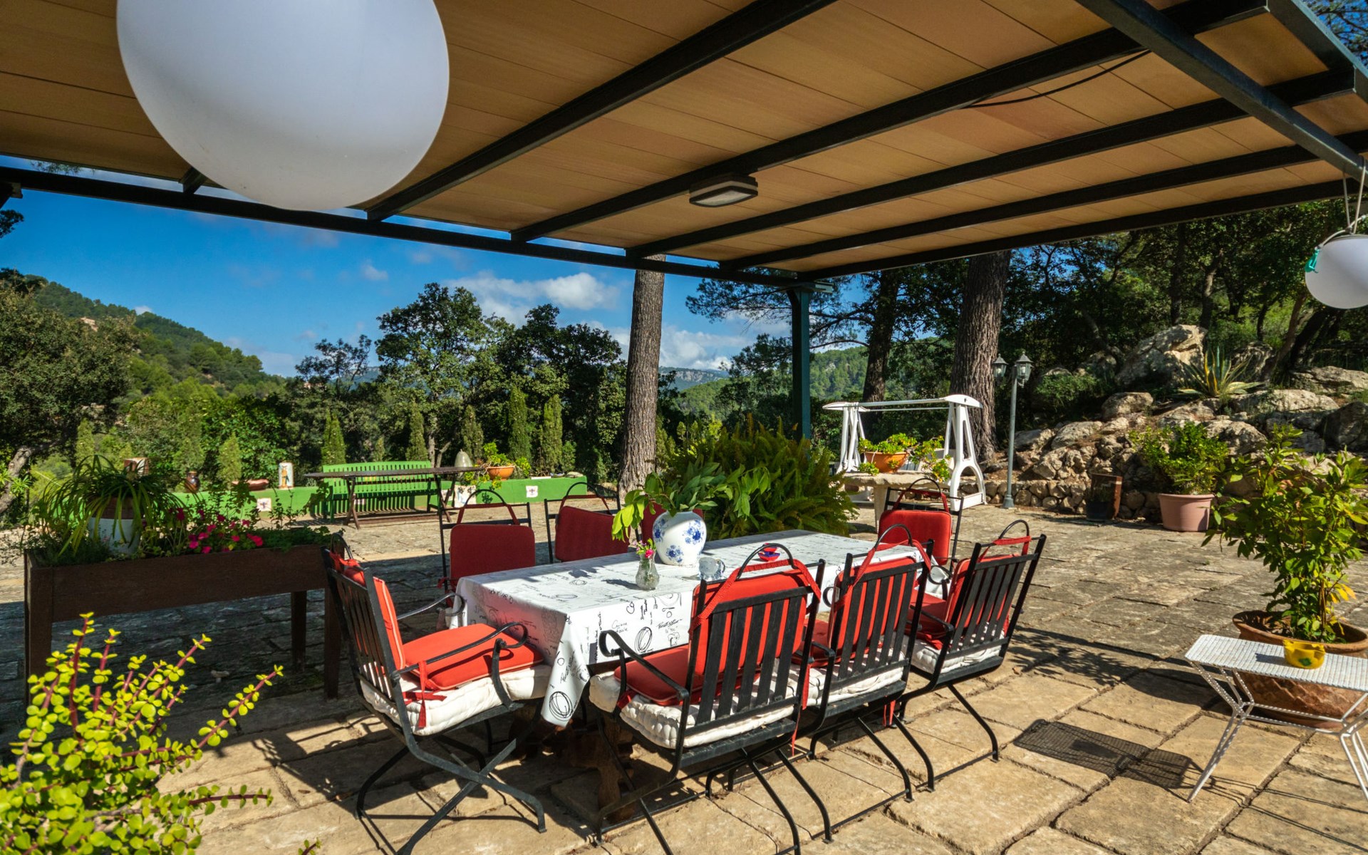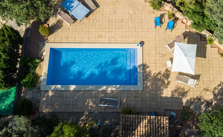Farm estate "Short des Verger", detached. Above Esporles 3.5 km from the centre of Esporles, 19 km from the centre of Valldemossa, 26 km from the centre of Palma, on a slope, 13 km from the sea. Private: property 15'000 m2, garden (not fenced) wildlife garden and trees, natural garden, swimming pool (10 x 4 m, seasonal availability: 01.Jan. - 31.Dec.) with salt-electrolysis pool-cleaning system. Outdoor shower, table tennis. In the house: central heating system, air conditioning. Parking on the premises. Shop 4.5 km, restaurant 4.5 km, bus stop "S'esgleita" 6 km, sandy beach "Playa de Palma" 28 km pebble beach "Port de's Canonge" 13 km. Hiking paths: Camà des Correu 4.5 km. Please note: car recommended.