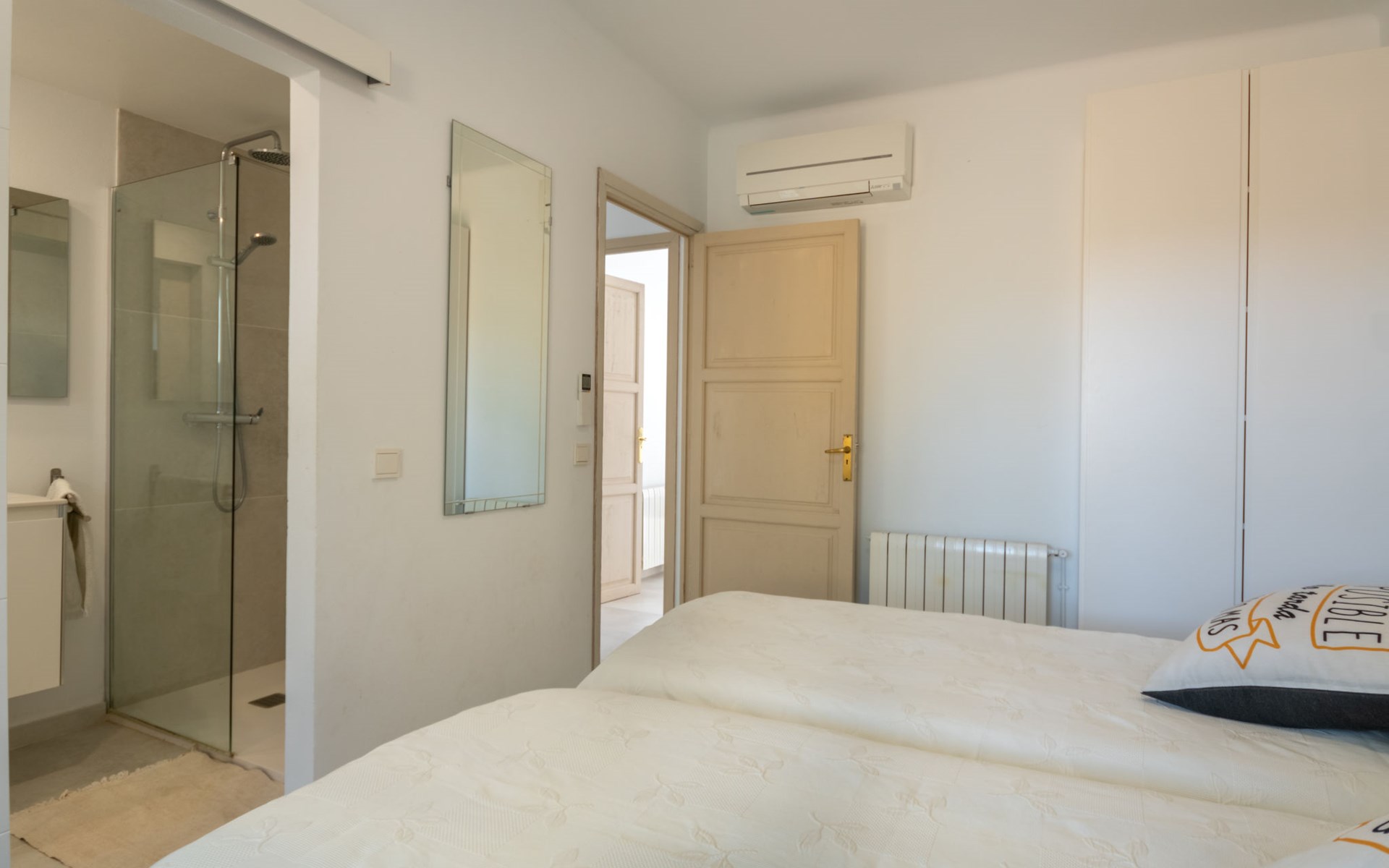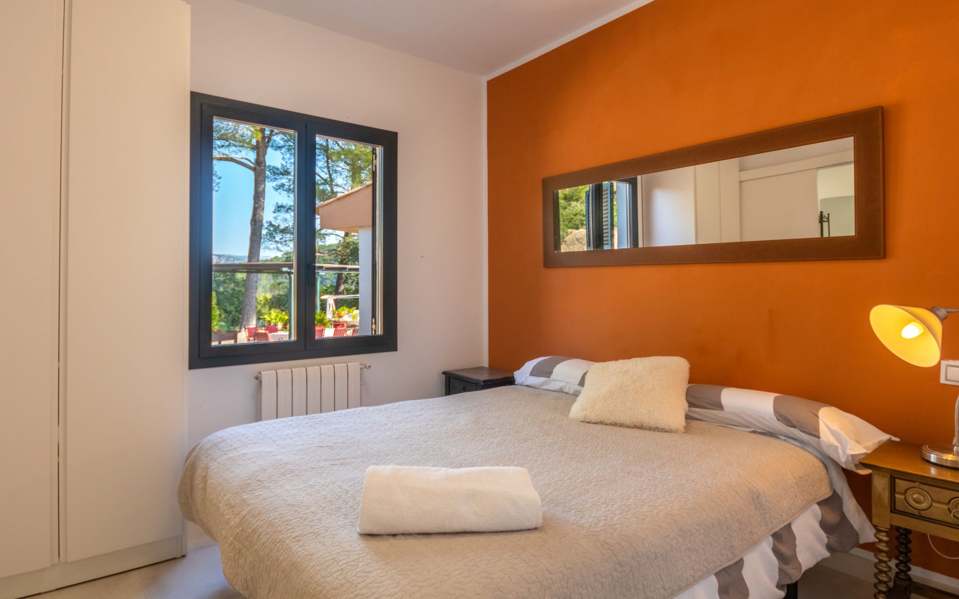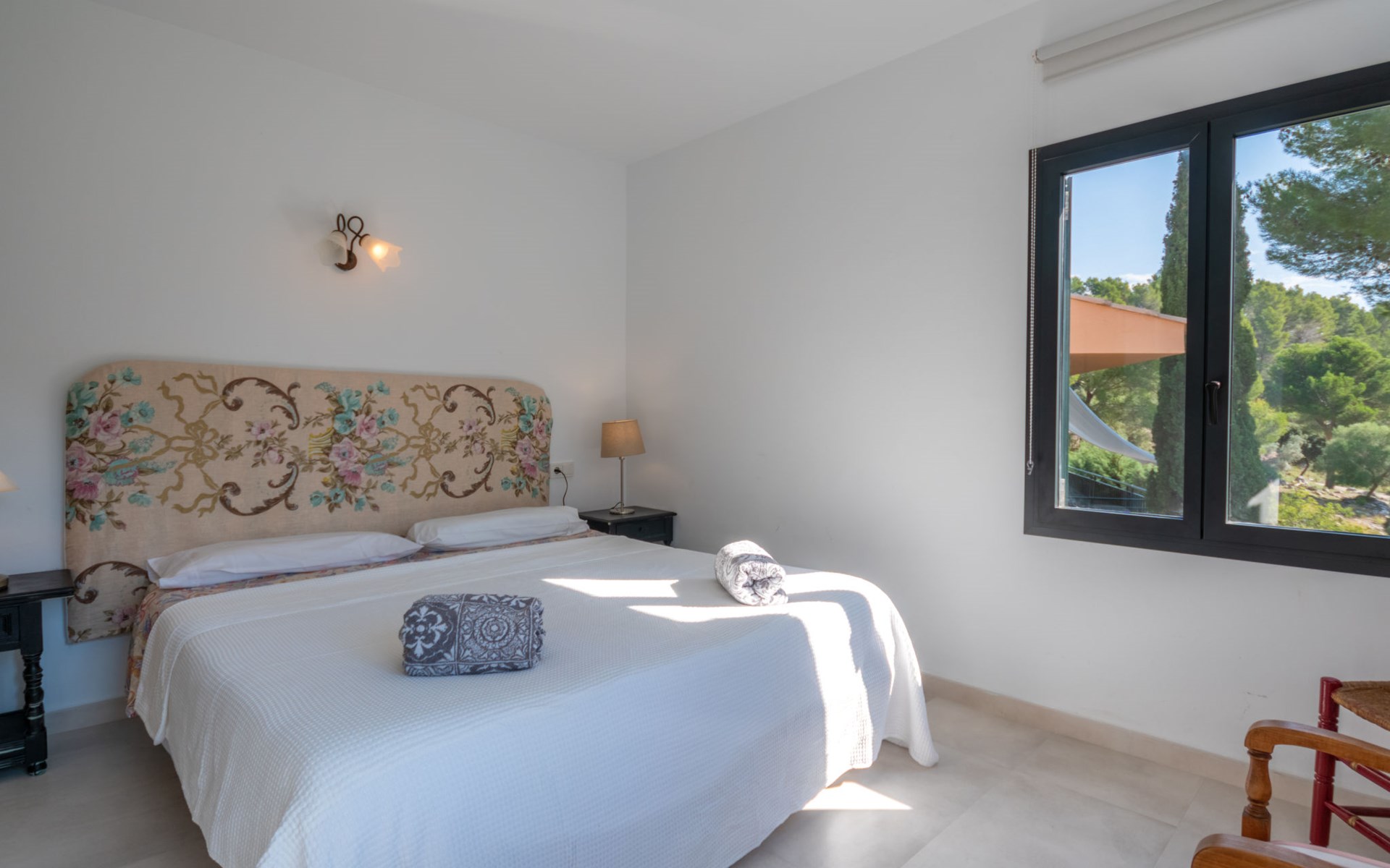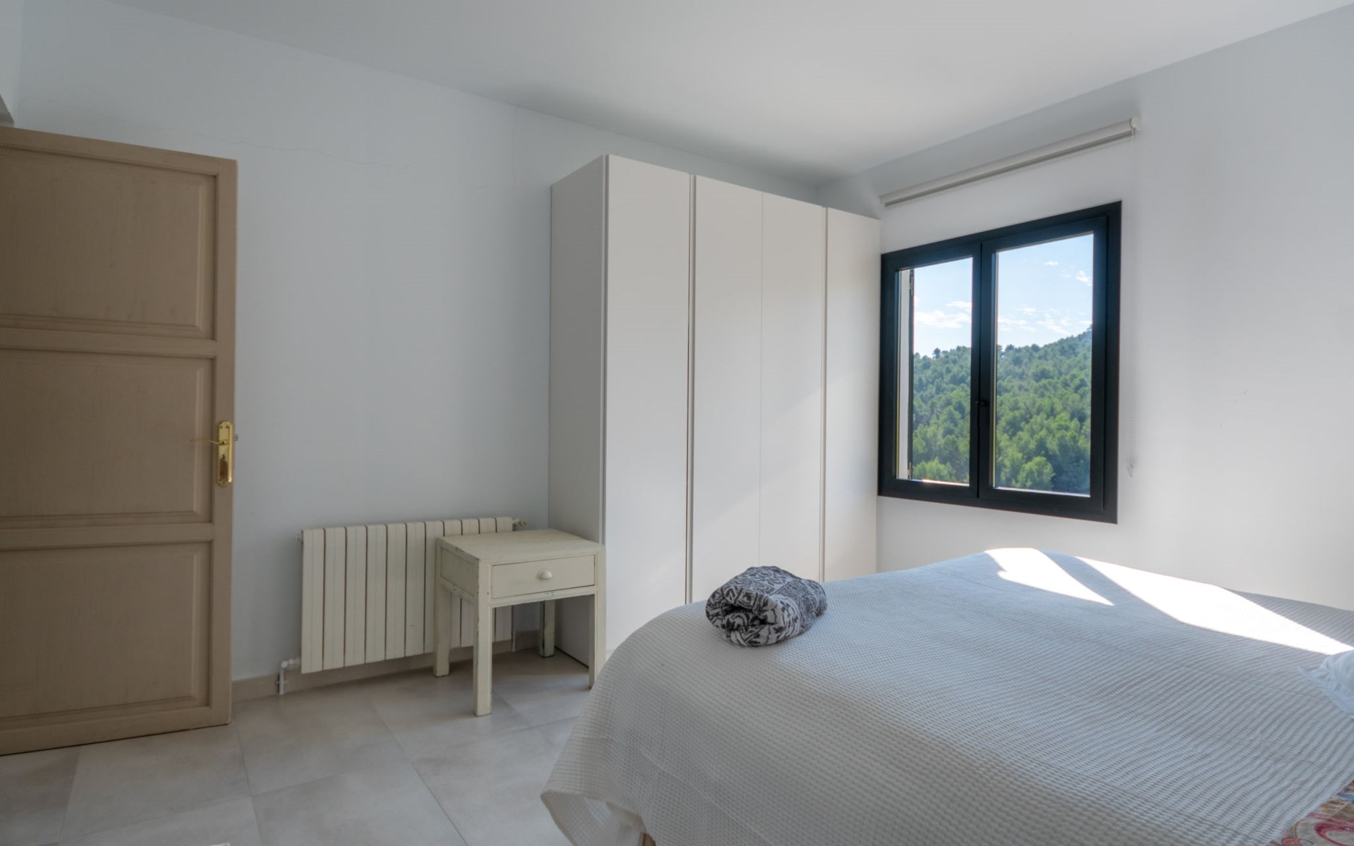 Farm estate "Short des Verger", detached. Above Esporles 3.5 km from the centre of Esporles, 19 km from the centre of Valldemossa, 26 km from the centre of Palma, on a slope, 13 km from the sea. Private: property 15'000 m2, garden (not fenced) wildlife garden and trees, natural garden, swimming pool (10 x 4 m, seasonal availability: 01.Jan. - 31.Dec.) with salt-electrolysis pool-cleaning system. Outdoor shower, table tennis. In the house: central heating system, air conditioning. Parking on the premises. Shop 4.5 km, restaurant 4.5 km, bus stop "S'esgleita" 6 km, sandy beach "Playa de Palma" 28 km pebble beach "Port de's Canonge" 13 km. Hiking paths: Camà des Correu 4.5 km. Please note: car recommended.