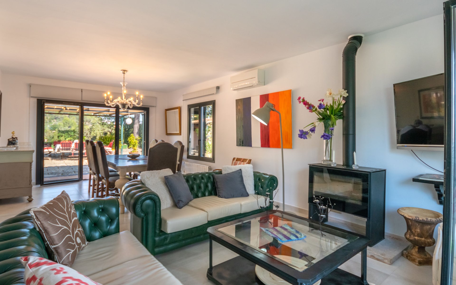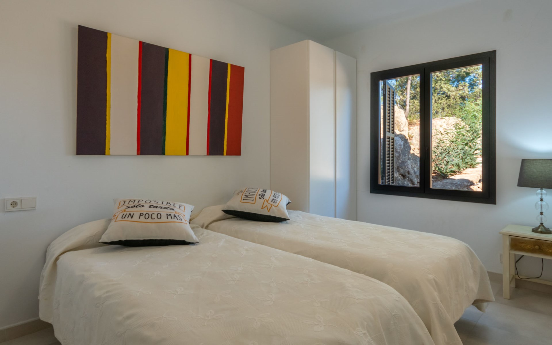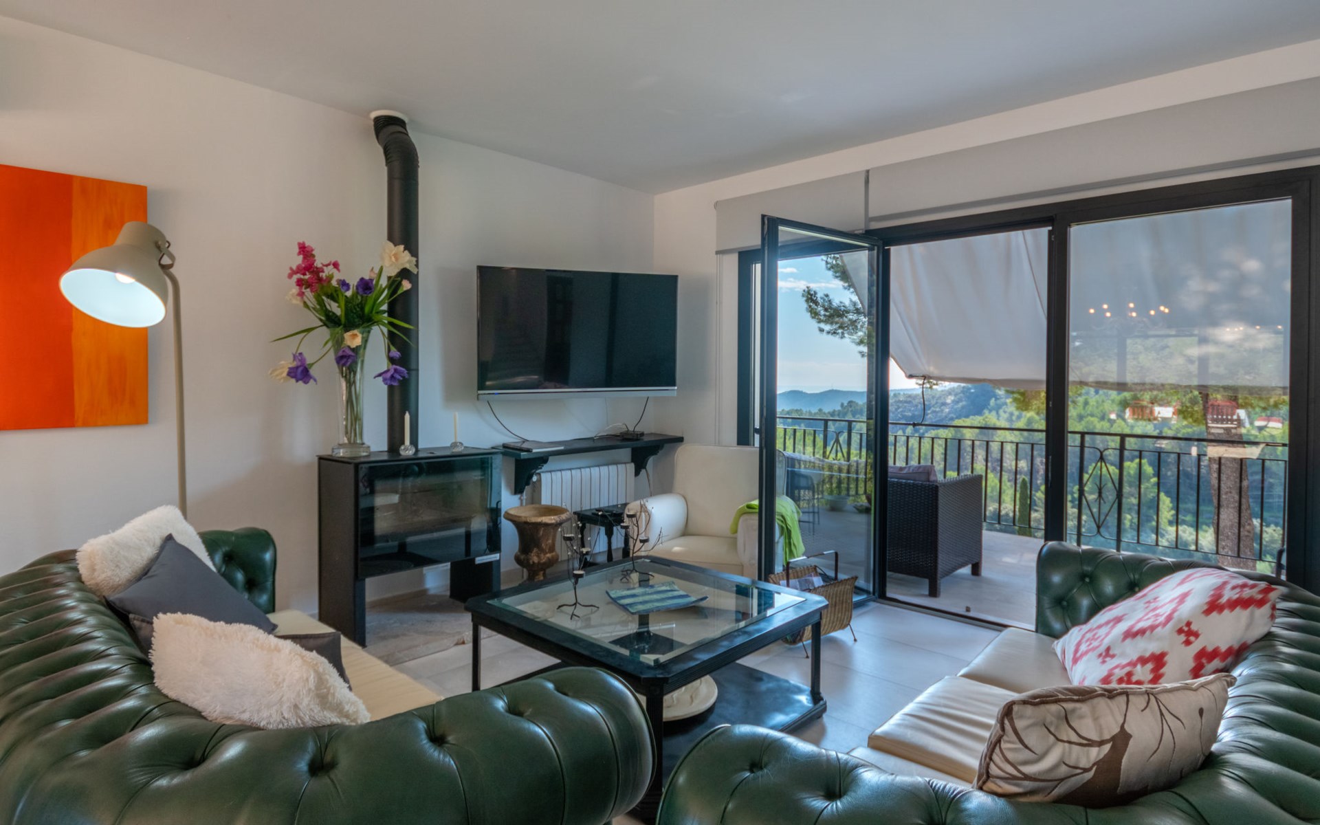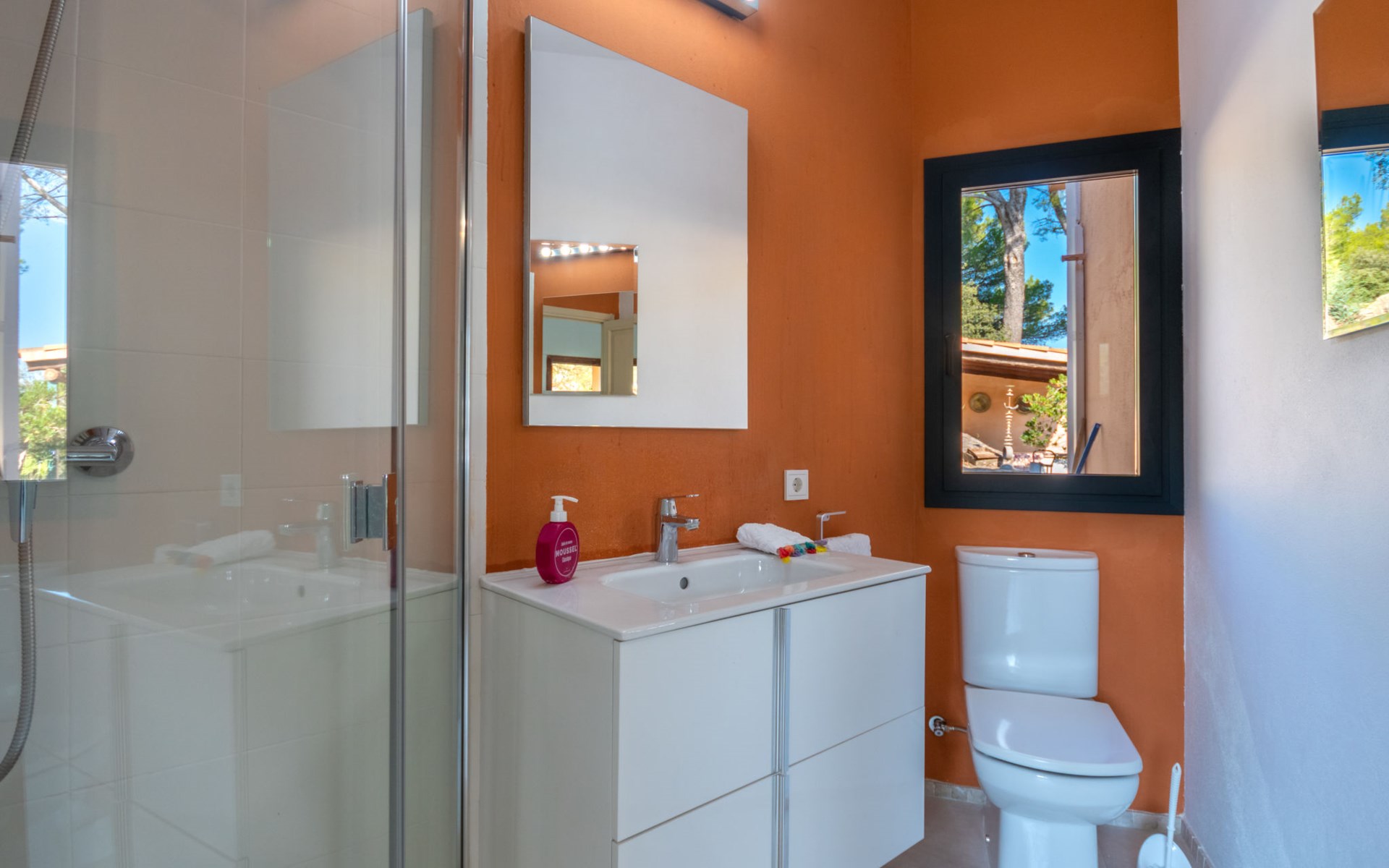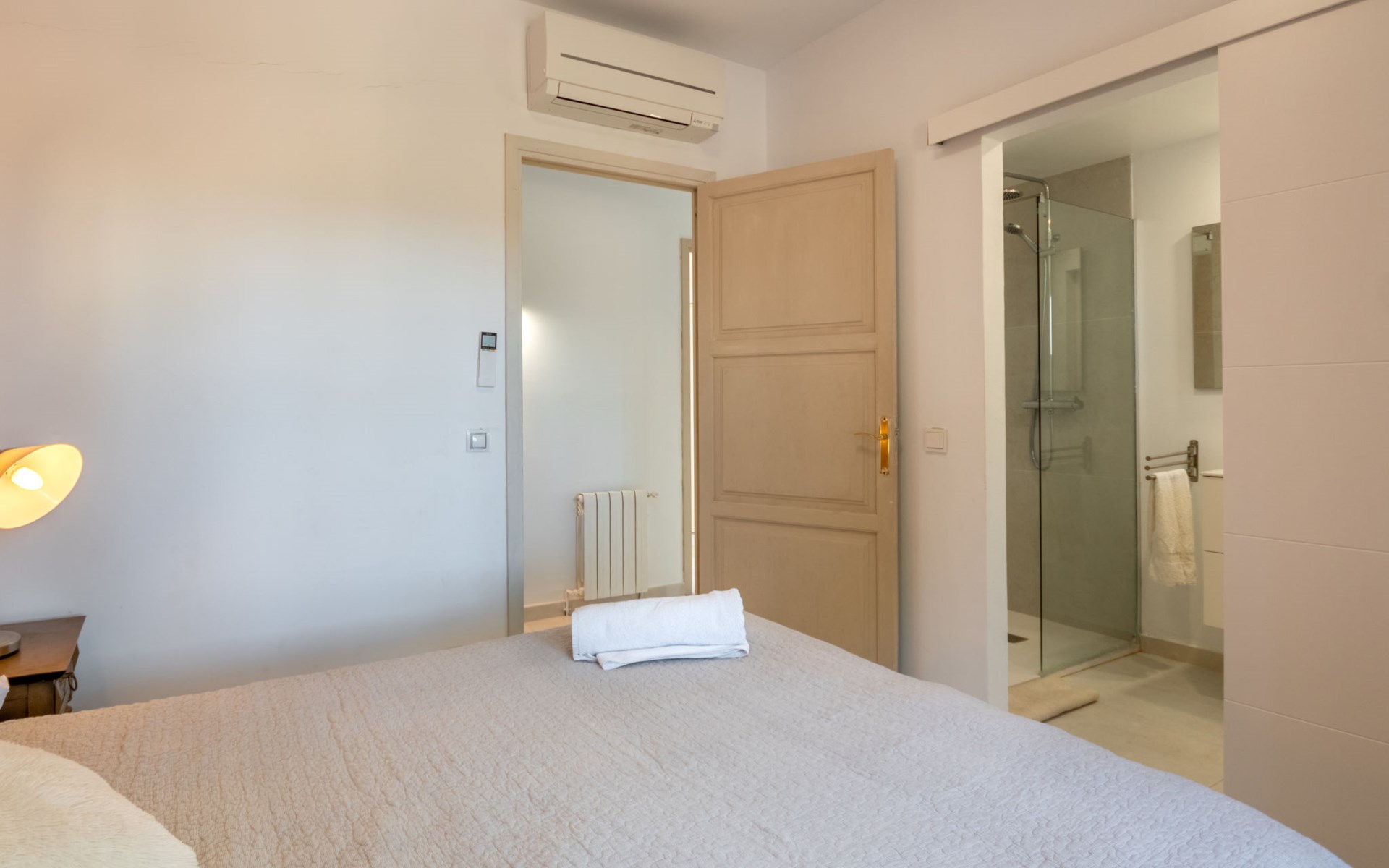 Farm estate "Short des Verger", detached. Above Esporles 3.5 km from the centre of Esporles, 19 km from the centre of Valldemossa, 26 km from the centre of Palma, on a slope, 13 km from the sea. Private: property 15'000 m2, garden (not fenced) wildlife garden and trees, natural garden, swimming pool (10 x 4 m, seasonal availability: 01.Jan. - 31.Dec.) with salt-electrolysis pool-cleaning system. Outdoor shower, table tennis. In the house: central heating system, air conditioning. Parking on the premises. Shop 4.5 km, restaurant 4.5 km, bus stop "S'esgleita" 6 km, sandy beach "Playa de Palma" 28 km pebble beach "Port de's Canonge" 13 km. Hiking paths: Camà des Correu 4.5 km. Please note: car recommended.