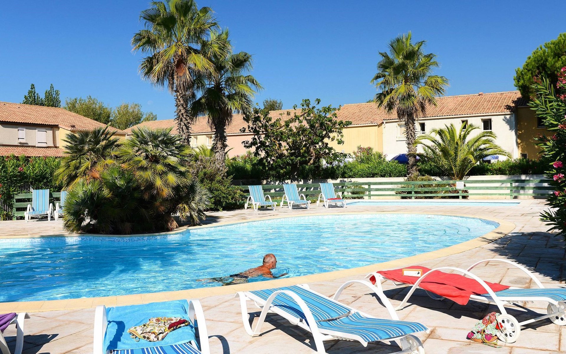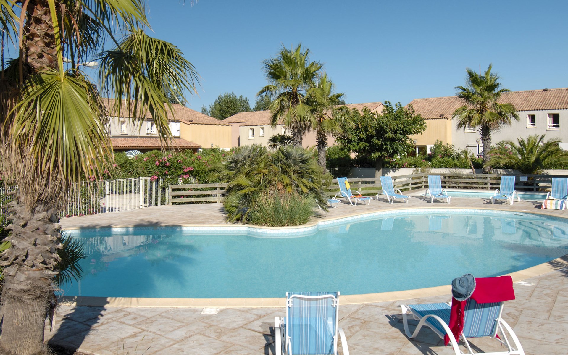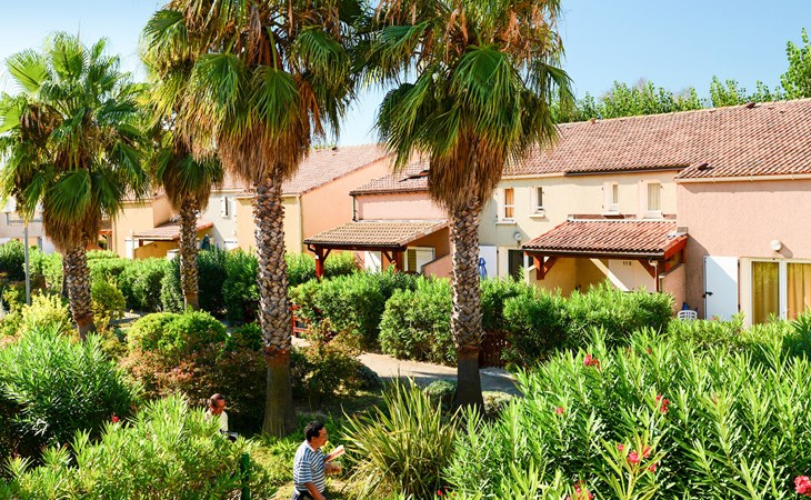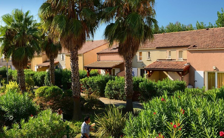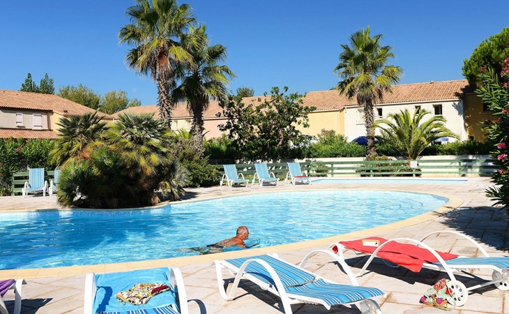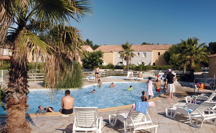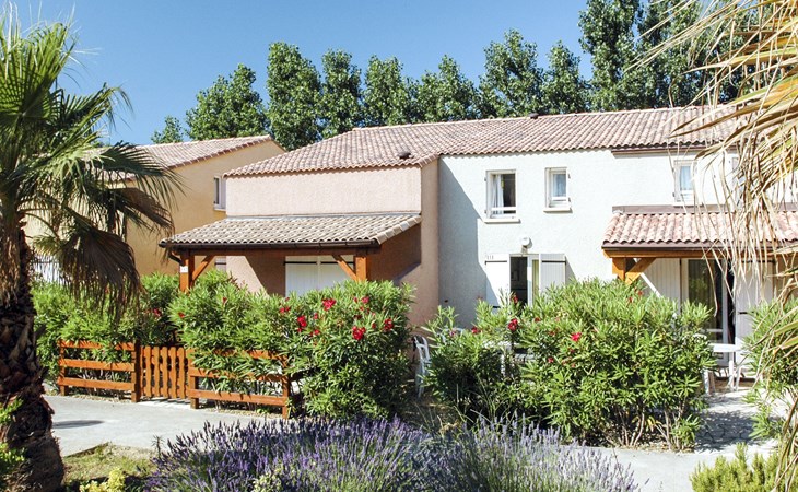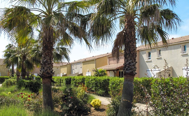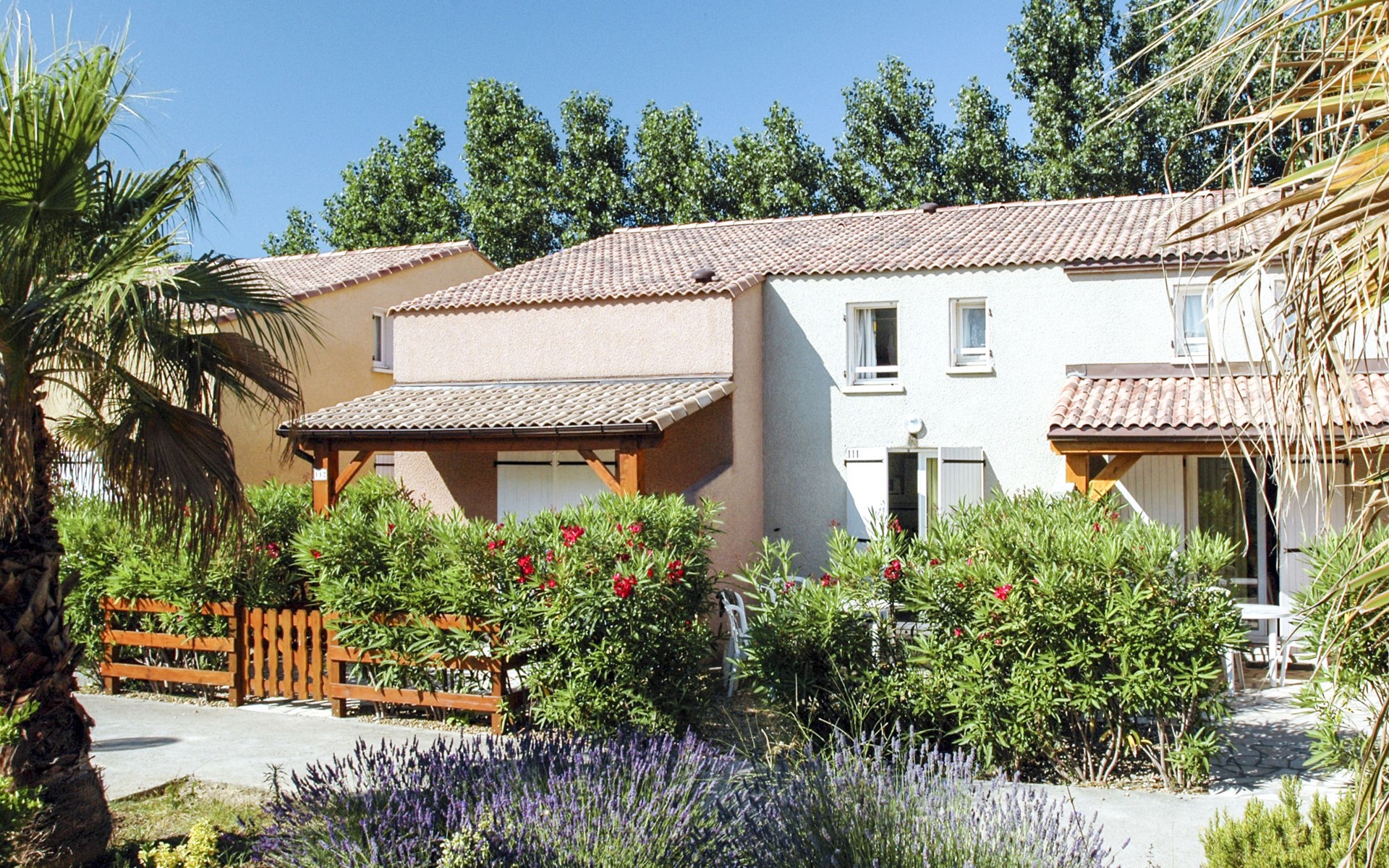 Resort "Le Grand Bleu". 140 houses in the resort. 4 km from the centre of Valras, 800 m from the sea. For shared use: property, beautiful garden with plants and flowers, swimming pool fenced (60 m2, seasonal availability: 15.Jun. - 15.Sep.). Children's pool. In the complex: reception, washing machine, tumble dryer (for shared use, extra). Parking on the premises. Bakery 50 m, sandy beach 800 m. The photo is just an example. The holiday properties may differ in living space, floorplan, equipment and furnishing.