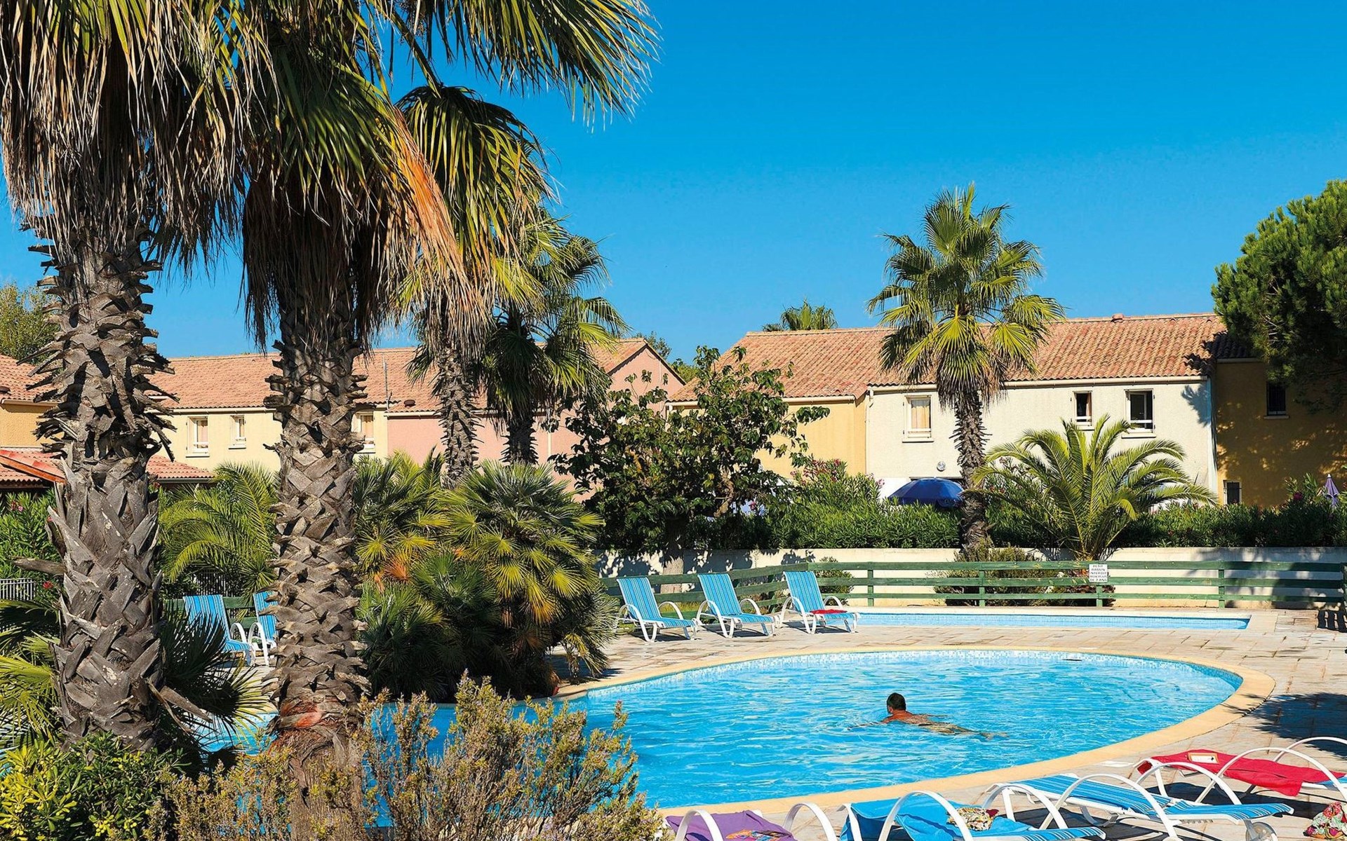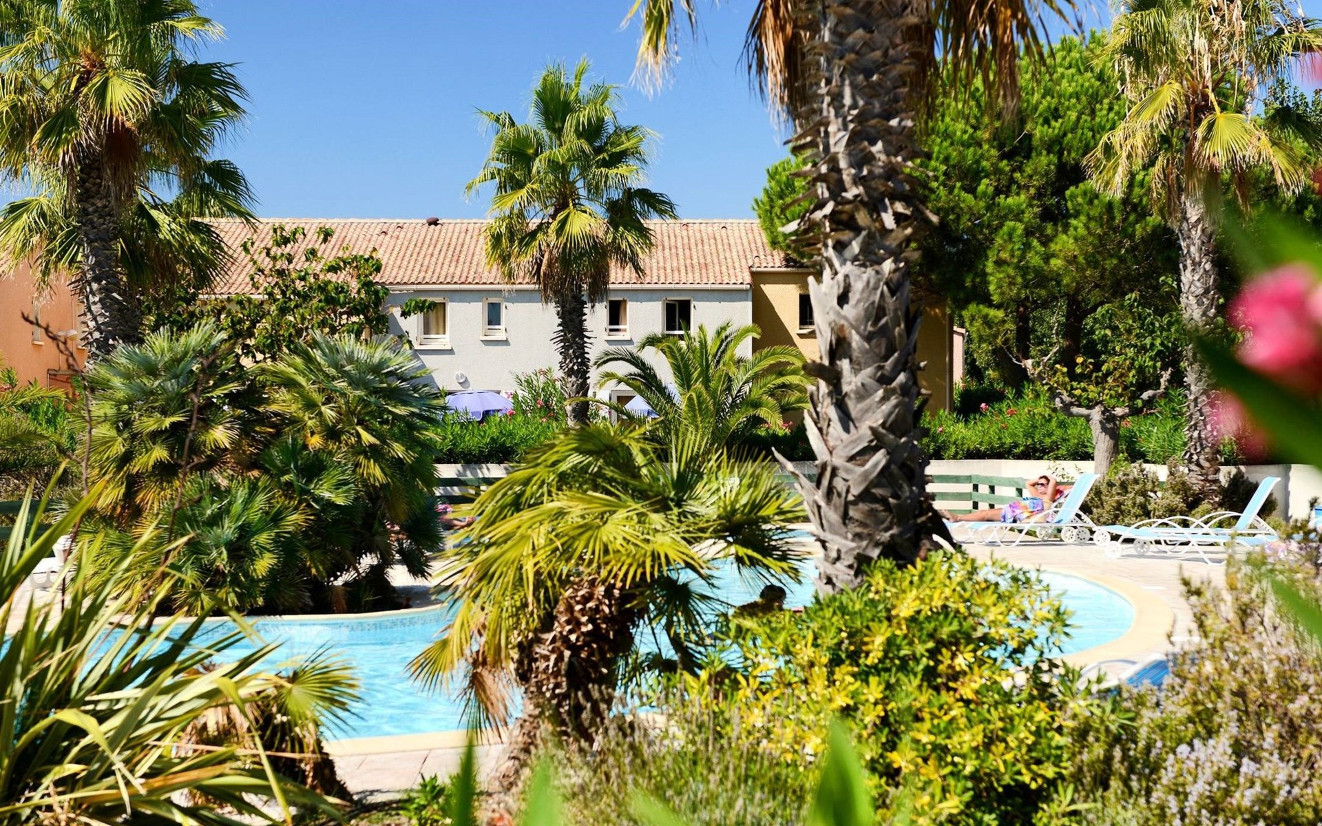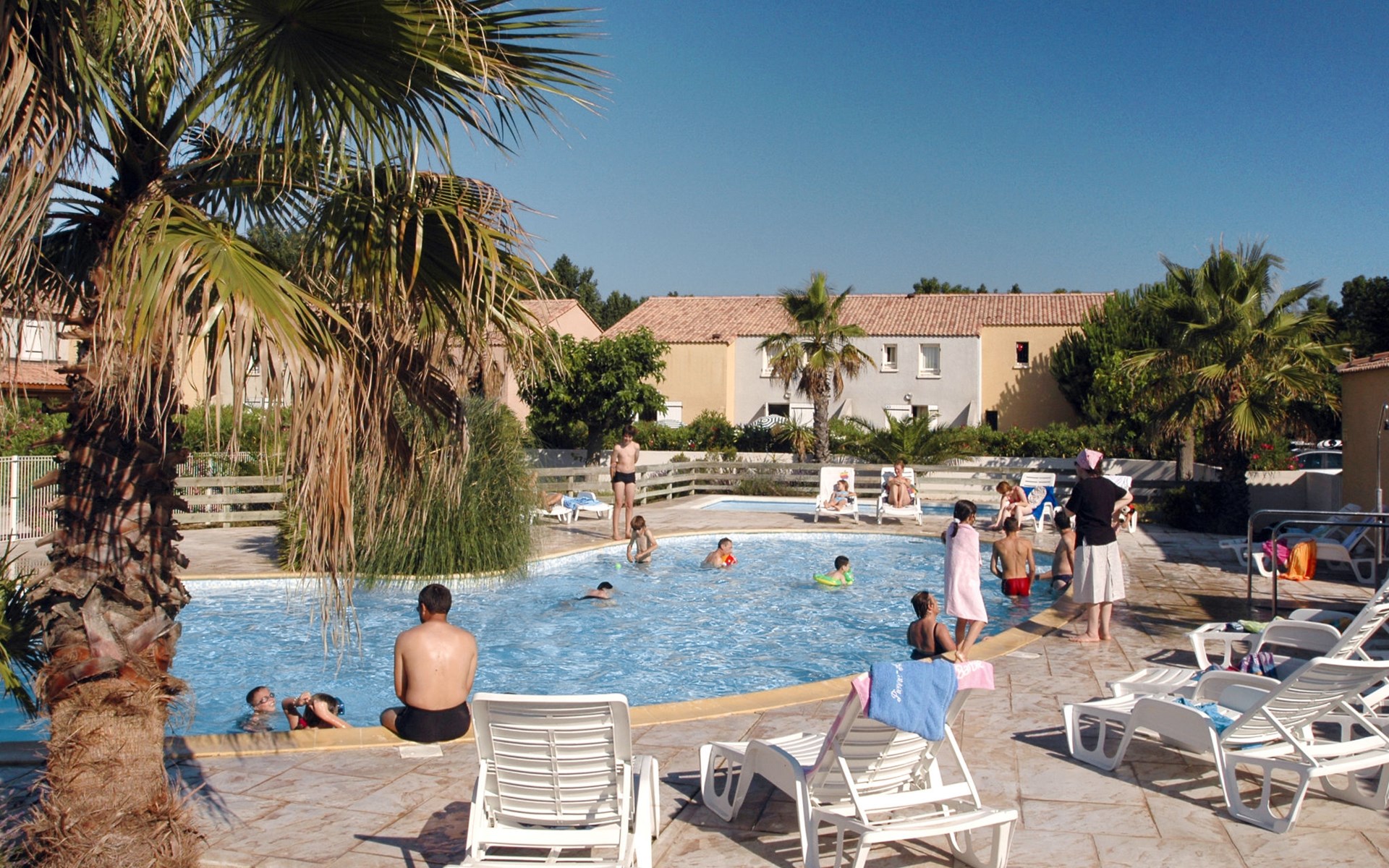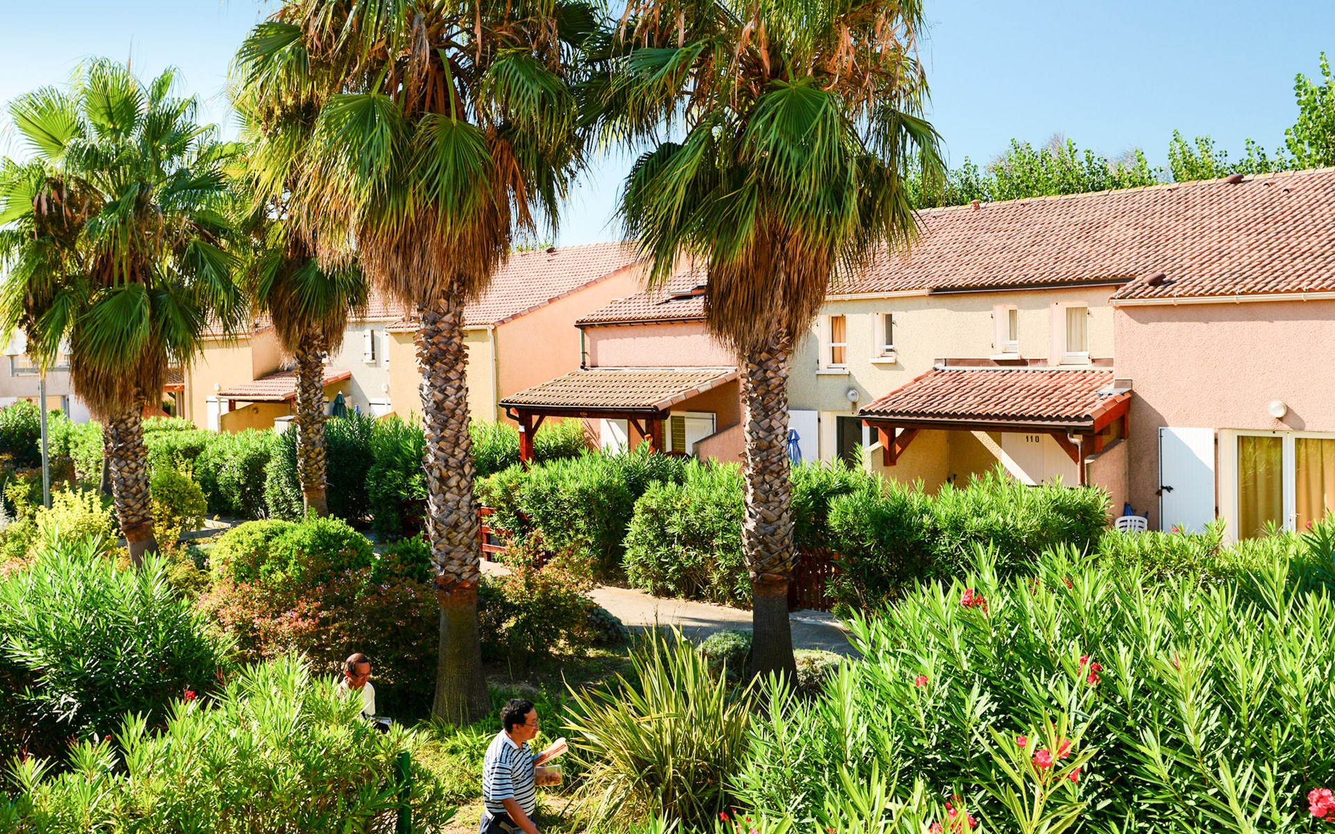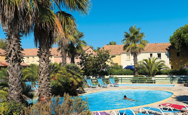 Resort "Le Grand Bleu". 140 houses in the resort. 4 km from the centre of Valras, 800 m from the sea. For shared use: property, beautiful garden with plants and flowers, swimming pool fenced (60 m2, seasonal availability: 15.Jun. - 15.Sep.). Children's pool. In the complex: reception, washing machine, tumble dryer (for shared use, extra). Parking on the premises. Bakery 50 m, sandy beach 800 m. The photo is just an example. The holiday properties may differ in living space, floorplan, equipment and furnishing.