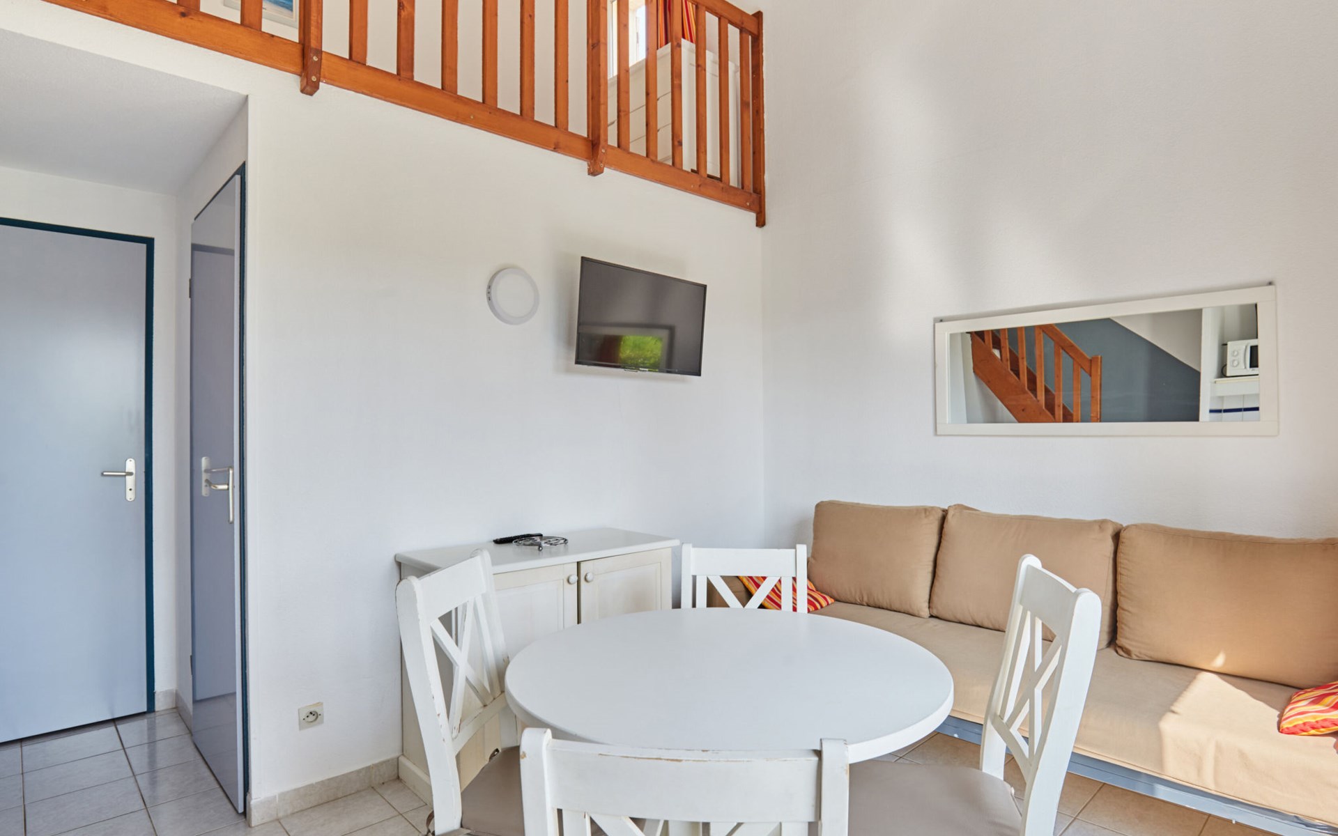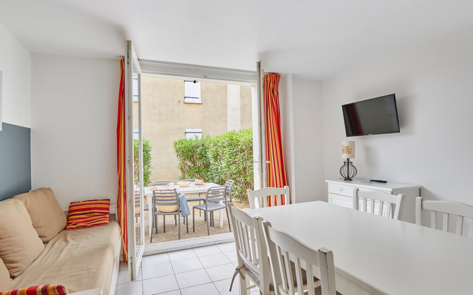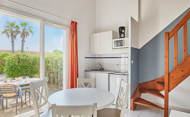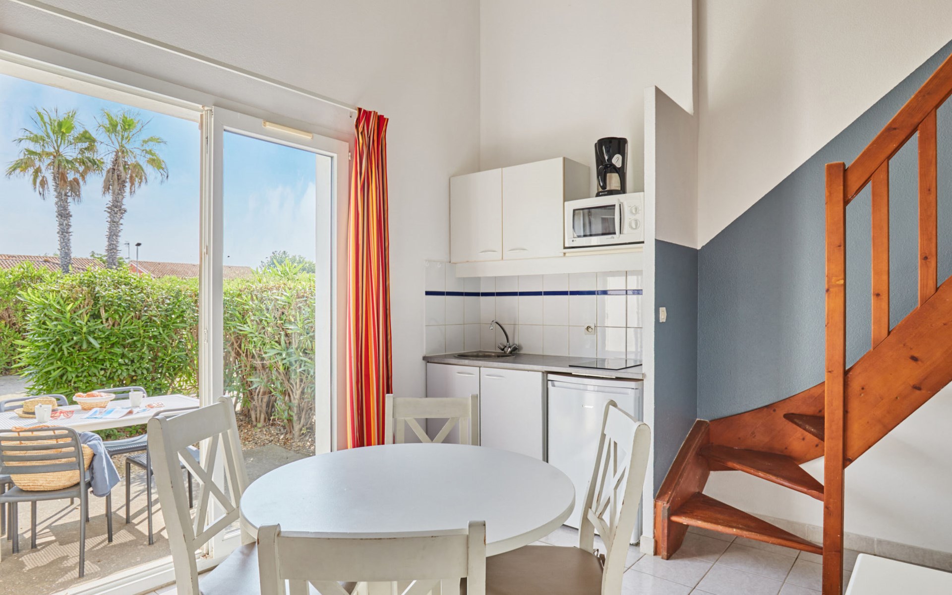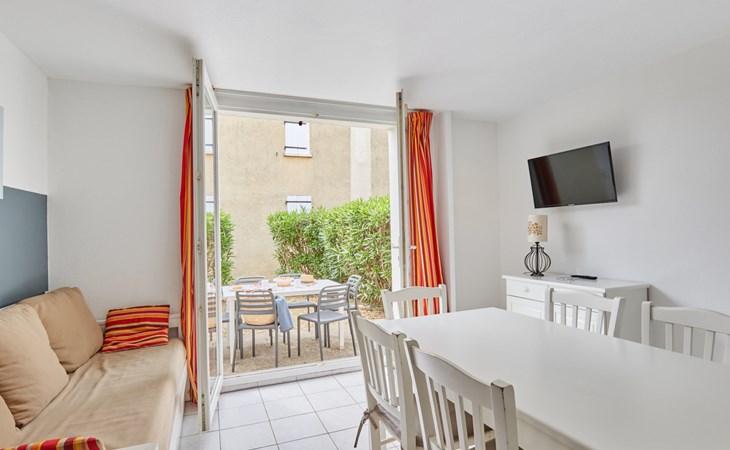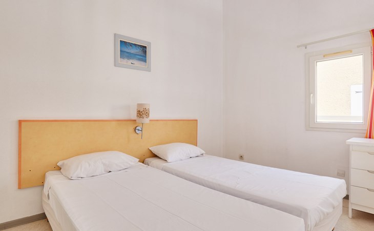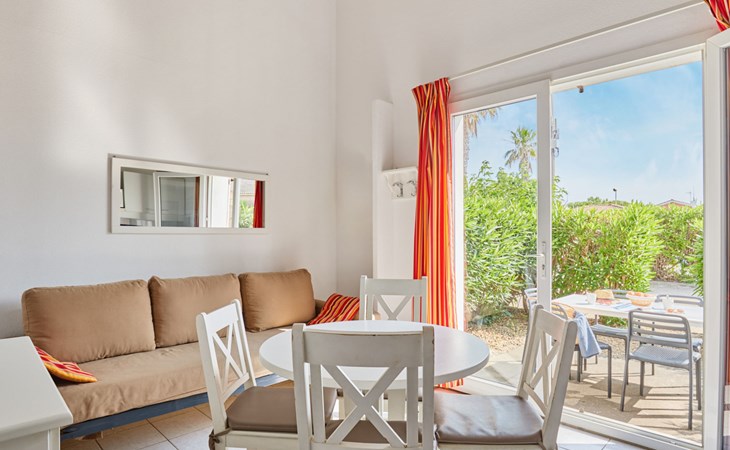 Resort "Le Grand Bleu". 140 houses in the resort. 4 km from the centre of Valras, 800 m from the sea. For shared use: property, beautiful garden with plants and flowers, swimming pool fenced (60 m2, seasonal availability: 15.Jun. - 15.Sep.). Children's pool. In the complex: reception, washing machine, tumble dryer (for shared use, extra). Parking on the premises. Bakery 50 m, sandy beach 800 m. The photo is just an example. The holiday properties may differ in living space, floorplan, equipment and furnishing.