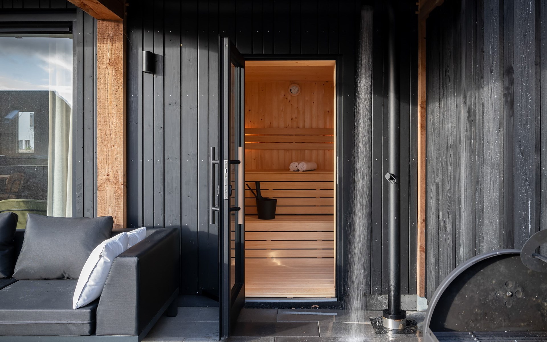 From the lounge, patio doors open onto the furnished patio, which is a great place to dine. In the spacious garden, you can also enjoy your private wellness with a hot tub, sauna and outdoor shower.