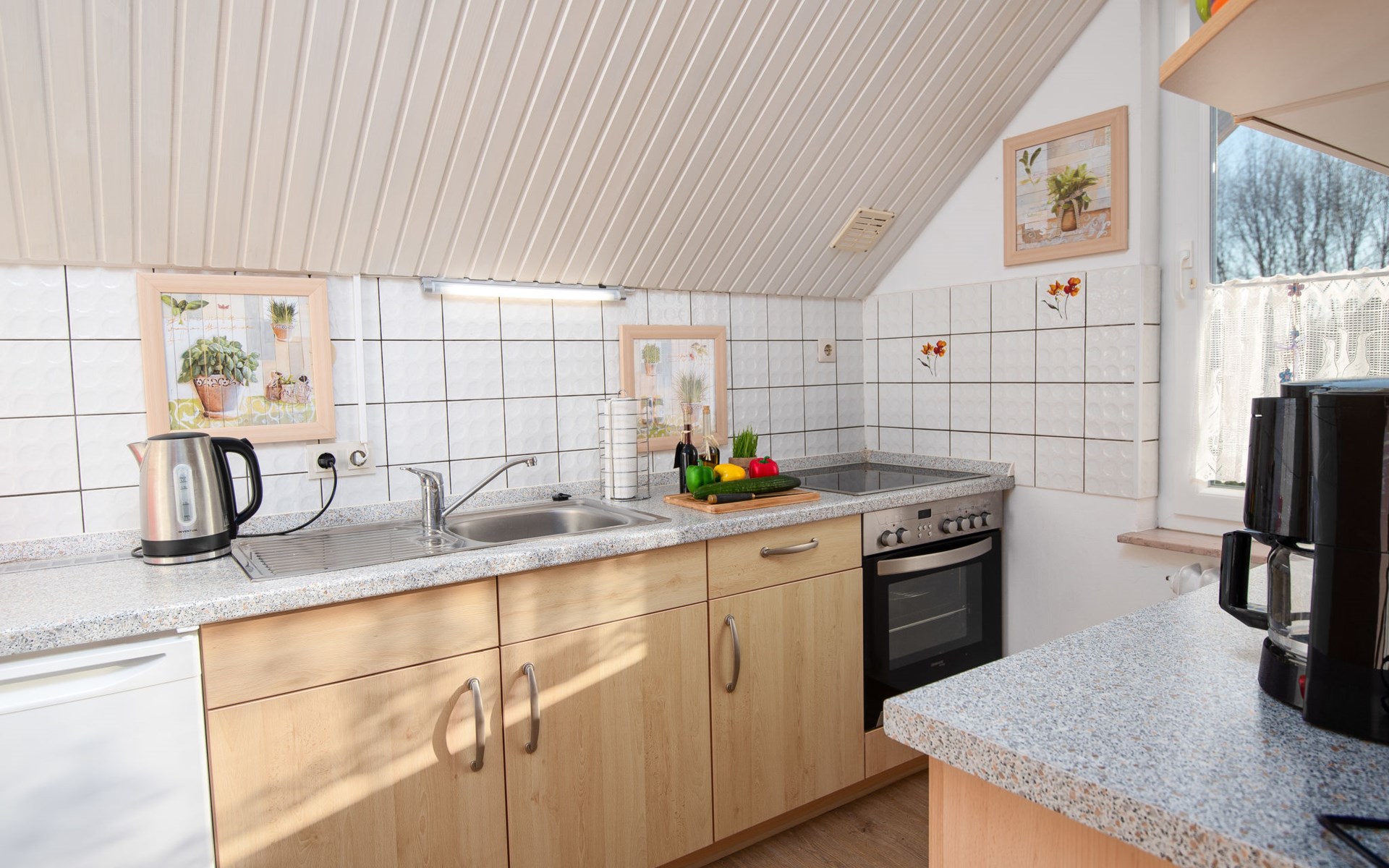 Apartment house "Knurrhahn". In the resort, 1.2 km from the sea, 1.2 km from the beach, in a cul-de-sac. In the house: central heating system. Parking at the house. Supermarket 800 m, restaurant 750 m, bakery 800 m, railway station 1.7 km, ferry 1.7 km, sandy beach 1.2 km, outdoor swimming pool 13 km, indoor swimming pool 850 m. Golf course (18 hole) 8 km, surf school 1.2 km, tennis 1.7 km.