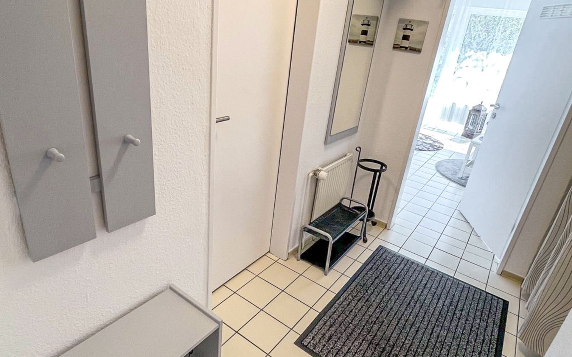 Apartment house "Muschelweg". In a quiet position, 500 m from the sea, 900 m from the beach. In the house: storage room for bicycles, central heating system. Parking at the house. Supermarket 1.6 km, restaurant 100 m, bakery 300 m, café 300 m, bus stop 250 m, railway station 2 km, ferry 2 km, sandy beach 900 m, outdoor swimming pool 14 km, indoor swimming pool 450 m. Golf course (18 hole) 8 km, surf school 900 m, tennis 2.5 km. Children's play house, 250 m.
