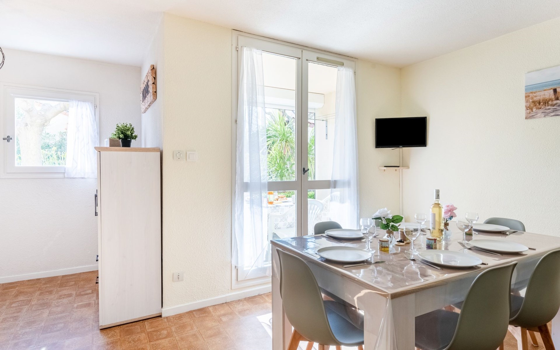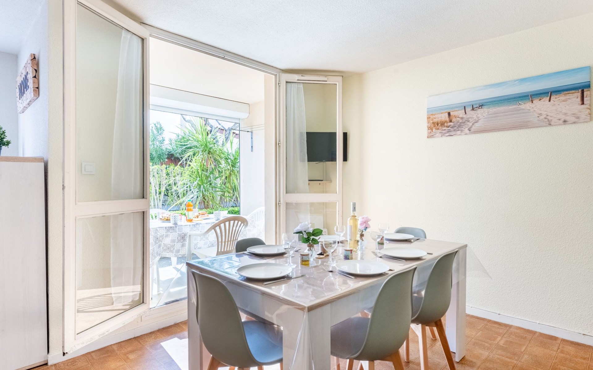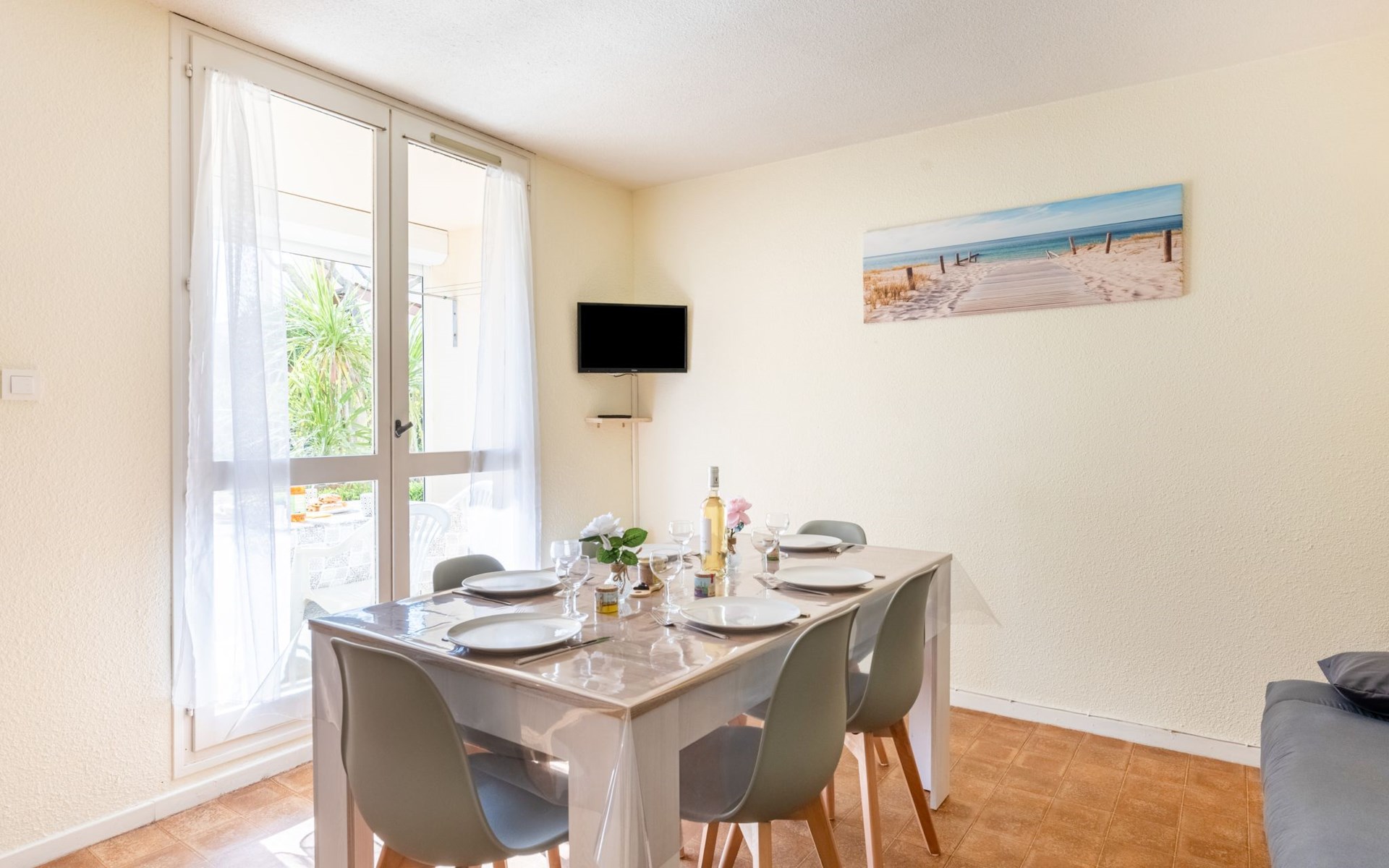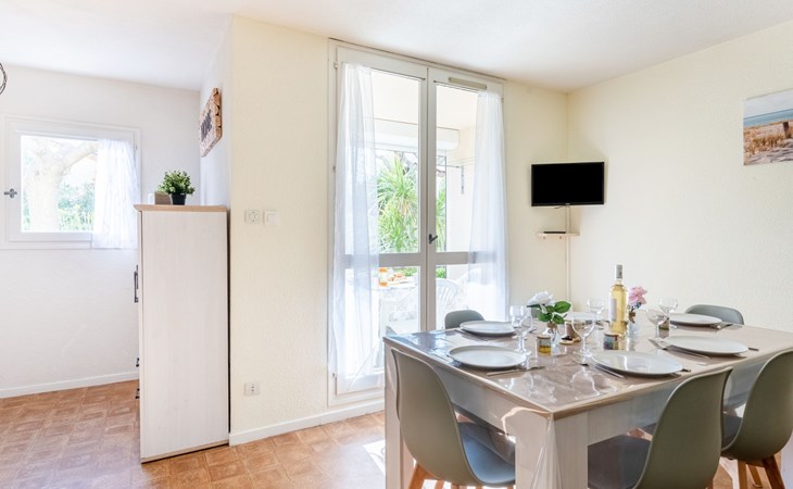 Residence "Les Sables d'Or", 4 storeys. In the district of le Palais de la Mer, 650 m from the sea, 600 m from the beach. Parking. Shop 2 km, grocery 150 m, supermarket 2 km, shopping centre 150 m, restaurant 150 m, 20 minute walk to the centre, sandy beach "Plage nord" 600 m, outdoor swimming pool 1 km, thermal baths "Thalazur Port Camargue" 3 km. Sports harbour 1.5 km, sailing school 1.5 km, minigolf 500 m, children's playground 500 m. Nearby attractions: Seacquarium 500 m, Casino Flamingo, Arènes Grau du Roi 1 km, Aigues Mortes 6 km, La Grande Motte 12 km, Nîmes 52 km. Hiking paths: Réserve Naturelle de Camargue. Please note: no lift. The keys‘ handover takes place by the agency Interhome in Port Camargue. Nightclub/disco 500 m from the property. Airfield 24 km from the property. Additional accommodations can be booked. Luna-park ( open 01/07 - 31/08) 600 m.