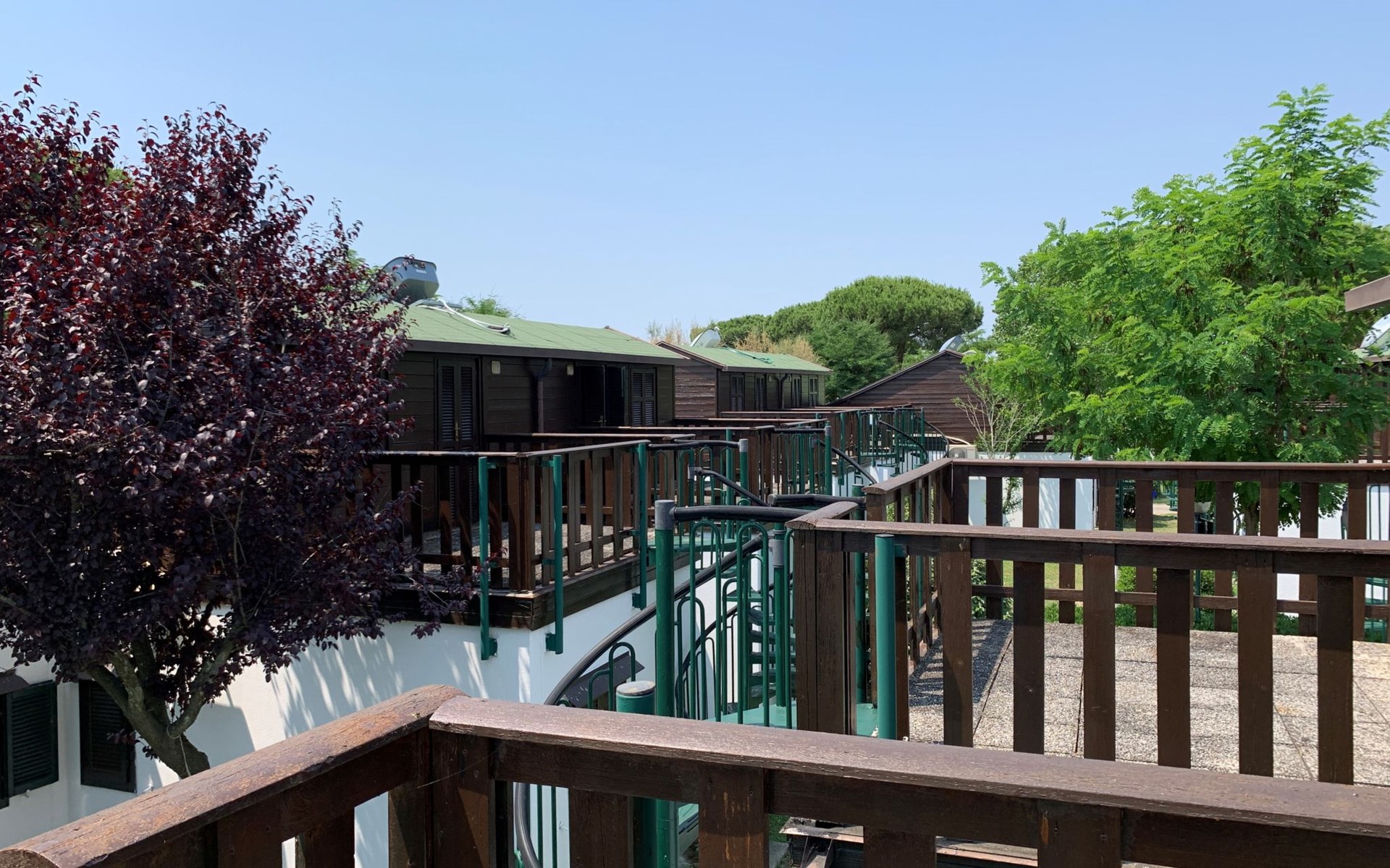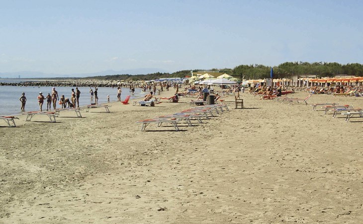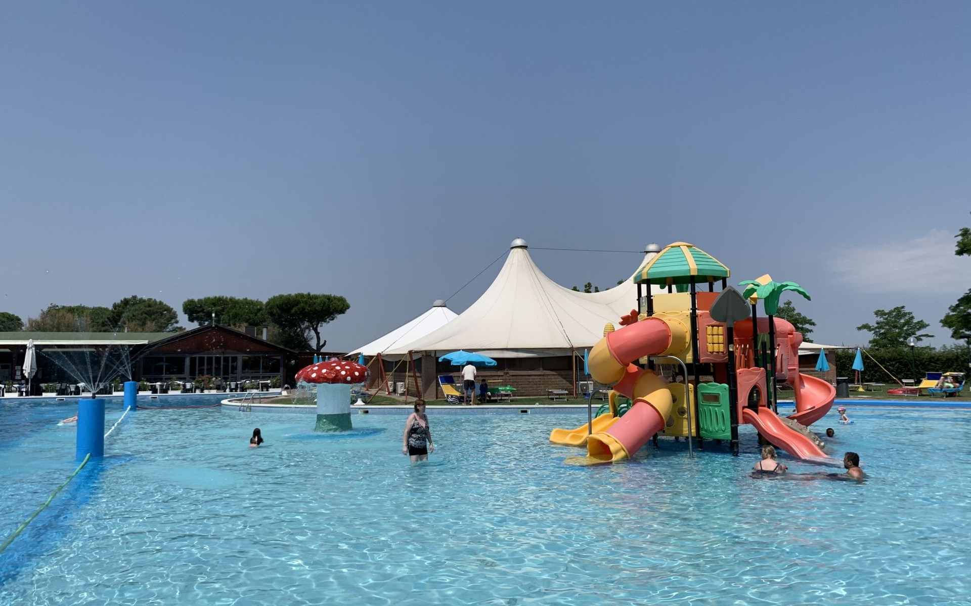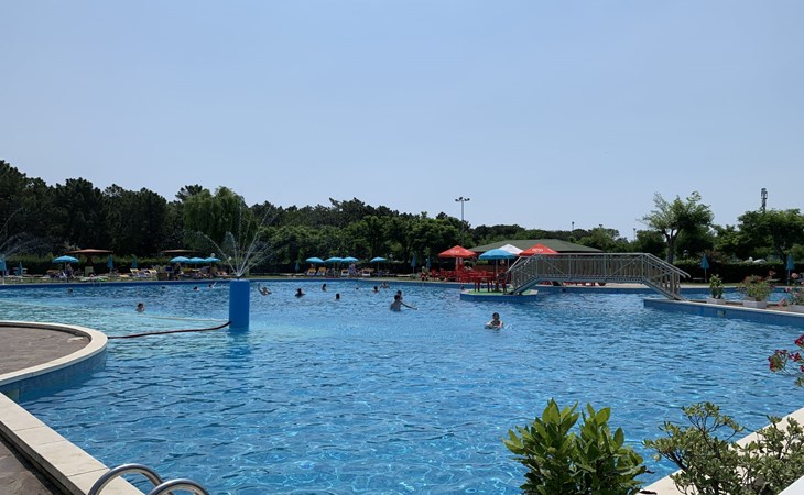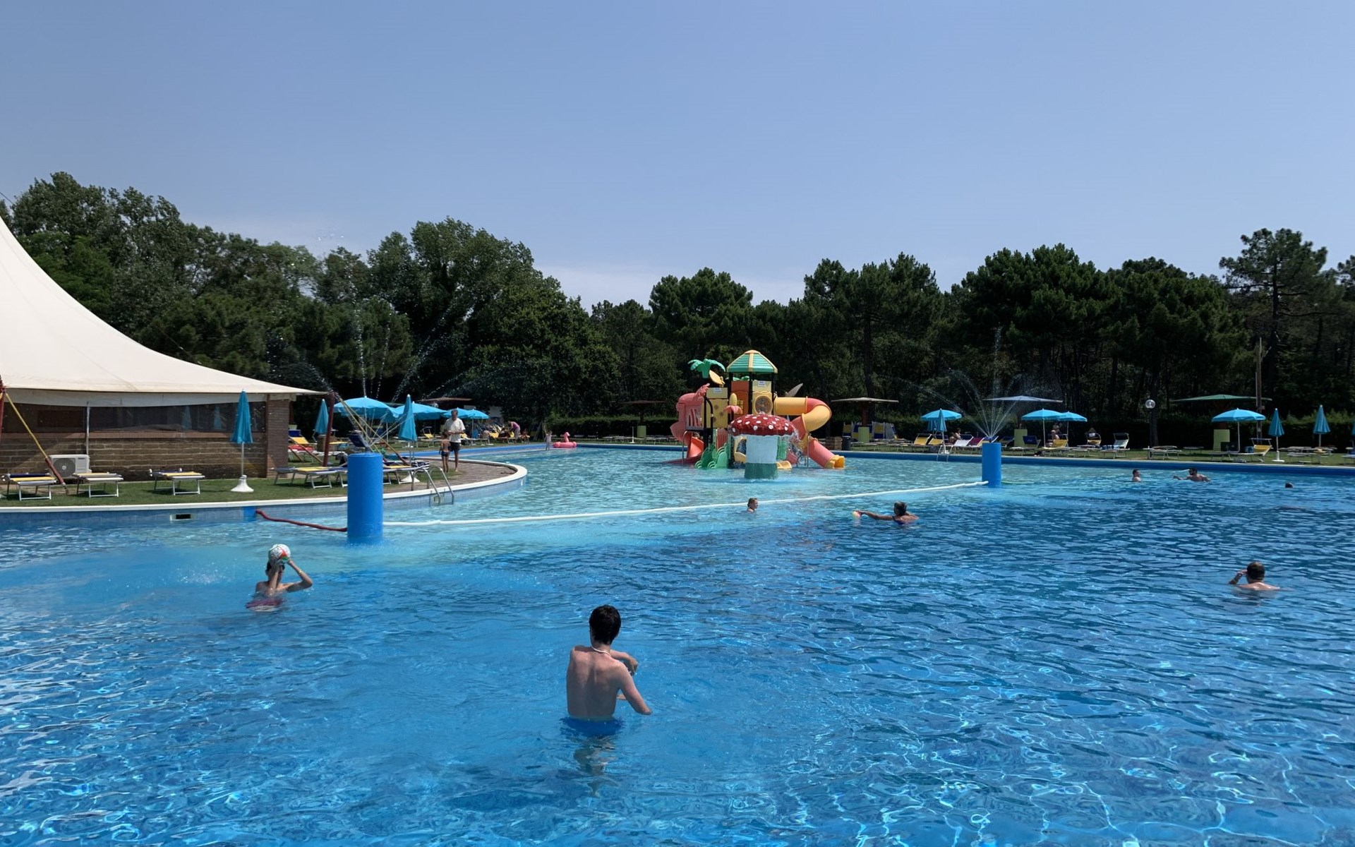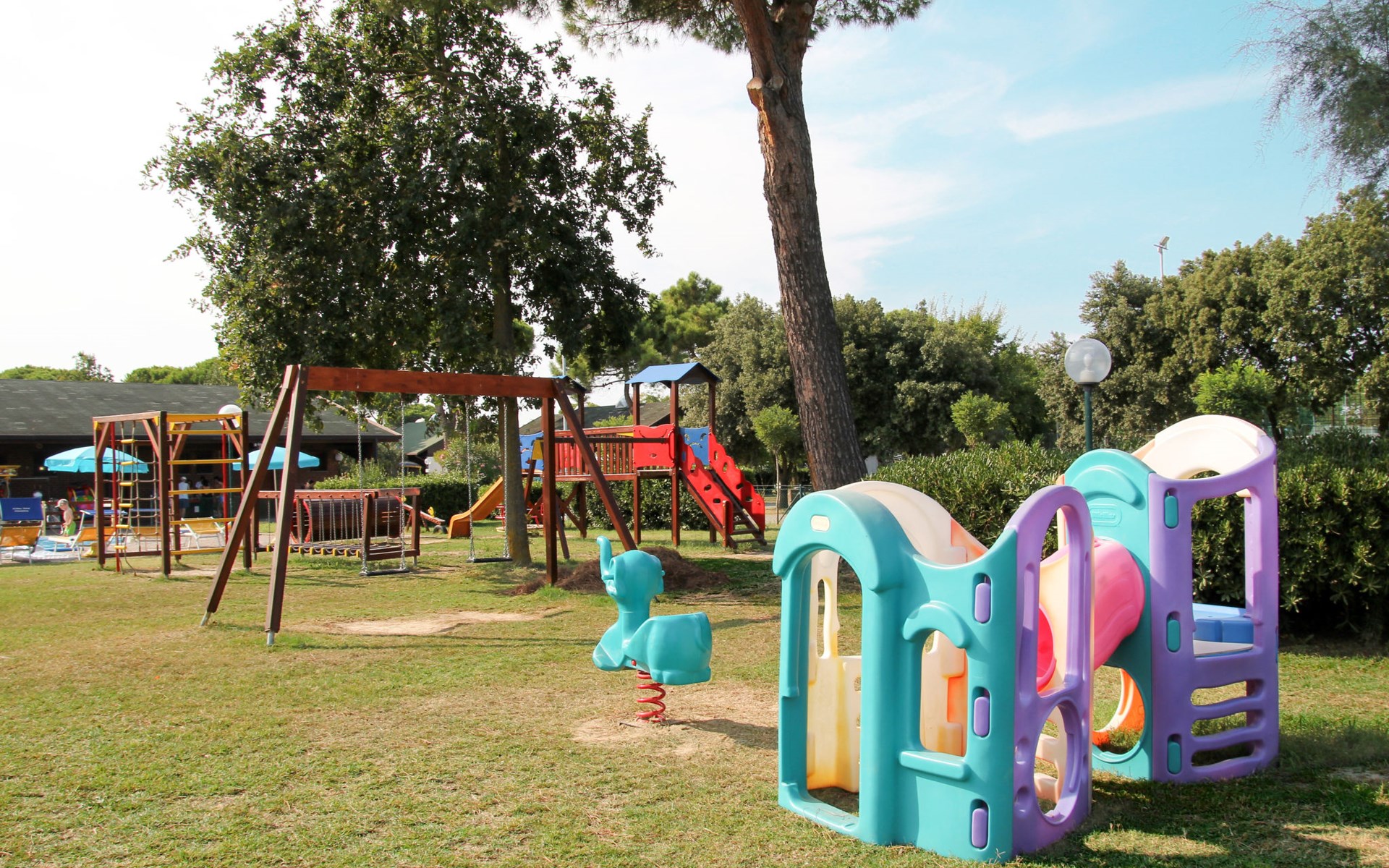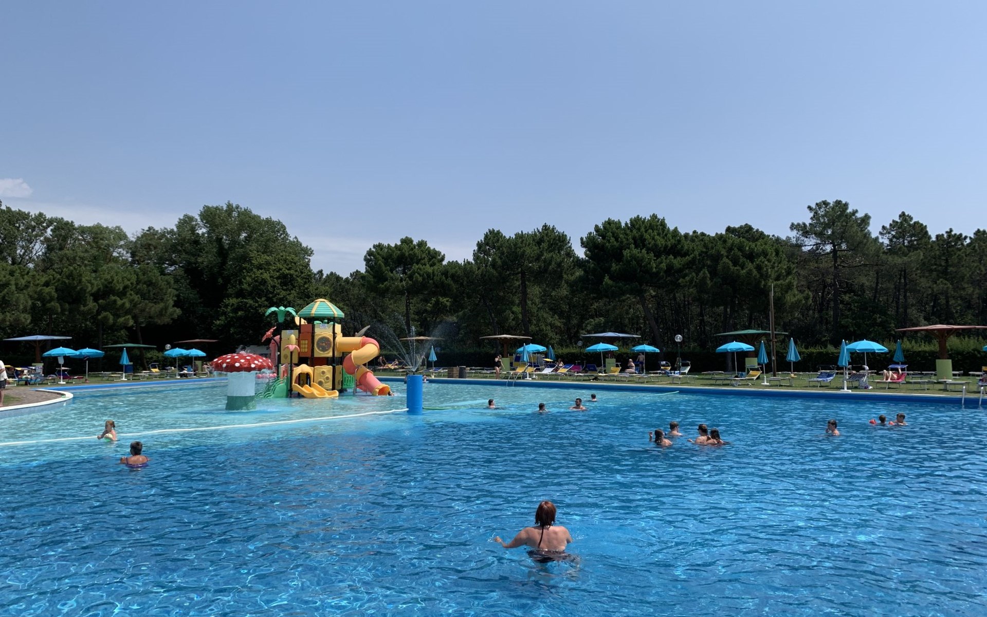 Large, child friendly resort "Mare Pineta". 210 apartments in the residence. 800 m from the centre of Casal Borsetti, on the outskirts, 200 m from the sea, 200 m from the beach, in the countryside. For shared use: property 12 ha (fenced) with lawn and trees, 2 swimming pools (seasonal availability: 15.May. - 15.Sep.). Children's pool, tennis (2 x hard court), boccia, volleyball, children's playground. In the complex: reception, restaurant, bar, WiFi, shopping facilities, washing machine, tumble dryer (for shared use, extra), bicycle rental. Full board on request (extra). Central parking spaces. Bus stop 1.2 km. Nearby attractions: Ravenna 15 km, Comacchio 20 km, Abbazia di Pomposa 35 km, Ferrara 71 km, Venezia 120 km. Hiking paths: Bosco Mesola 42 km. Please note: car-free holiday complex. Entertainment in the season. Suitable for families, baby equipment on request (extra). Access to the vicinity of the houses is possible only on Saturdays for loading and unloading, from Sunday to Friday only up to the central parking lot. The Baby's Bungalows are located near the swimming pool, the Dog's Bungalows are located on the edge of the campsite and have a small enclosed garden.