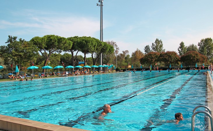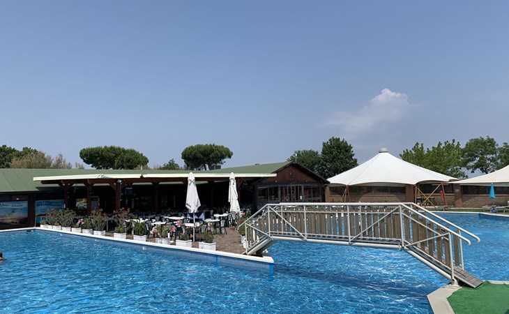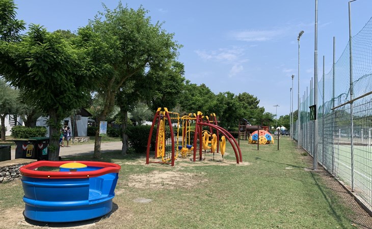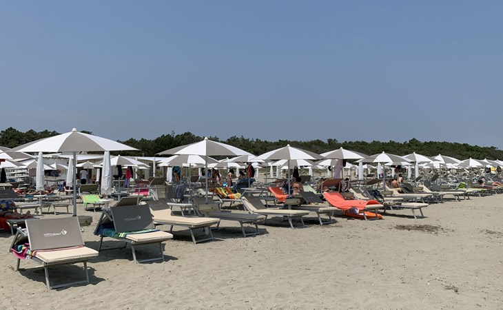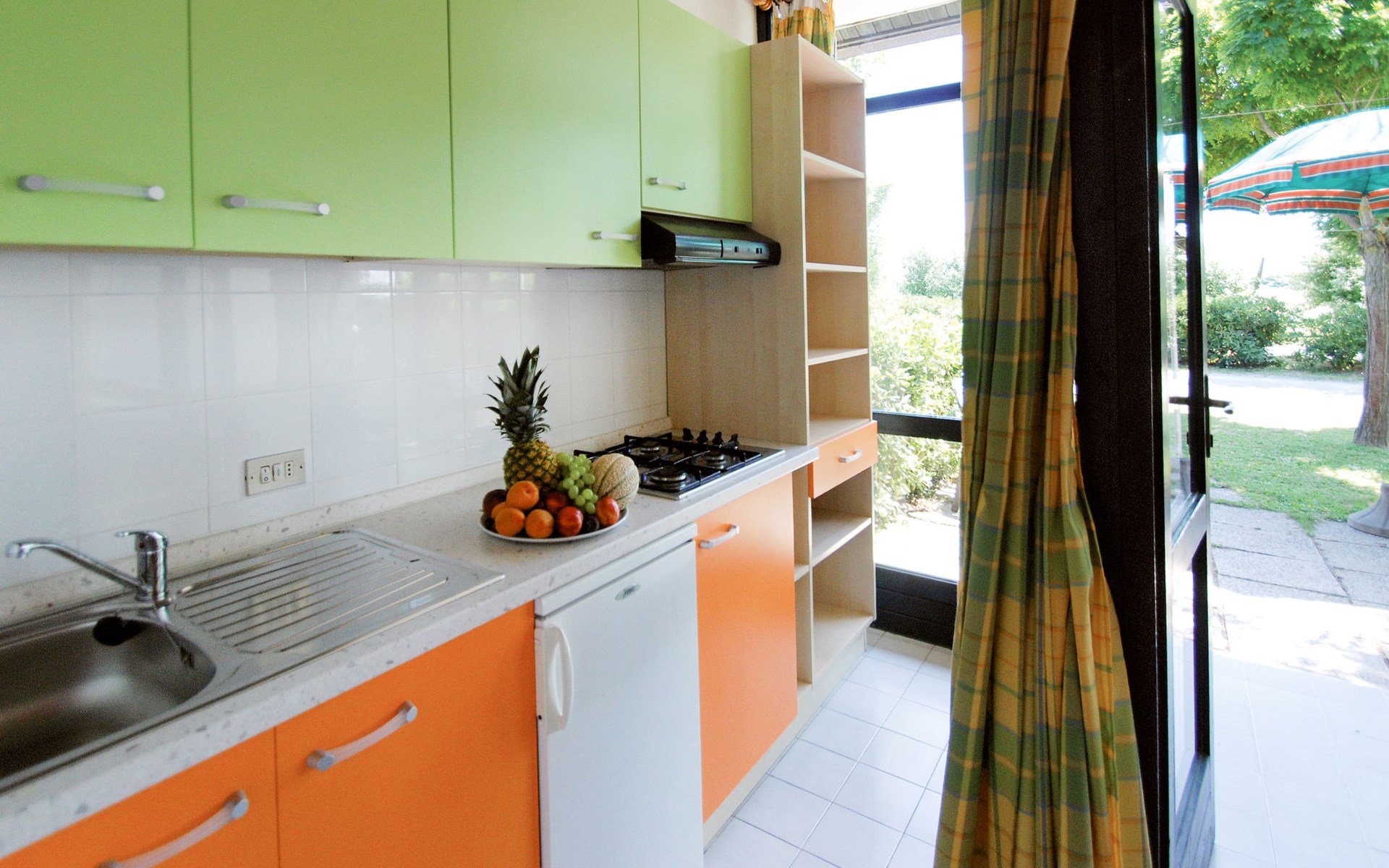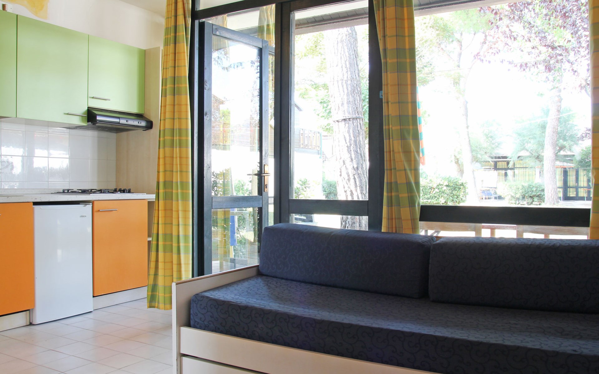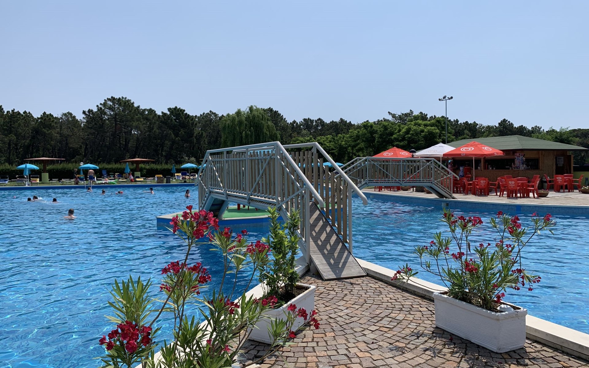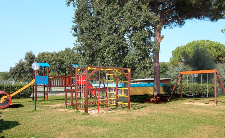Large, child friendly resort "Mare Pineta". 210 apartments in the residence. 800 m from the centre of Casal Borsetti, on the outskirts, 200 m from the sea, 200 m from the beach, in the countryside. For shared use: property 12 ha (fenced) with lawn and trees, 2 swimming pools (seasonal availability: 15.May. - 15.Sep.). Children's pool, tennis (2 x hard court), boccia, volleyball, children's playground. In the complex: reception, restaurant, bar, WiFi, shopping facilities, washing machine, tumble dryer (for shared use, extra), bicycle rental. Full board on request (extra). Central parking spaces. Bus stop 1.2 km. Nearby attractions: Ravenna 15 km, Comacchio 20 km, Abbazia di Pomposa 35 km, Ferrara 71 km, Venezia 120 km. Hiking paths: Bosco Mesola 42 km. Please note: car-free holiday complex. Entertainment in the season. Suitable for families, baby equipment on request (extra). Access to the vicinity of the houses is possible only on Saturdays for loading and unloading, from Sunday to Friday only up to the central parking lot. The Baby's Bungalows are located near the swimming pool, the Dog's Bungalows are located on the edge of the campsite and have a small enclosed garden.