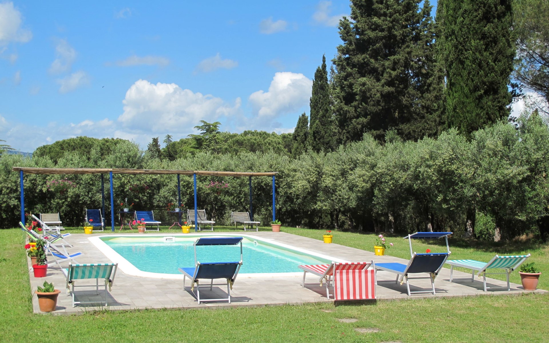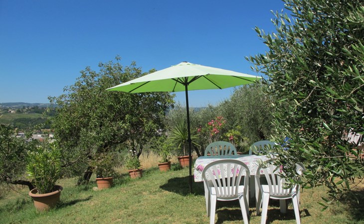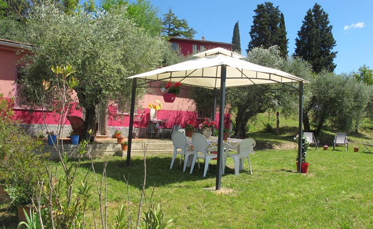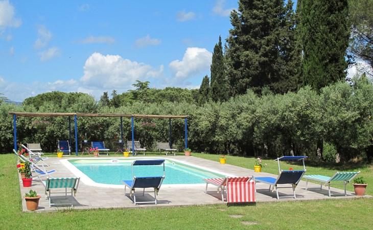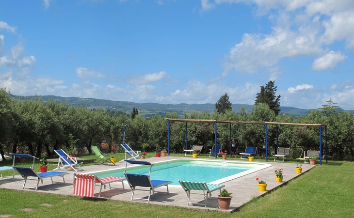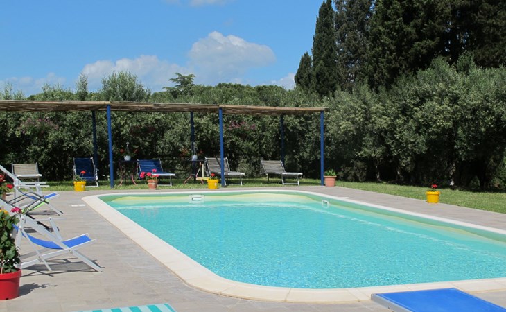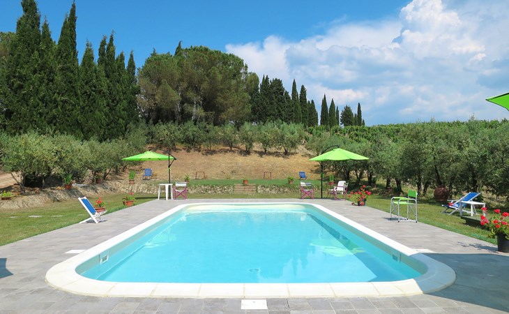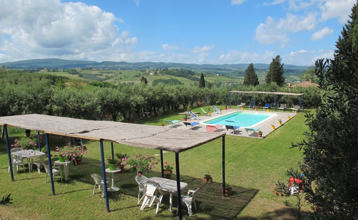 Certaldo: Cosy on a vinyard agricultural estate "Podere Conte Francesco", surrounded by trees, fields and vineyards. 7 apartments in the property. 4 km from the centre of Certaldo, 13 km from the centre of San Gimignano, 57 km from the centre of Firenze, in a secluded, sunny, elevated position on a slope, 80 km from the sea, 80 km from the beach, in the countryside. For shared use: natural state property with plants and trees, natural garden, meadow, orchard, swimming pool (10 x 5 m, depth 150 cm, seasonal availability: 02.May. - 03.Oct.). Outdoor shower, garden furniture, pool maintenance by the owner/gardener. In the complex: WiFi, washing machine (for shared use, extra). 1.5 km long motor access (via unmade road). Parking on the premises. Grocery 3 km, supermarket 7 km, restaurant 7 km, bar 3 km, bus stop 3 km, railway station "Certaldo" 7 km, sandy beach "Cecina Mare" 80 km, indoor swimming pool 7 km. Golf course (18 hole) 27 km, tennis 7 km, riding stable 3 km. Nearby attractions: Siena 45 km, Volterra 40 km, Pisa 83 km. Please note: car recommended. Baby equipment on request (included). The owner lives on the same property. All houses/apartments are individually designed/furnished.