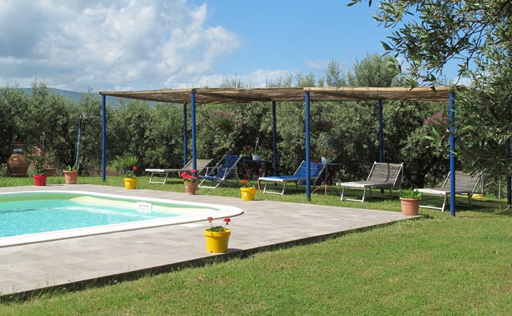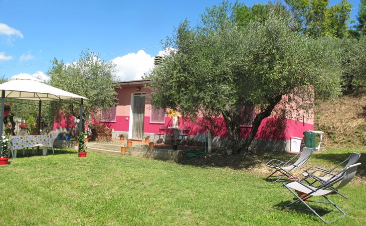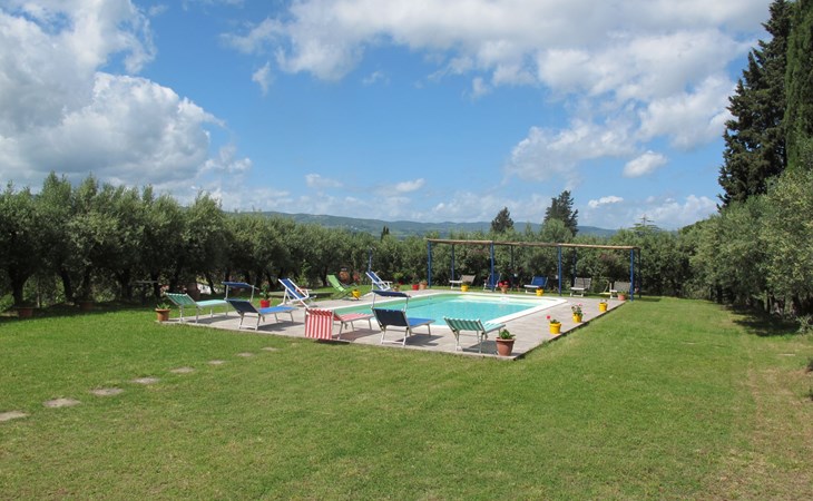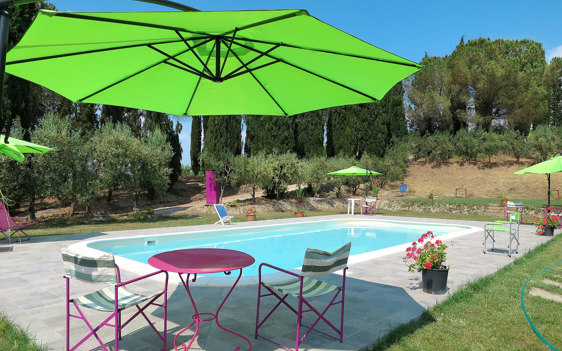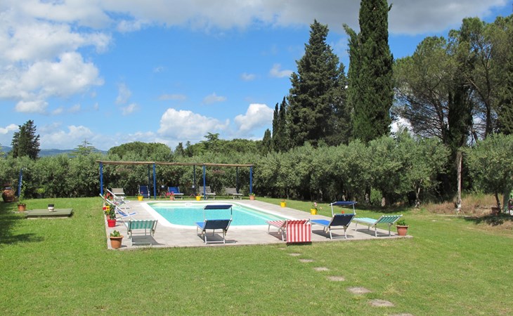 Certaldo: Cosy on a vinyard agricultural estate "Podere Conte Francesco", surrounded by trees, fields and vineyards. 7 apartments in the property. 4 km from the centre of Certaldo, 13 km from the centre of San Gimignano, 57 km from the centre of Firenze, in a secluded, sunny, elevated position on a slope, 80 km from the sea, 80 km from the beach, in the countryside. For shared use: natural state property with plants and trees, natural garden, meadow, orchard, swimming pool (10 x 5 m, depth 150 cm, seasonal availability: 02.May. - 03.Oct.). Outdoor shower, garden furniture, pool maintenance by the owner/gardener. In the complex: WiFi, washing machine (for shared use, extra). 1.5 km long motor access (via unmade road). Parking on the premises. Grocery 3 km, supermarket 7 km, restaurant 7 km, bar 3 km, bus stop 3 km, railway station "Certaldo" 7 km, sandy beach "Cecina Mare" 80 km, indoor swimming pool 7 km. Golf course (18 hole) 27 km, tennis 7 km, riding stable 3 km. Nearby attractions: Siena 45 km, Volterra 40 km, Pisa 83 km. Please note: car recommended. Baby equipment on request (included). The owner lives on the same property. All houses/apartments are individually designed/furnished.