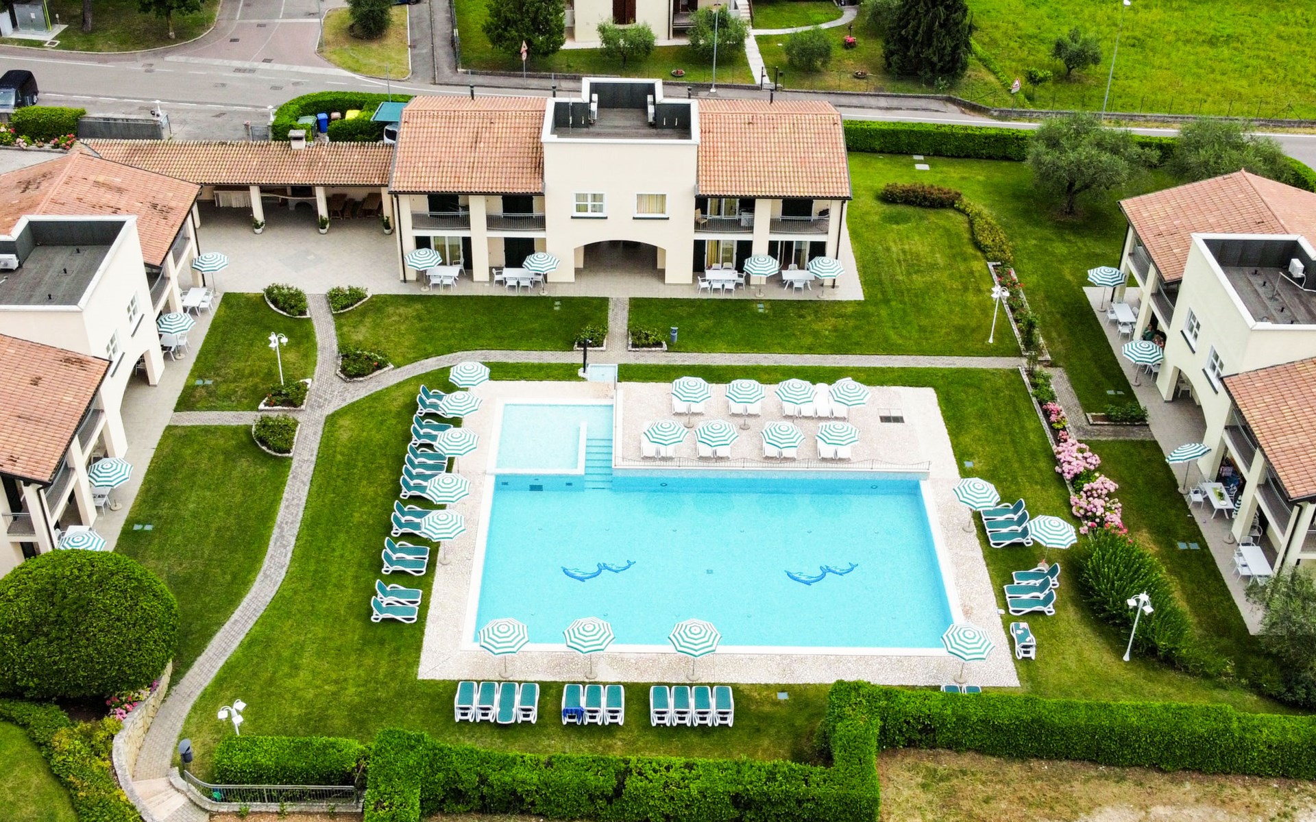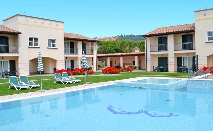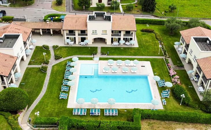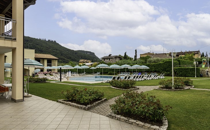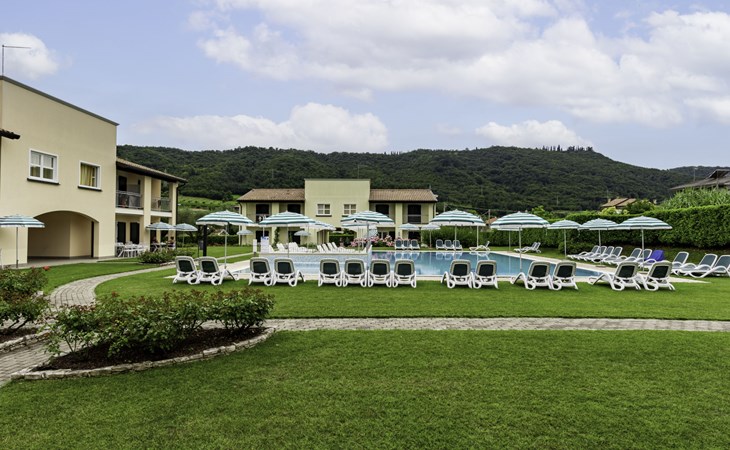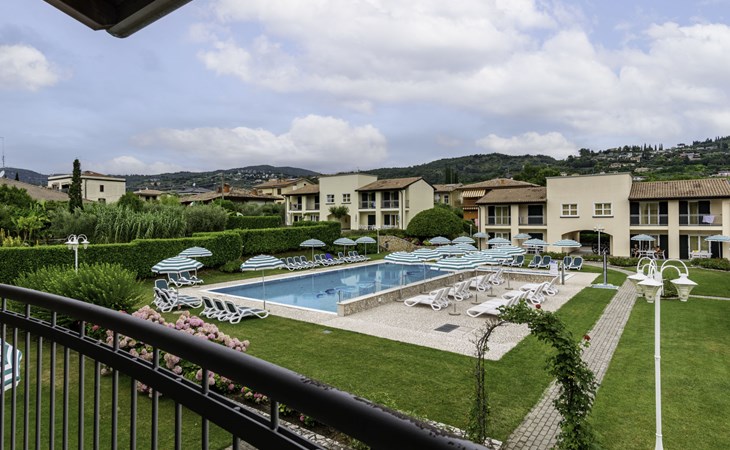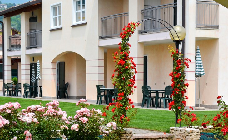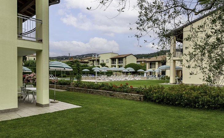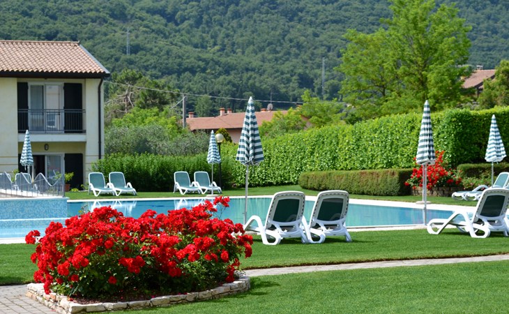 Resort "Corte delle Rose", 2 storeys. 16 apartments in the residence. In the district of Giare 2 km from the centre of Garda, 2 km from the lake. For shared use: beautiful, well-kept garden (fenced) with lawn and flowers, swimming pool (20 x 10 m, seasonal availability: 01.Mar. - 31.Oct.). Children's pool, outdoor shower, arbour, barbecue, children's playground. In the complex: table tennis, table football, washing machine (for shared use, extra), heating to be paid on the spot. Parking on the premises. Restaurant 50 m, bus stop 10 m. Golf course (18 hole) 5 km. Nearby attractions: Peschiera del Garda 19 km, Verona 38 km.