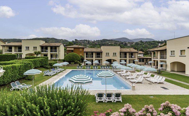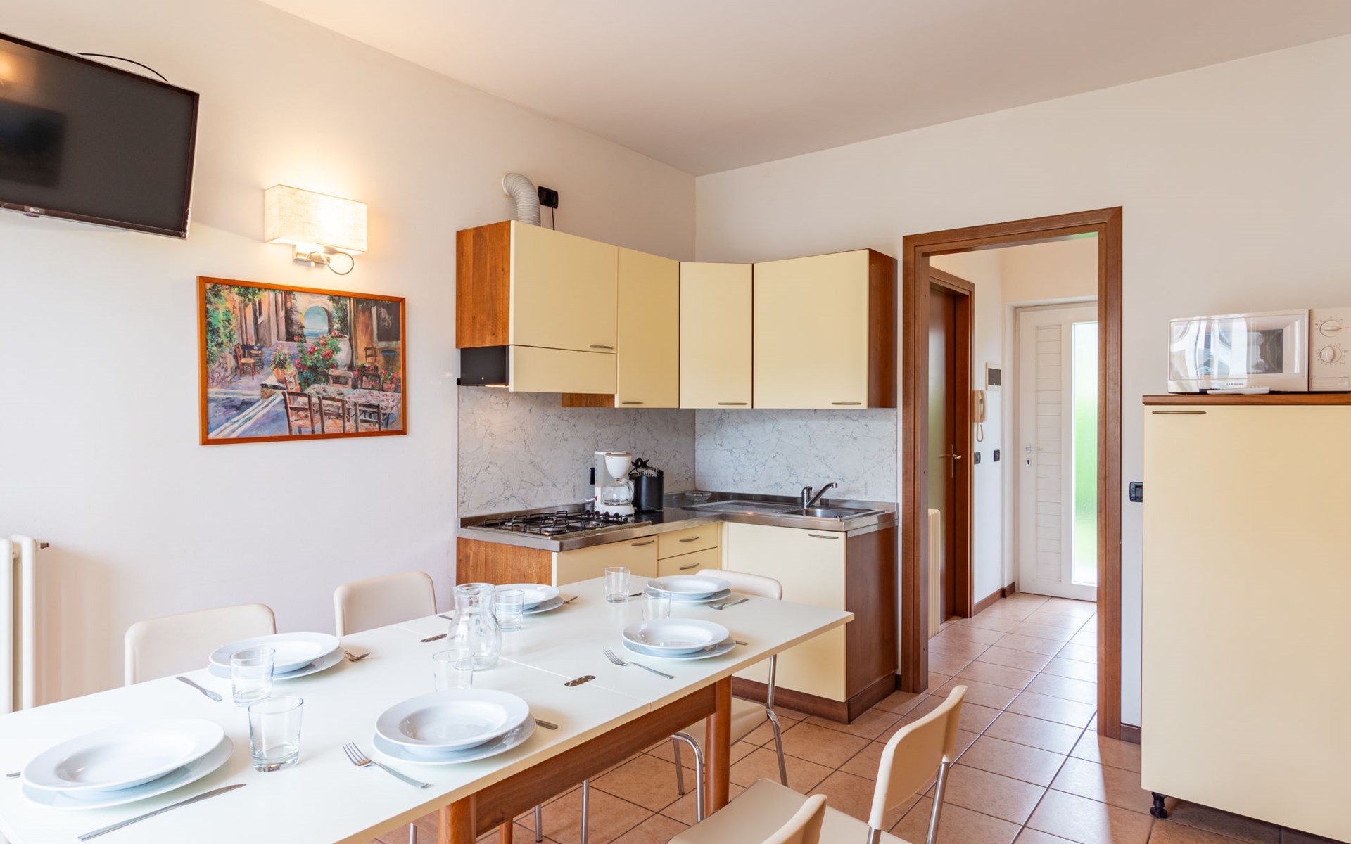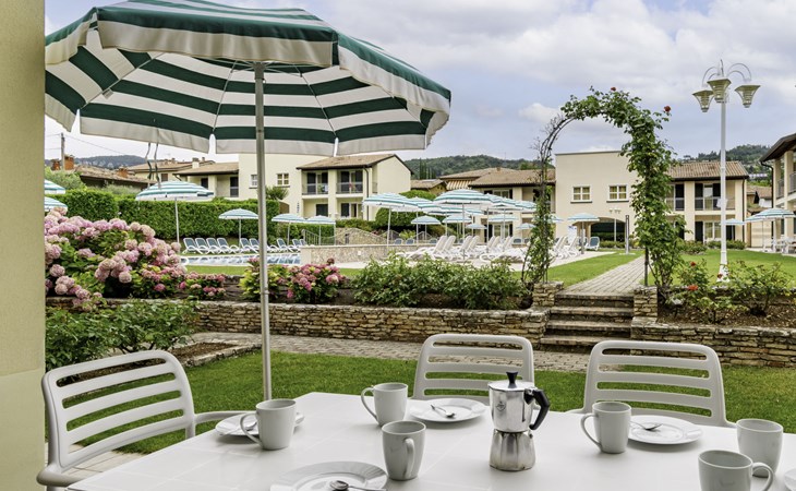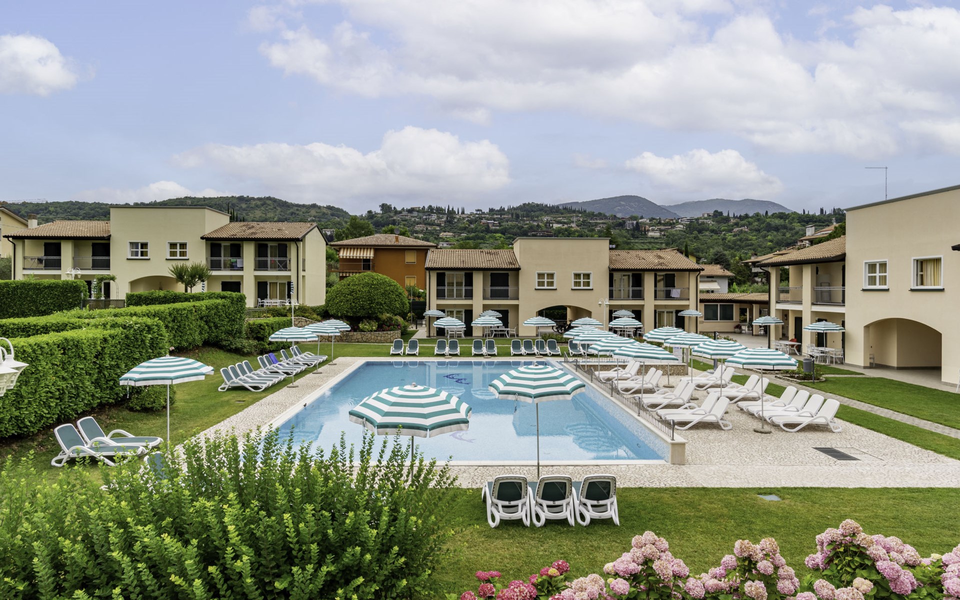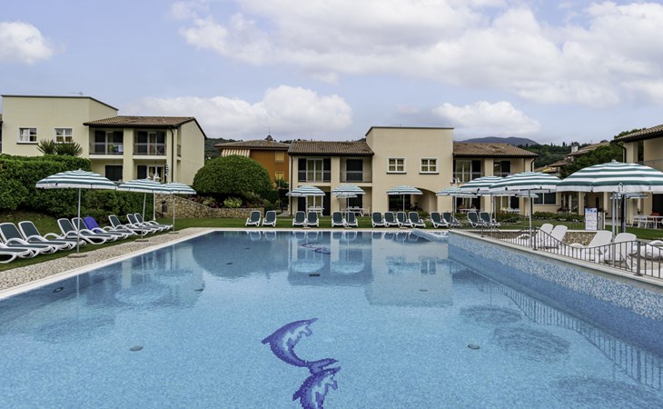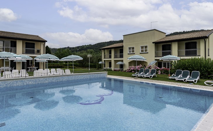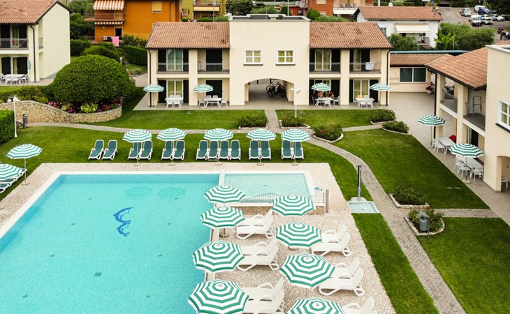 Resort "Corte delle Rose", 2 storeys. 16 apartments in the residence. In the district of Giare 2 km from the centre of Garda, 2 km from the lake. For shared use: beautiful, well-kept garden (fenced) with lawn and flowers, swimming pool (20 x 10 m, seasonal availability: 01.Mar. - 31.Oct.). Children's pool, outdoor shower, arbour, barbecue, children's playground. In the complex: table tennis, table football, washing machine (for shared use, extra), heating to be paid on the spot. Parking on the premises. Restaurant 50 m, bus stop 10 m. Golf course (18 hole) 5 km. Nearby attractions: Peschiera del Garda 19 km, Verona 38 km.