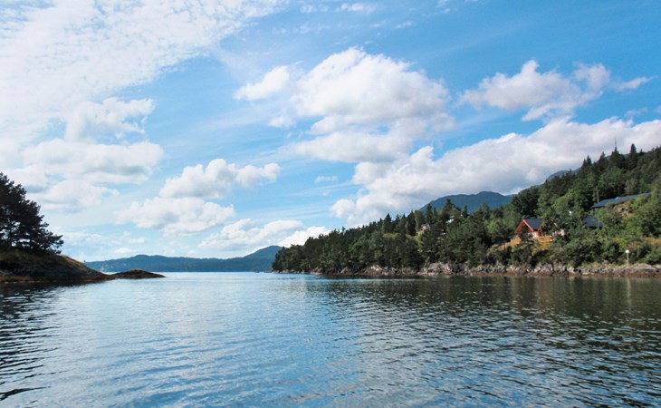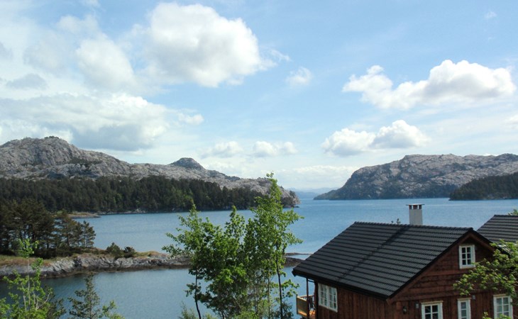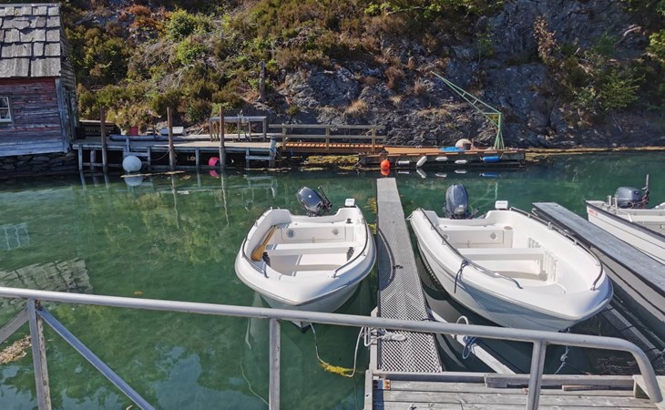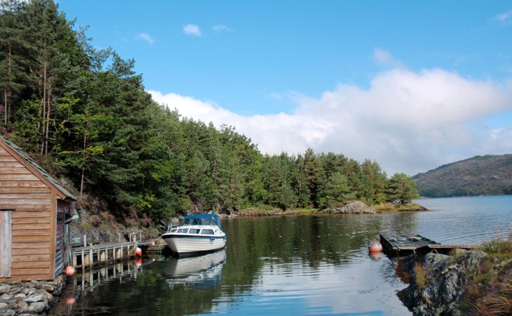Certified fishing house (up to 18 kg fish) "Blåbærhytta", built in 2012. 7.5 km from the centre of Onarheim, 16 km from the centre of Leirvik, 67 km from the centre of Bergen, 5 m from the sea, 5 m from the fijord. For shared use: natural state property. Bathing jetty. Fish-processing table. Motor boat (on order), parking on the premises. Shop 7 km, supermarket 21 km, bus stop "Hodnanes ferjekai" 1 km, railway station "Bergen" 67 km, ferry "Bergen" 67 km, lake Onarheimsvatnet 9 km. Fishing possibilities 50 m. additional boats can be rented on spot.
