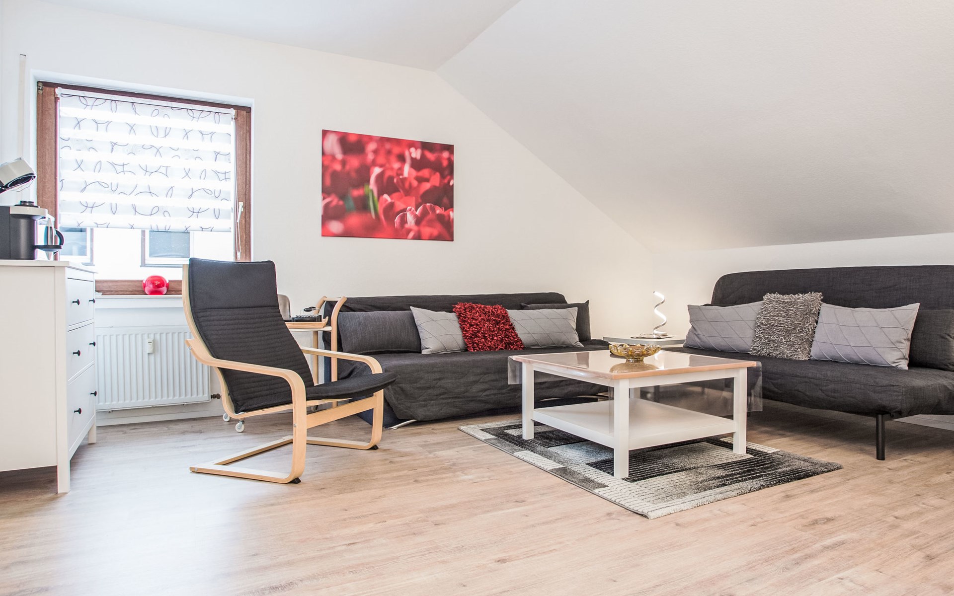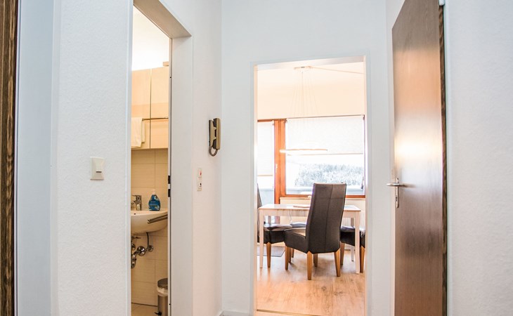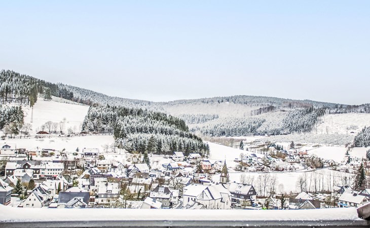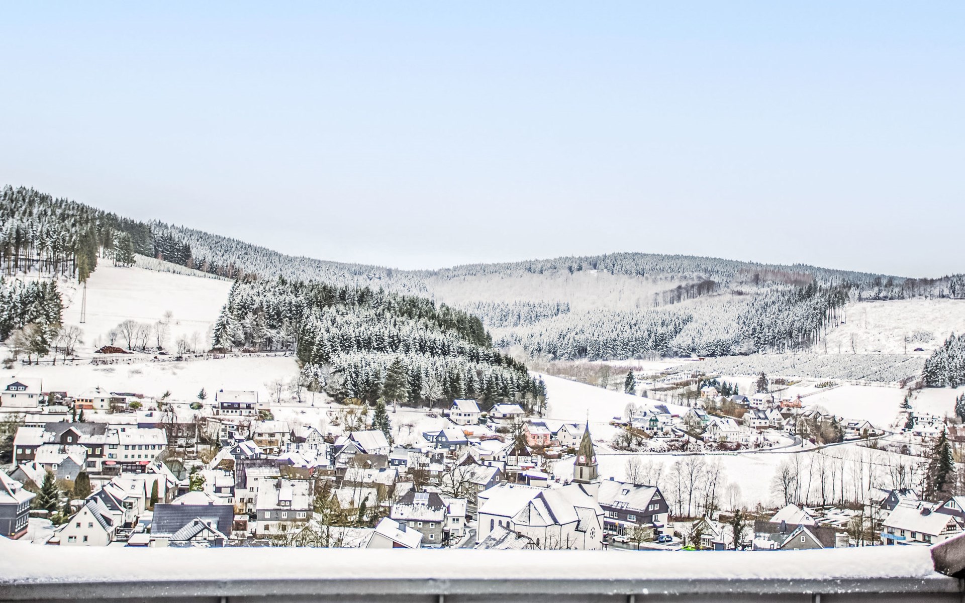 Niedersfeld 9 km from Winterberg: Apartment house. In the resort, in a central, sunny, elevated position in the residential district. Parking at the house. Grocery 650 m, restaurant 600 m, bakery 900 m, bus stop 700 m, bathing lake "Hillebachsee" 1 km. Ski lift 2.5 km, sled run 6 km. Well-known ski regions can easily be reached: Winterberg 9 km.