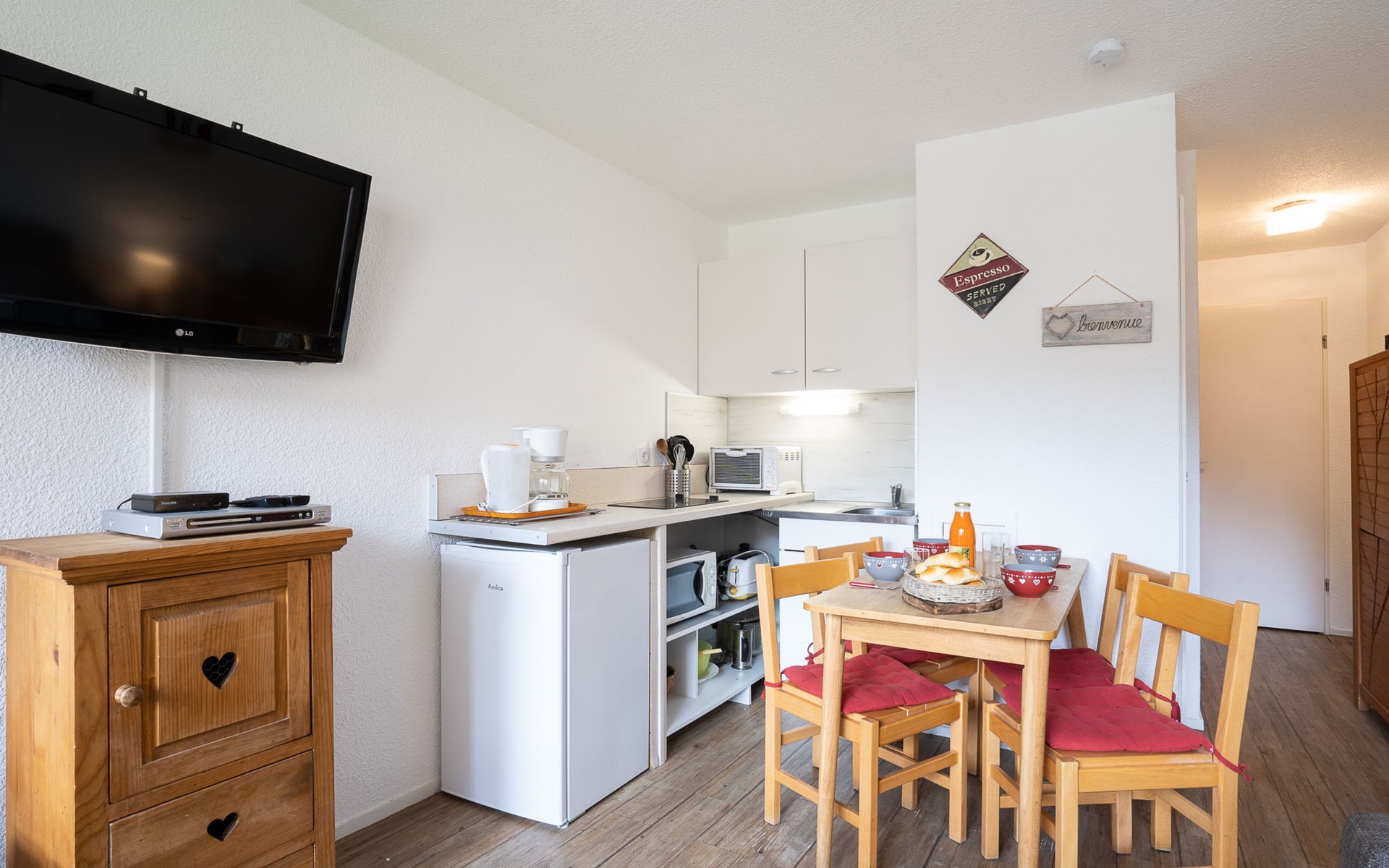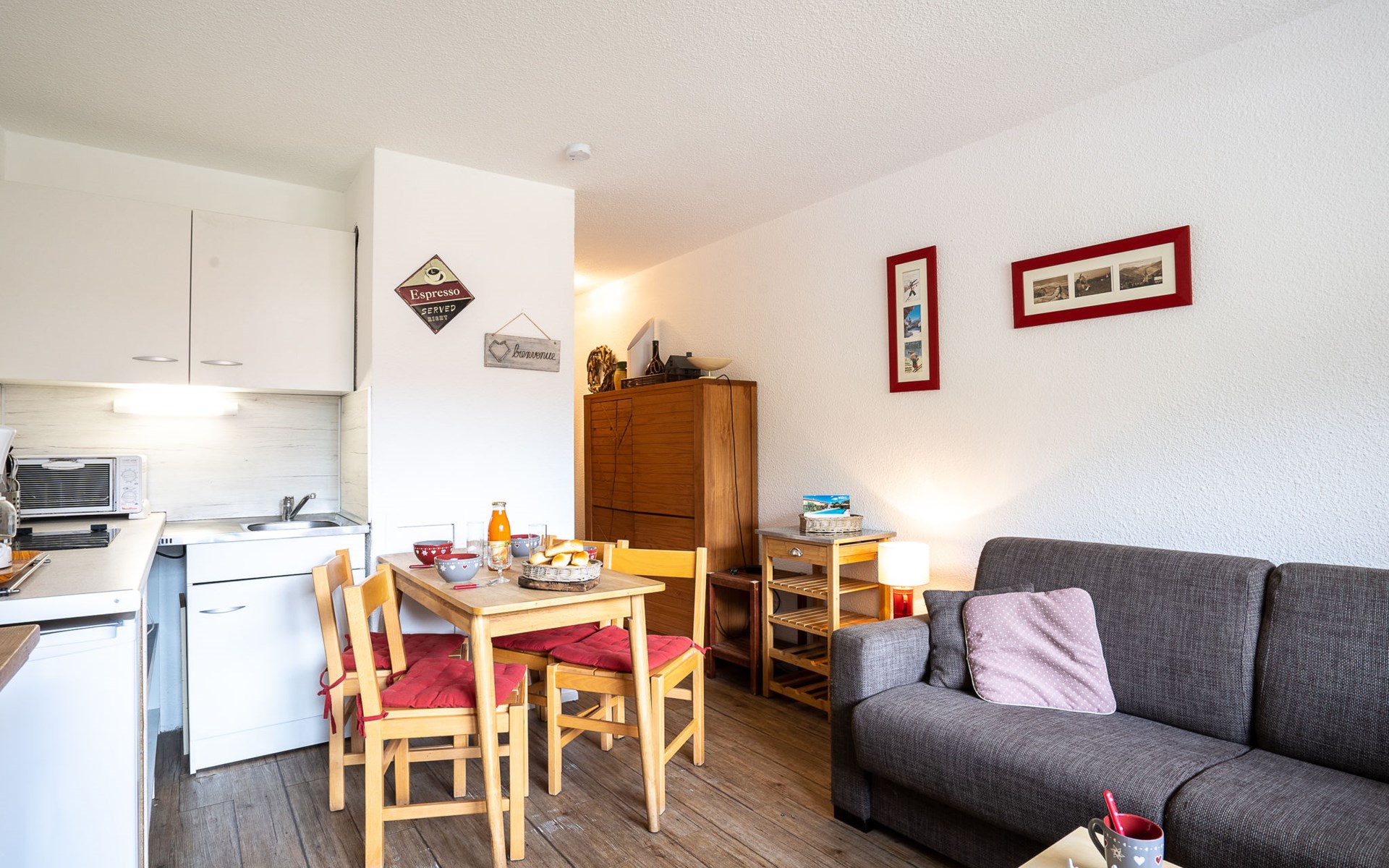 Small residence "Les Asters", 5 storeys. In the district of Fontanettes 800 m from the centre of La Croisette, in a quiet position, 200 m from the skiing area. Public parking on the road. Grocery, shopping centre 800 m, 10 minute walk to the centre, bus stop " ARRET les fontanettes" 500 m. Sports centre 800 m, chair lift, skisport facilities 200 m, slopes 50 m, ski rental 50 m, ski school 800 m, cross country ski track 1.5 km. Well-known ski regions can easily be reached: Les 3 Vallées. Please note: no lift. The photograph shows a typical example. Additional accommodations can be booked.