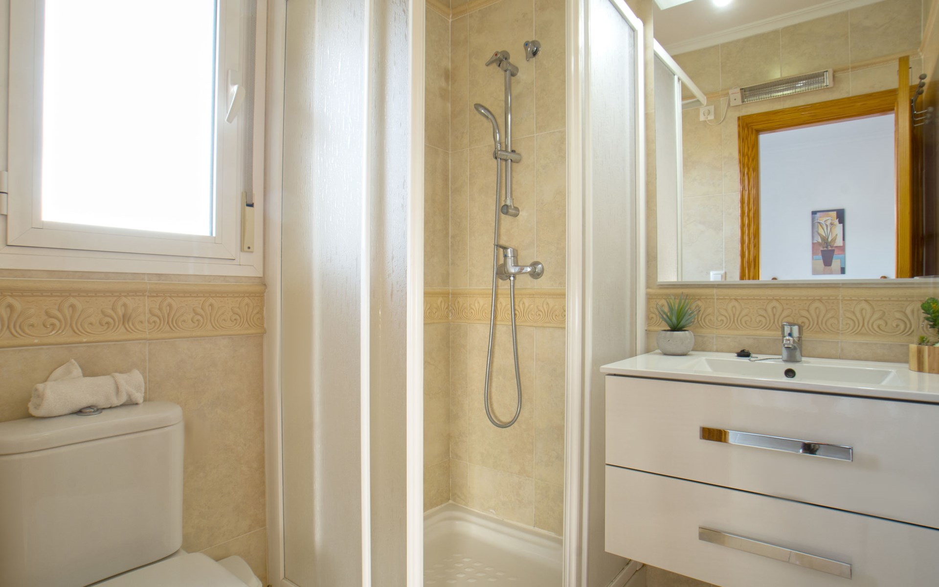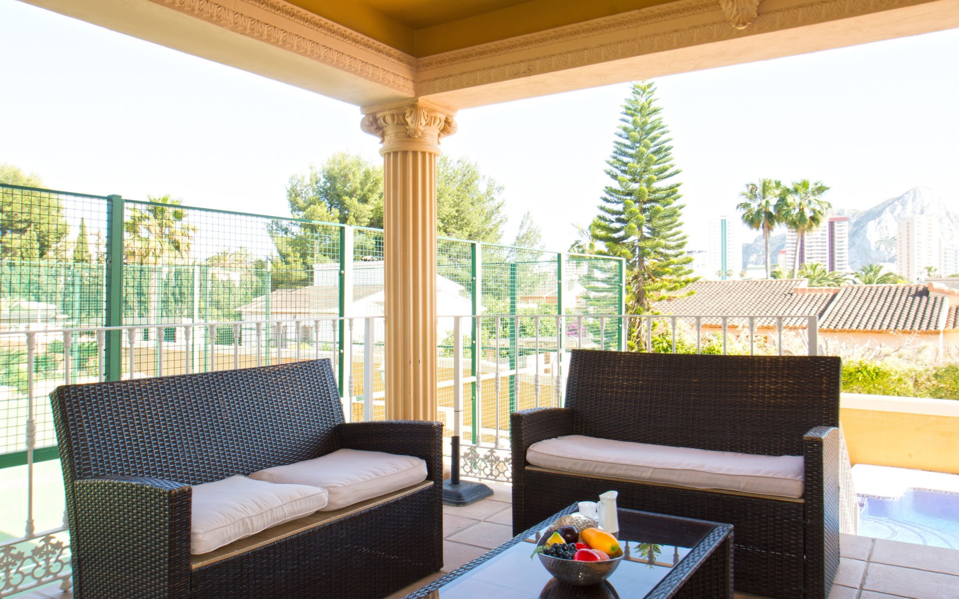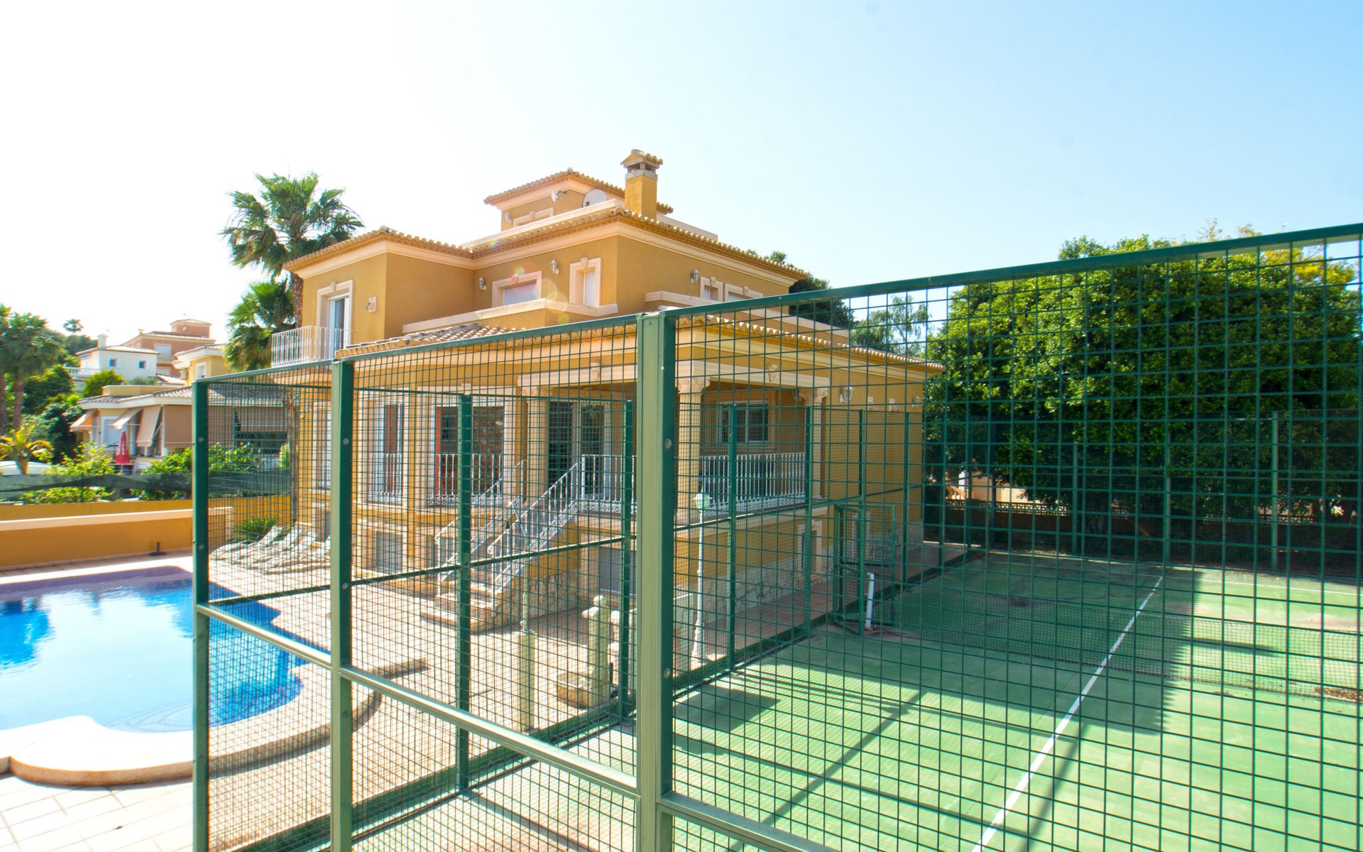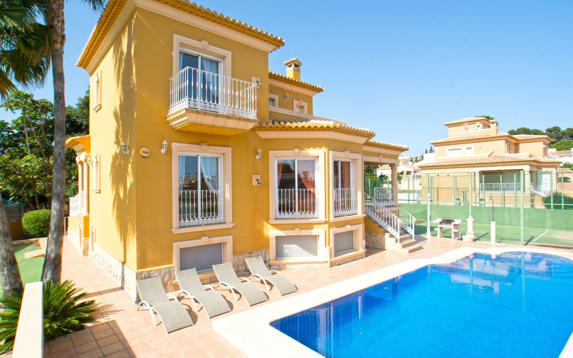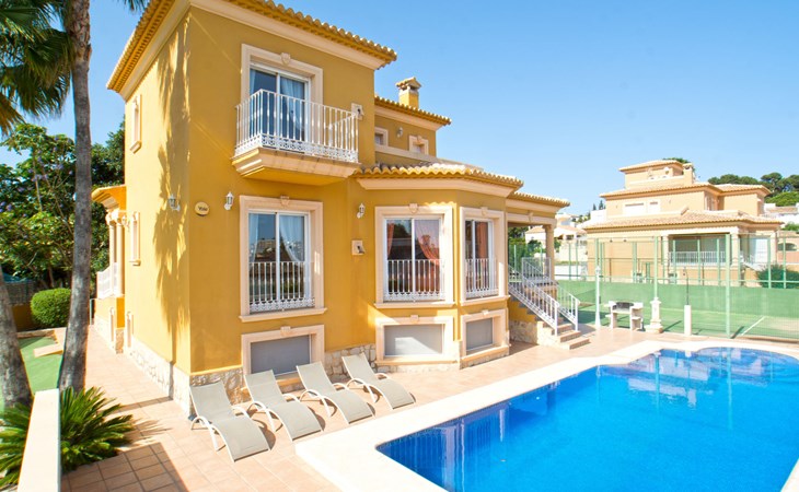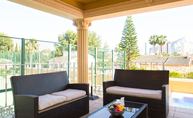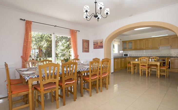 Large villa "Santanatenis". 3.2 km from the centre of Calpe, 25 km from the centre of Benidorm, 60 km from the centre of Alicante, 800 m from the sea, 1.4 km from the beach. Private: property 803 m2 (fenced), garden, swimming pool angular (9 x 4 m, depth 150 - 190 cm, seasonal availability: 01.Jan. - 31.Dec.). Outdoor shower, tennis, parking on the premises. Supermarket 1 km, restaurant 600 m, bus stop 750 m, sandy beach "La Fossa" 1.4 km. Nearby attractions: Aqualandia 25 km, Terra Mitica 35 km, Aeropuerto El Altet Alicante-Elche 75 km. Hiking paths: PeƱon de Ifach 3 km.