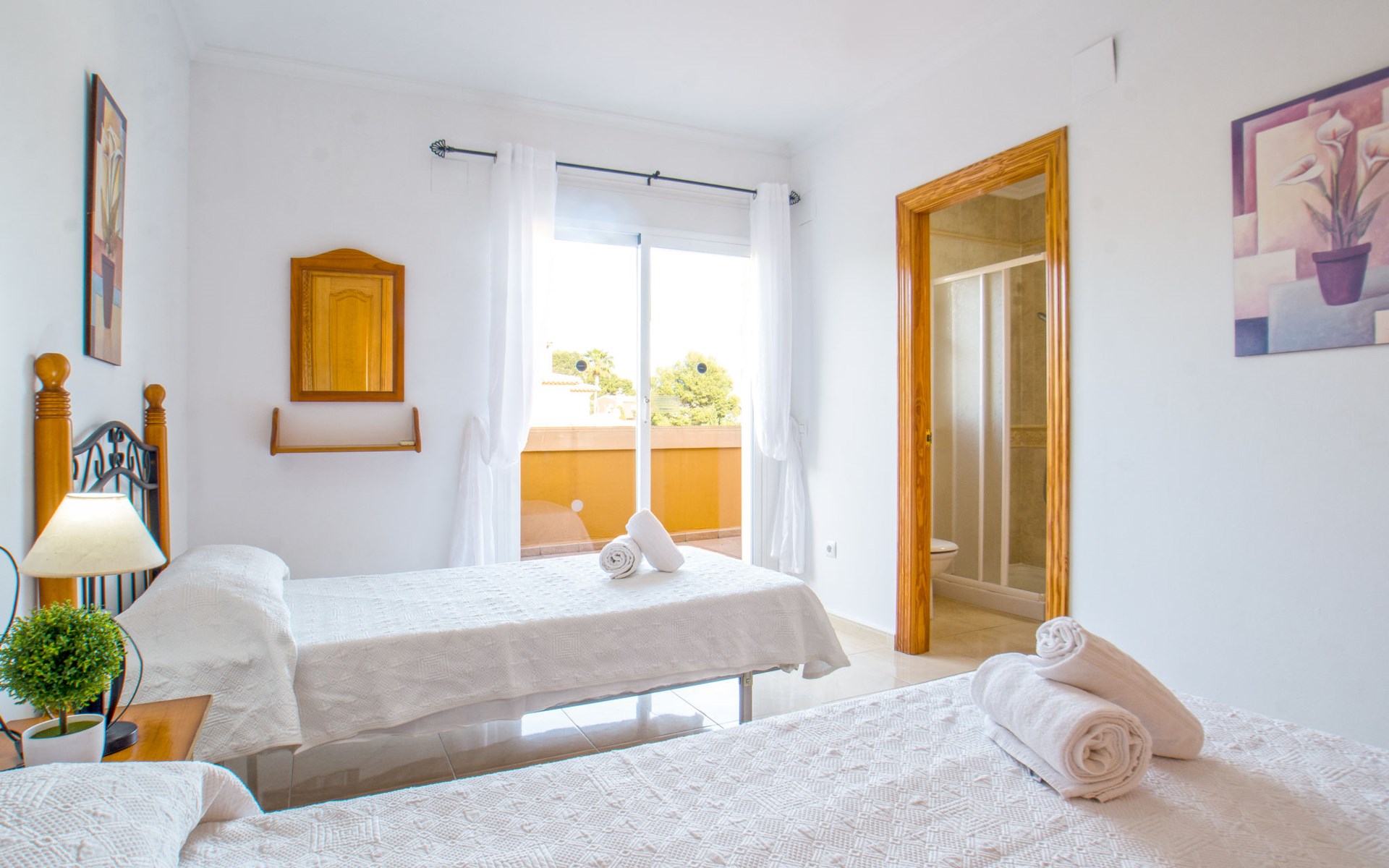 "Santanatenis", 8-room villa 319 m2 on 4 levels. Bright: living/dining room with open-hearth fireplace (only for decoration), dining table, satellite TV, international TV channels, air conditioning and forced-air heating. Exit to the patio. 1 room with 1 french bed (135 cm, length 190 cm), air conditioning and forced-air heating. Kitchen (oven, dishwasher, 4 ceramic glass hob hotplates, toaster, kettle, microwave, freezer, electric coffee machine) with dining table. Shower/WC. On the lower ground floor: living room with air conditioning and forced-air heating. 2 rooms, each room with 2 beds (90 cm, length 190 cm), shower/WC, air conditioning and forced-air heating. 1 room with 1 french bed (135 cm, length 190 cm), shower/bidet/WC, air conditioning and forced-air heating with 1 french bed (135 cm, length 190 cm), bath/bidet/WC, air conditioning and forced-air heating. Shower/WC, sep. WC. Upper floor: 1 room with 2 beds (90 cm, length 190 cm), bath/WC, air conditioning and forced-air heating. 1 room with 1 french bed (135 cm, length 190 cm), shower/WC, air conditioning and forced-air heating. 1 room with 2 beds (90 cm, length 190 cm), shower/WC, air conditioning and forced-air heating. Patio. Terrace furniture, barbecue, deck chairs. View of the swimming pool. Facilities: washing machine, iron, children's high chair, baby cot for up to 2 year olds, hair dryer. Internet (WiFi, free). Parking (4 cars). 1 pet/ dog allowed. On the fourth floor there is a room with a washing machine and clothes drying rack. AT-450955-A