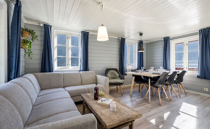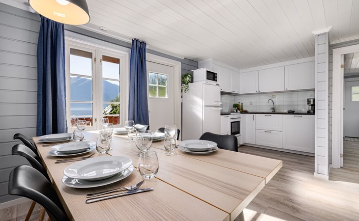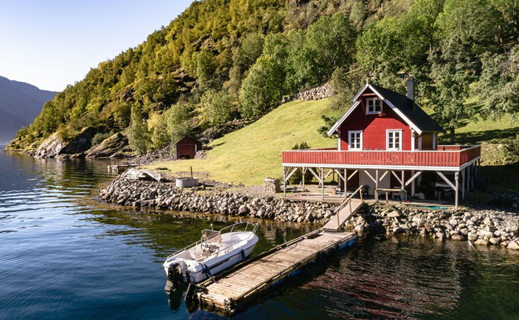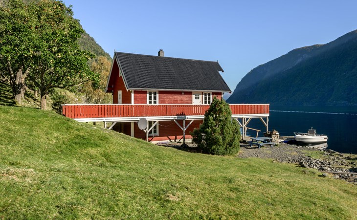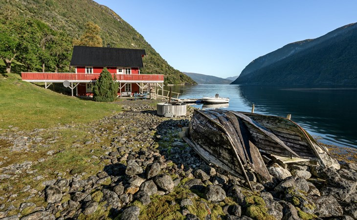 Certified fishing house (up to 18 kg fish) "Tor". 2 km from the centre of Arnafjord, 78 km from the centre of Sogndal, 98 km from the centre of Voss, 5 m from the fijord. Bathing jetty fish-processing table. Private: terrace, garden furniture, barbecue. Motor boat (on order), parking at 2 km. E-charging station. Shop 11 km, supermarket 29 km, bus stop 2 km, ferry "Bergen" 197 km. Fishing possibilities 5 m. Important information: The house is located in a nature reserve and can only be accessed by boat (driving time approx. 10 minutes). The landlord will pick up the guests on the day of arrival and departure. For any other tours the boat has to be ordered (see extra charges for prices). The car can be parked at the owner house.