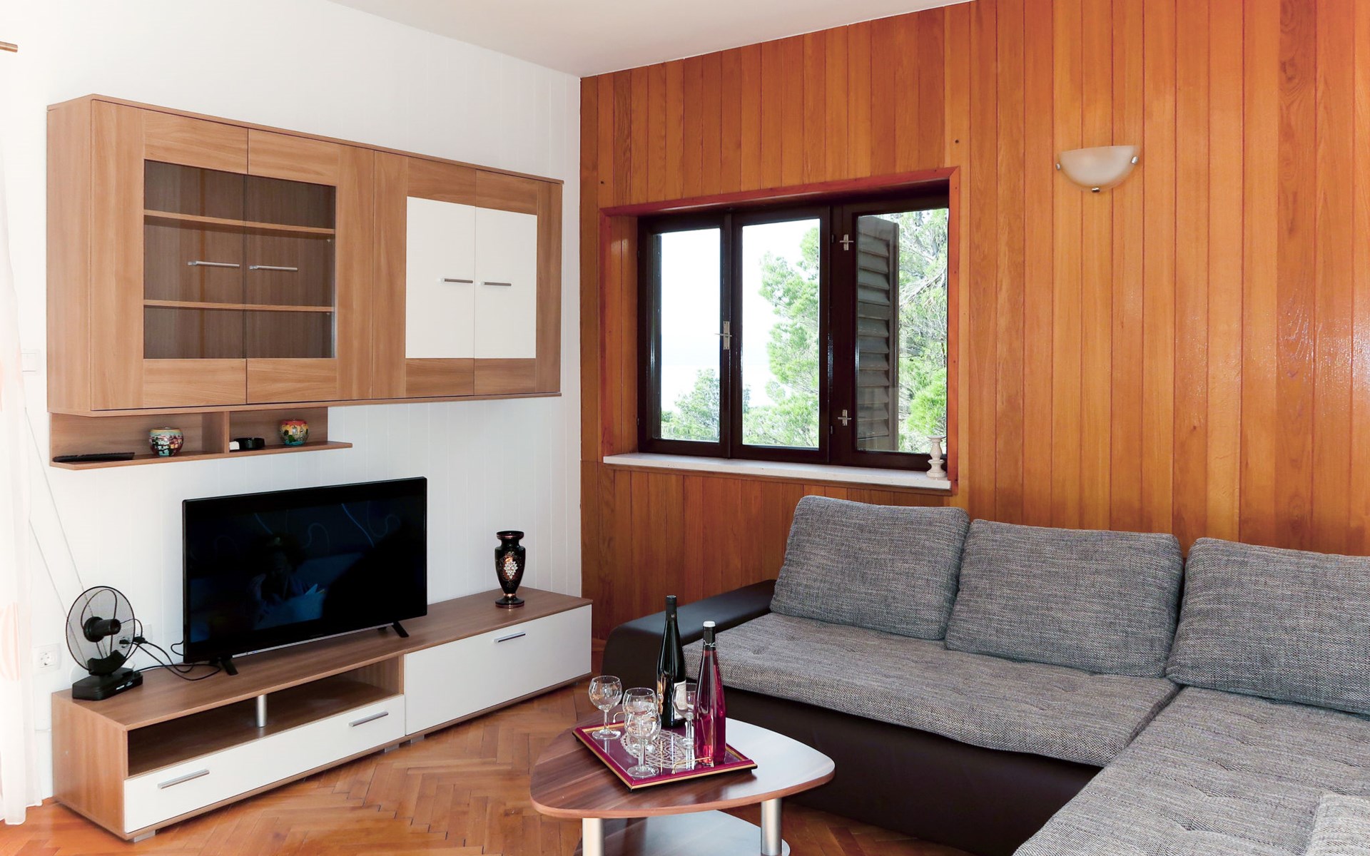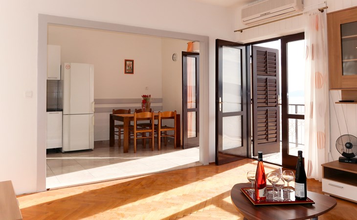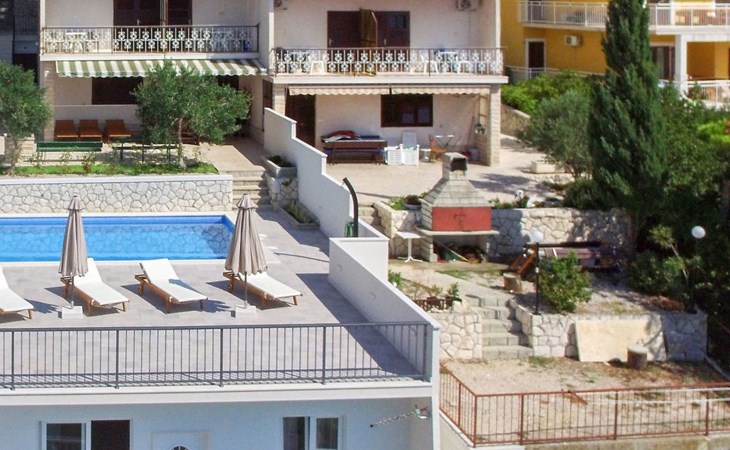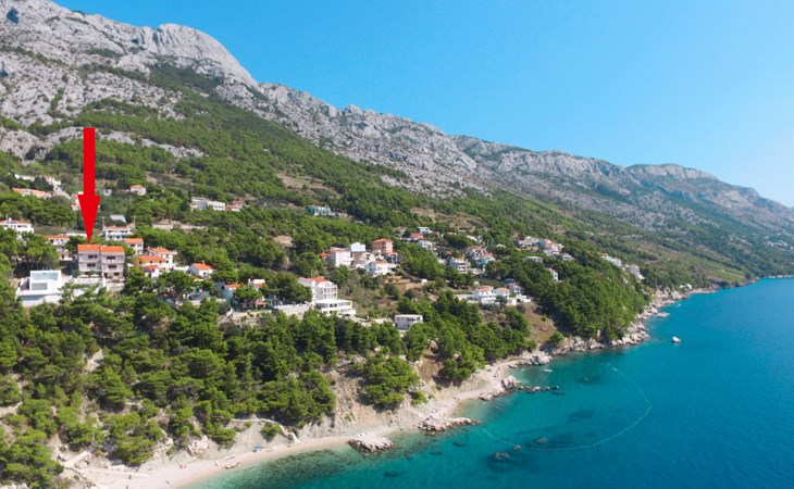 Marušići 14 km from Omiš: Apartment house "Lada". 20 km from the centre of Makarska, on a slope, 100 m from the sea, 100 m from the beach, in a cul-de-sac. For shared use: property 500 m2, swimming pool angular (7 x 5 m, depth 150 cm, seasonal availability: 20.May. - 14.Oct.) with internal staircase. Outdoor shower. In the house: internet access. 100 m long steep motor access to the house. Stepped path to the house. Parking at the house. Shop 200 m, supermarket 14 km, bus stop 1.8 km, pebble beach 100 m. Please note: airfield 56 km from the property. Property ref. HR5020.641.1 is situated on the same property.